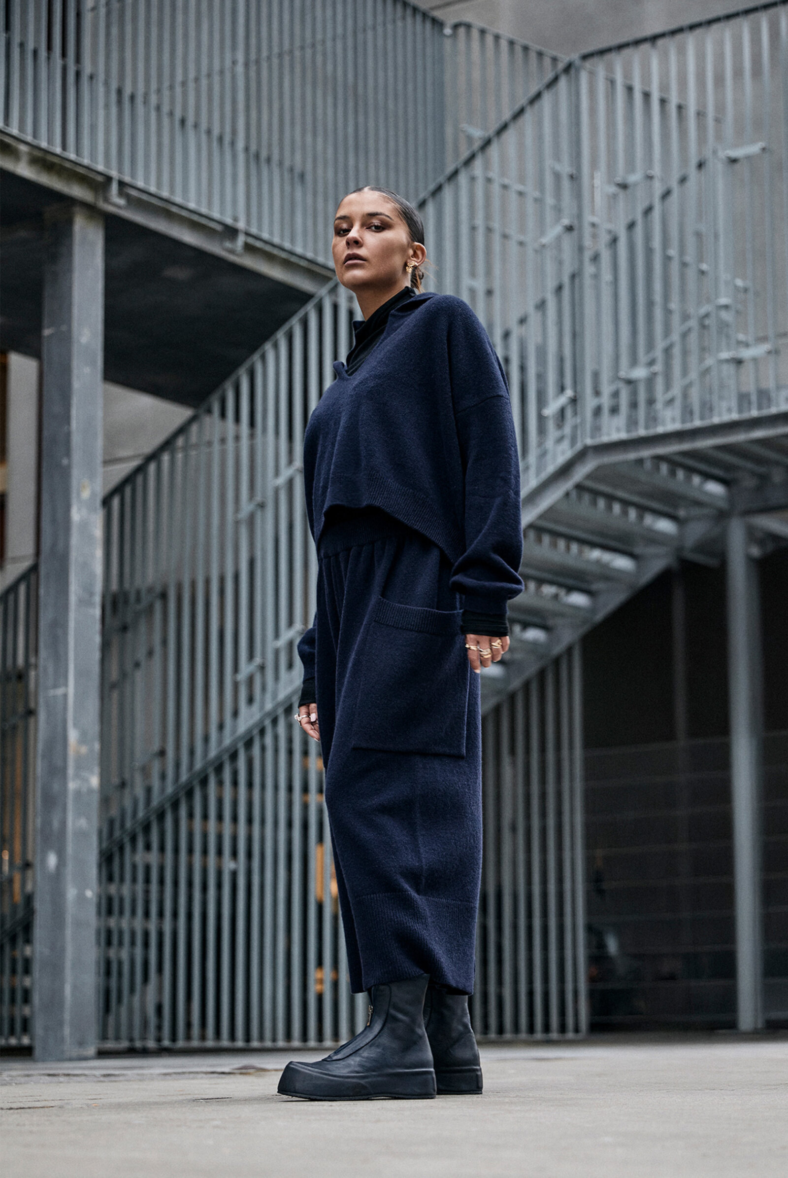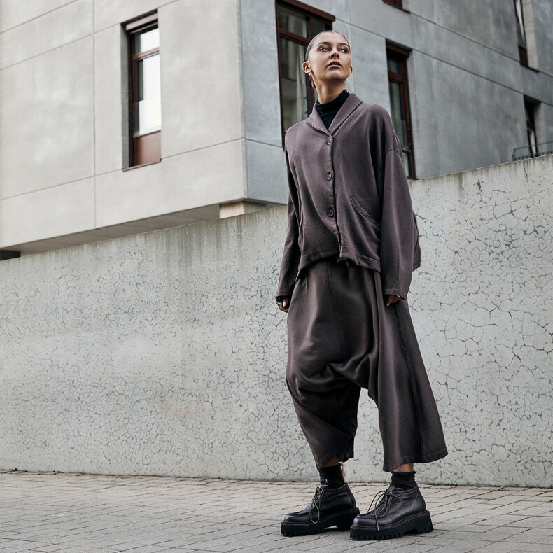 The style is feminine shapes mixed with a more pragmatic and edgy cut borrowed from the man's world, all in durable quality and design.
