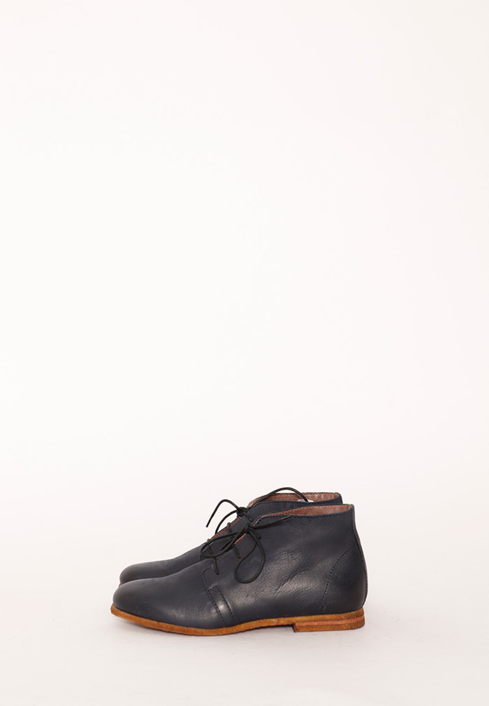 Our classic Lofina desert boot in navy with a very comfortable soft raw rubber sole. The leather is soft calfskin, which is shaping around the feet.