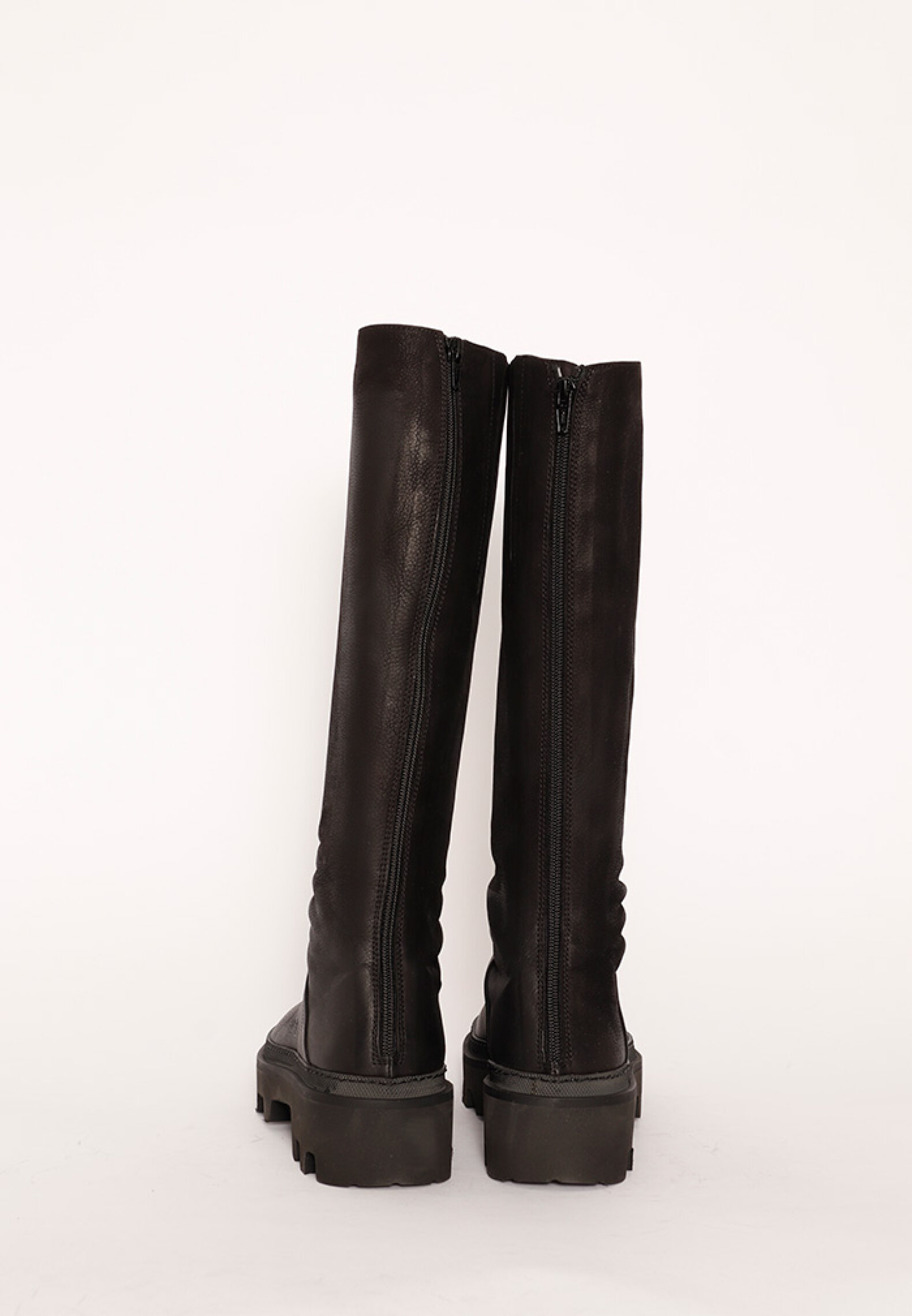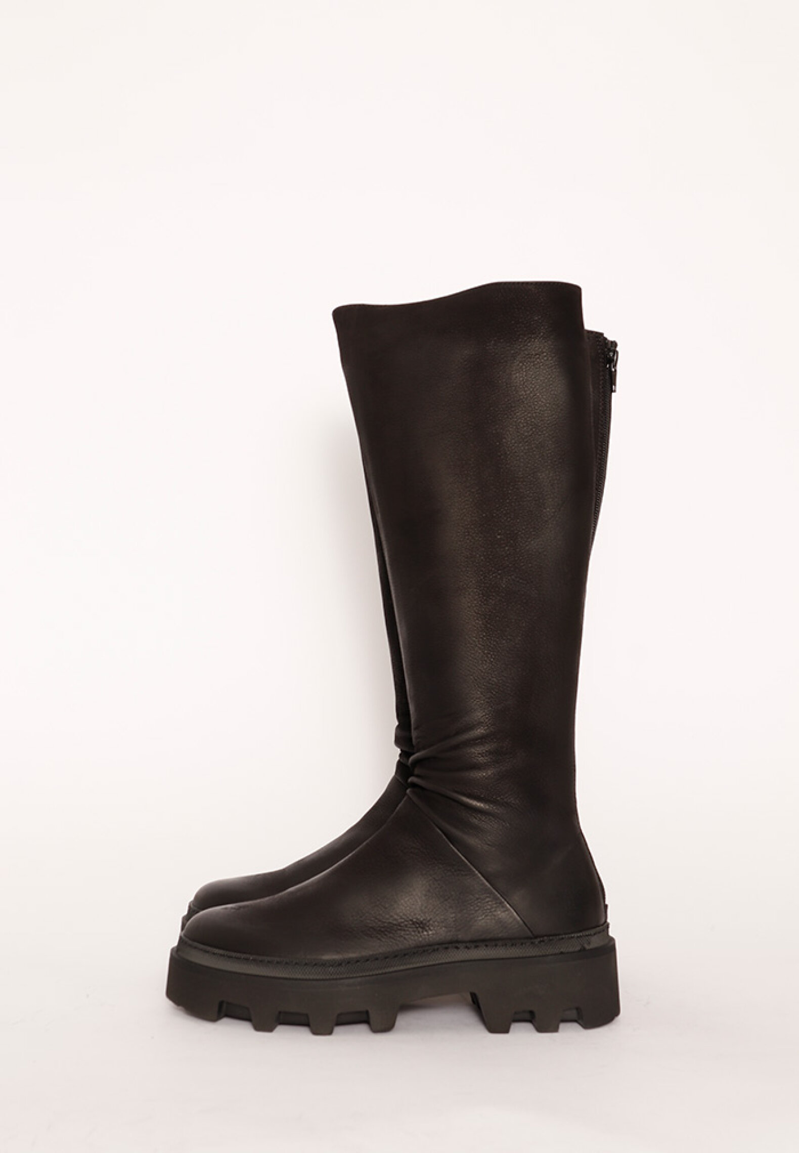 Lofina støvle i sort med sål lavet i microfiber. Denne støvlet er lavet med en lynlås. Denne model har et råt look og vil gå godt både til en nederdel og bukser.