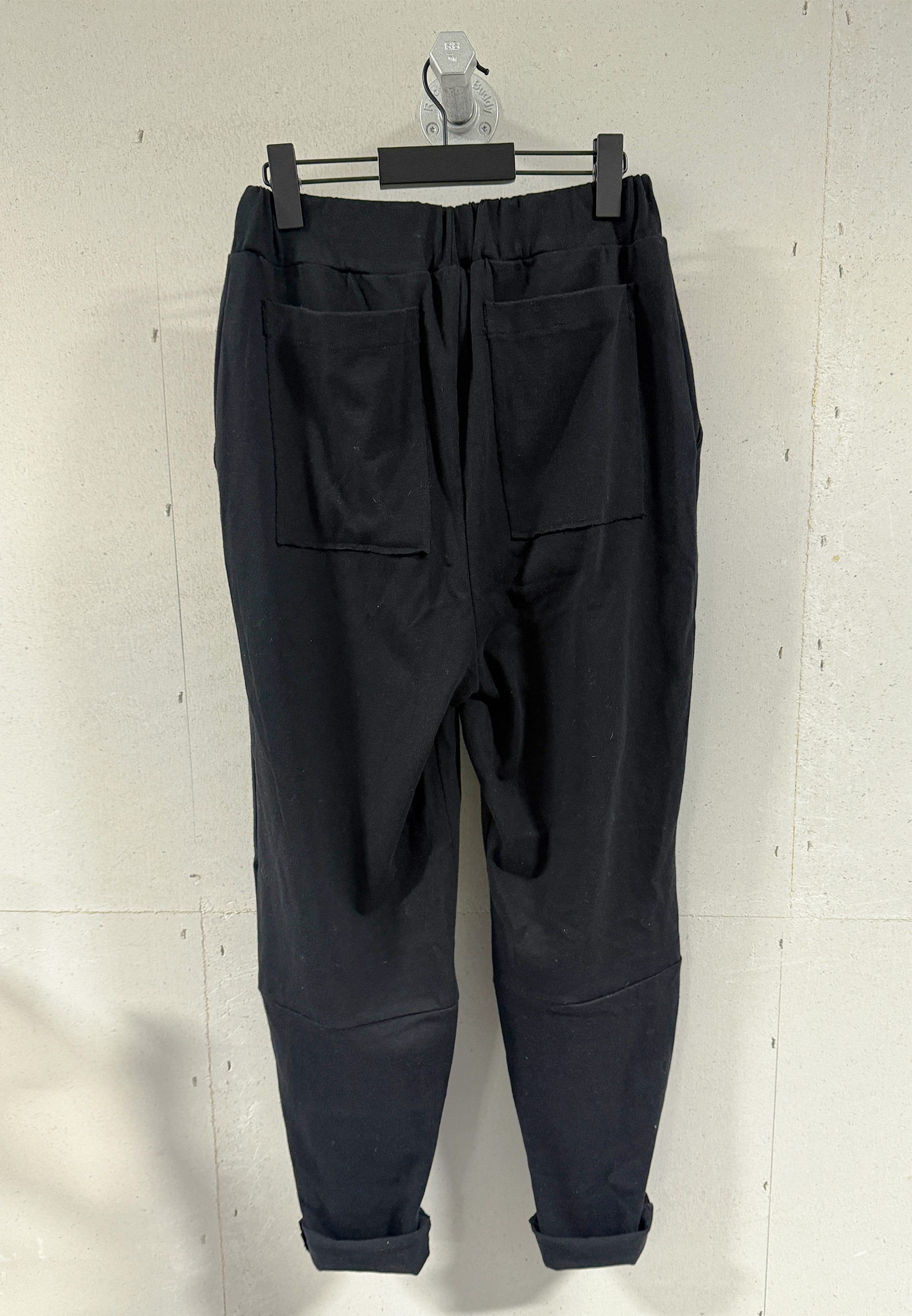 Style nr. SA1017-103. Sort Aarhus bukser med elastik i taljen. Buksen har lommer både foran og bagpå. Enkel og pæn buks . Buksen er normal i størrelsen