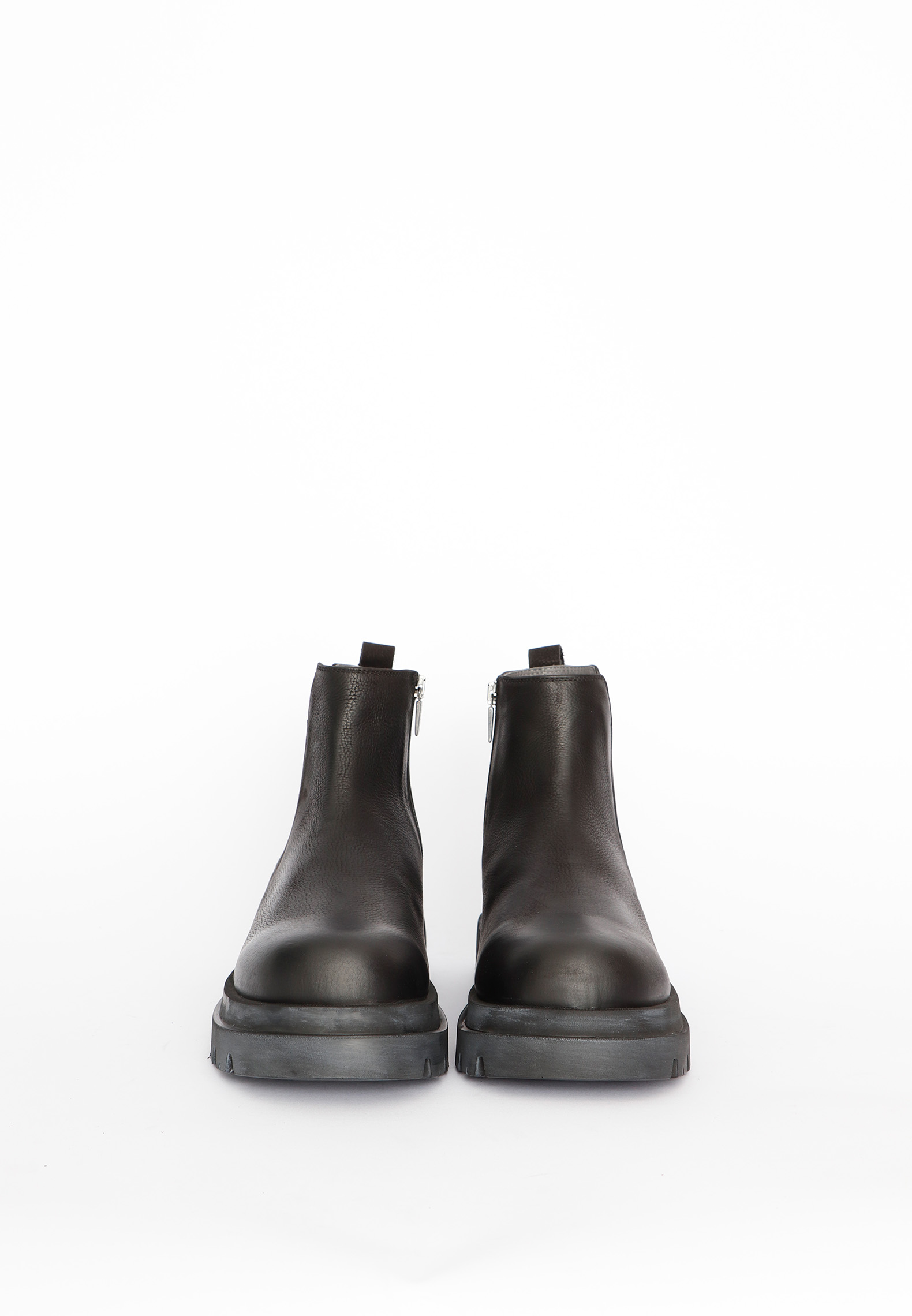 The boot is made in calfskin lined with pigskin. The sole is made in mixed materials of synthetic rubber.