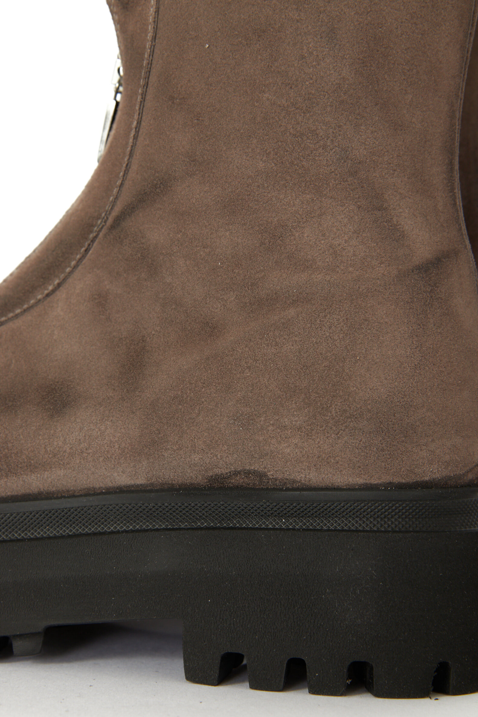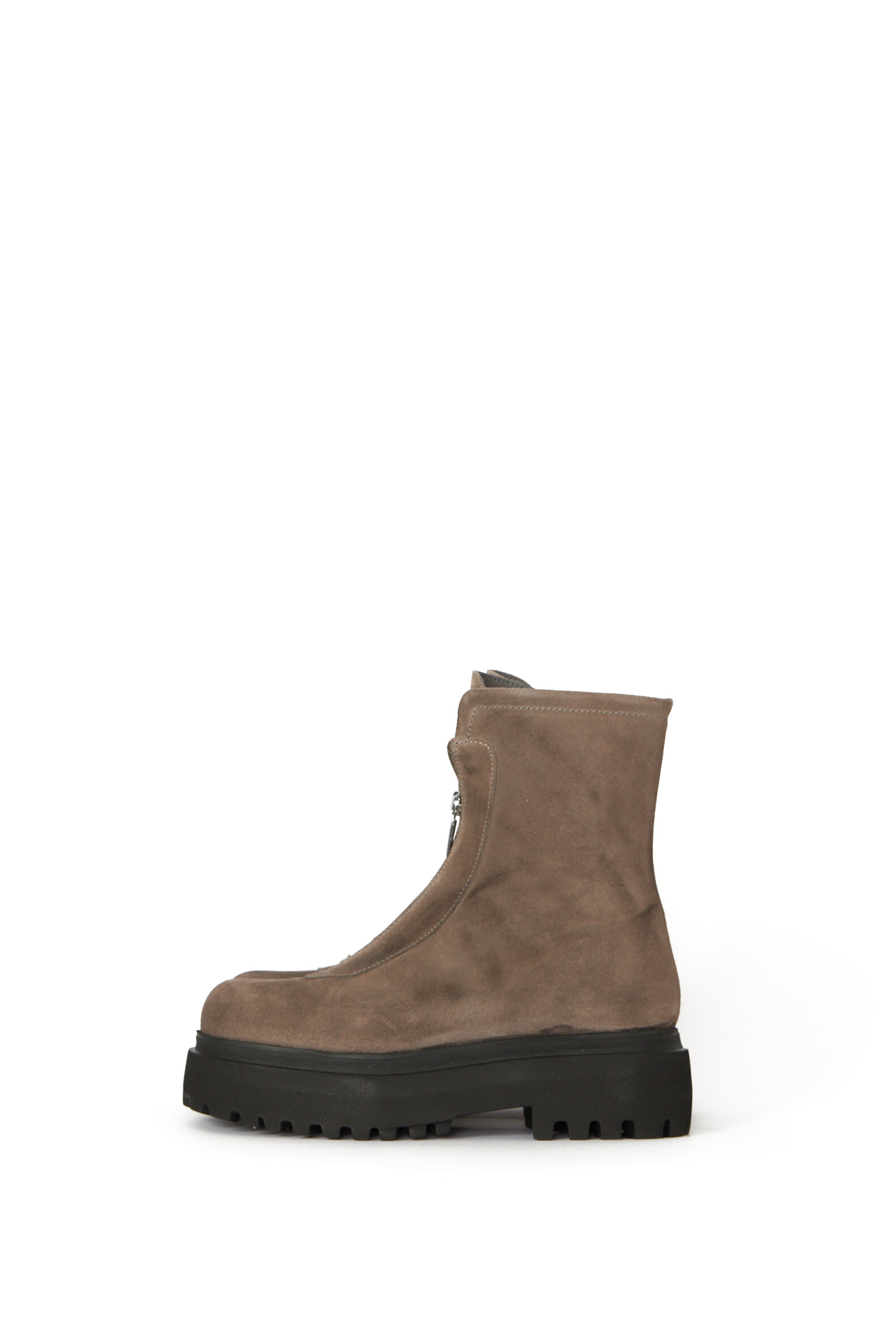 Boot in brown soft suede with a pigskin lining. The boot has a front zipper to give a raw look but also for easy on and off. The sole is made of synthetic rubber for good and optimal comfort.