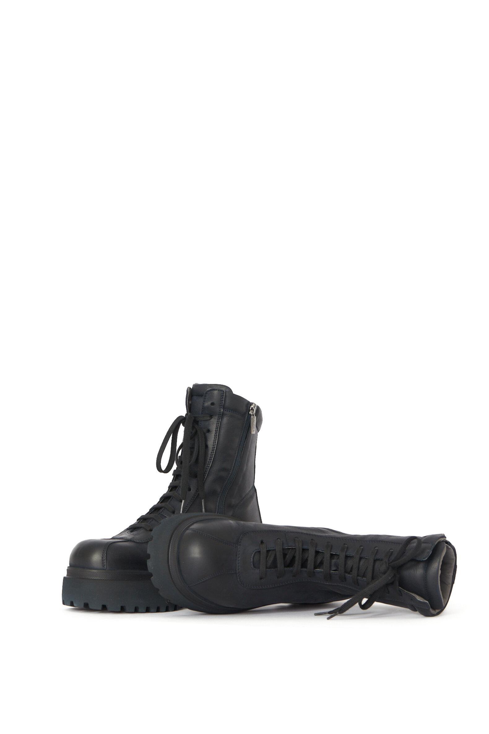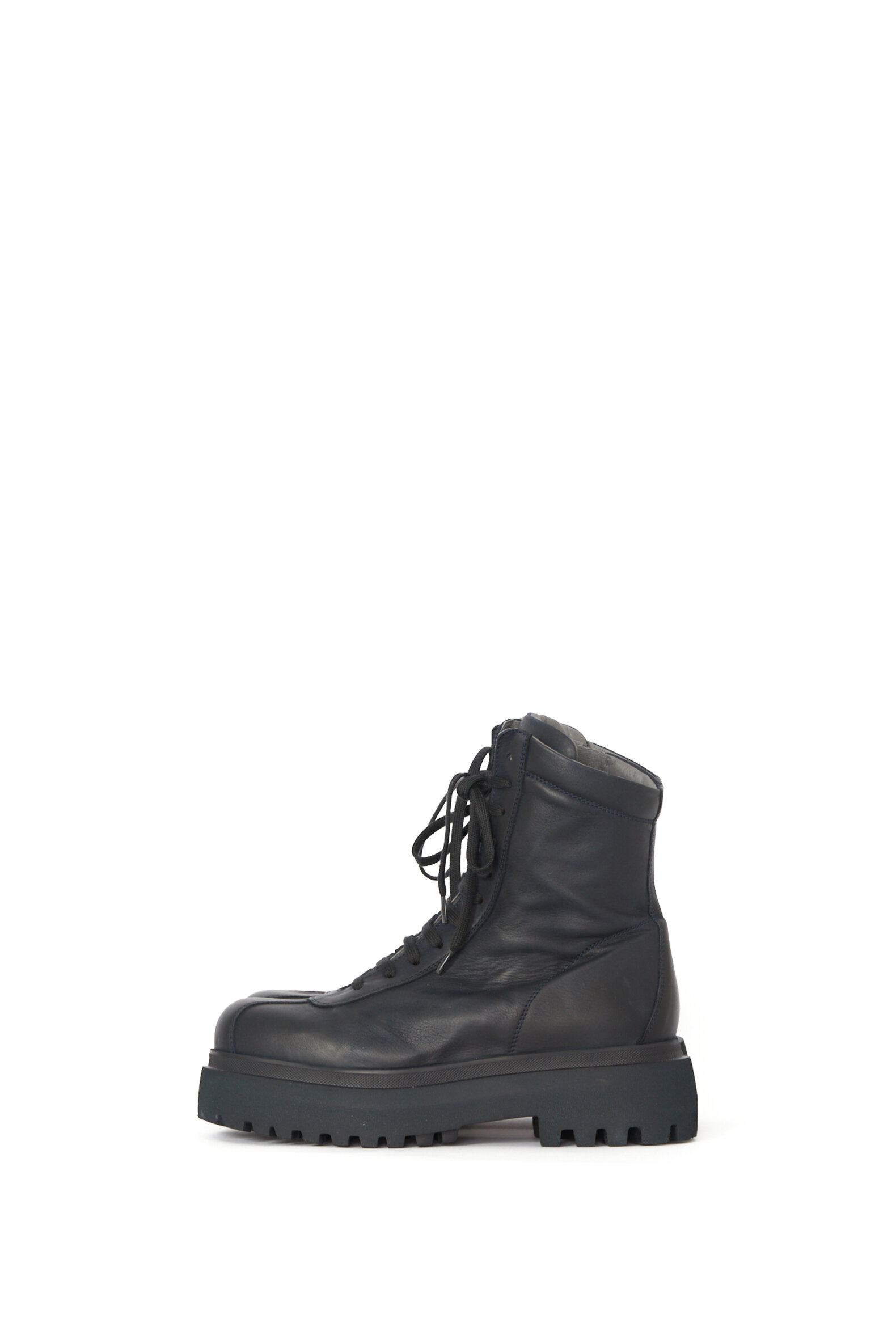 Støvle i navy glat kalveskind foret med svineskind for god åndbarhed. Støvlen er med snøre og lynlås så den både er nem at justere til for at få det optimale fit, og så den er nem at tage af og på.Materiale