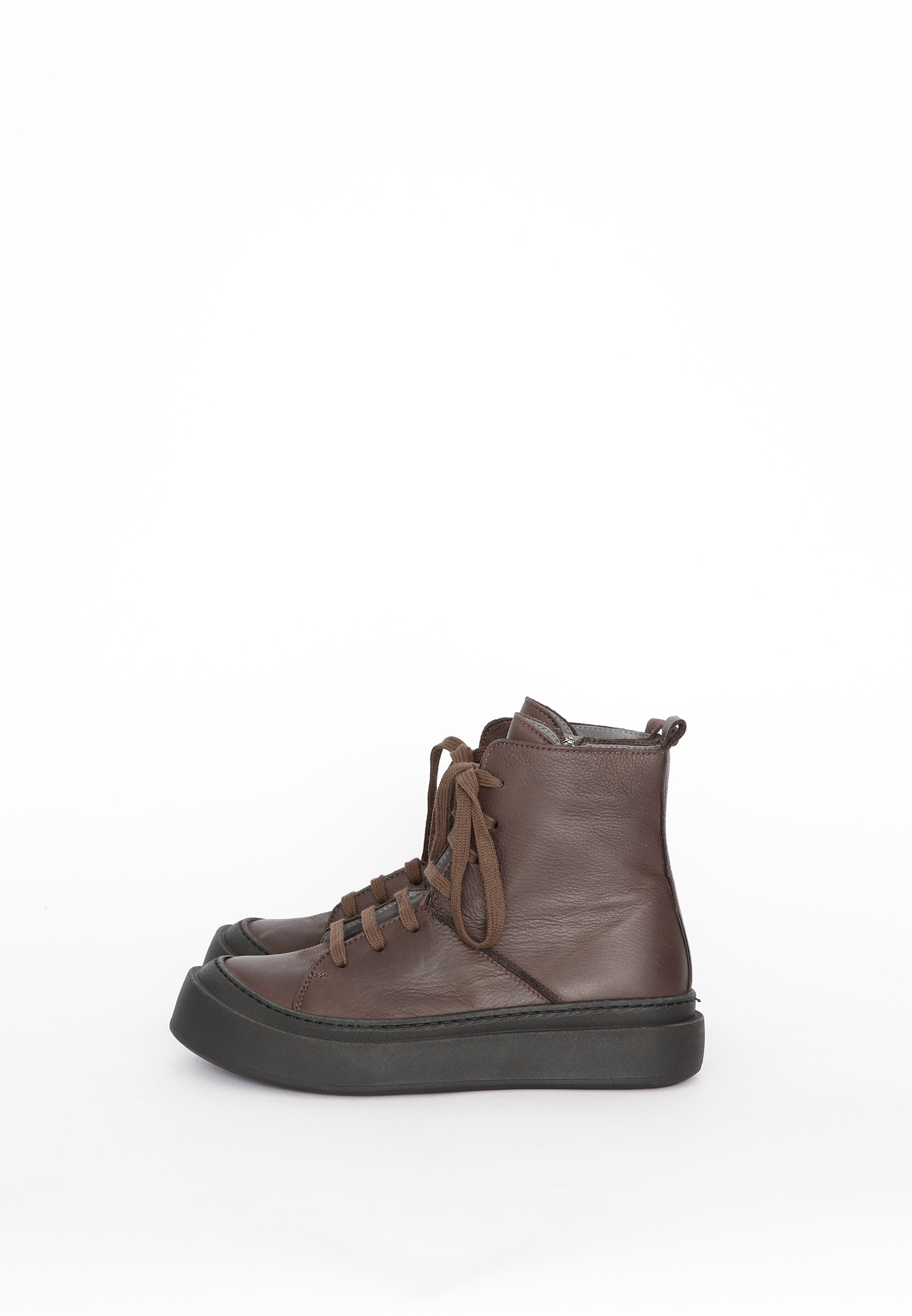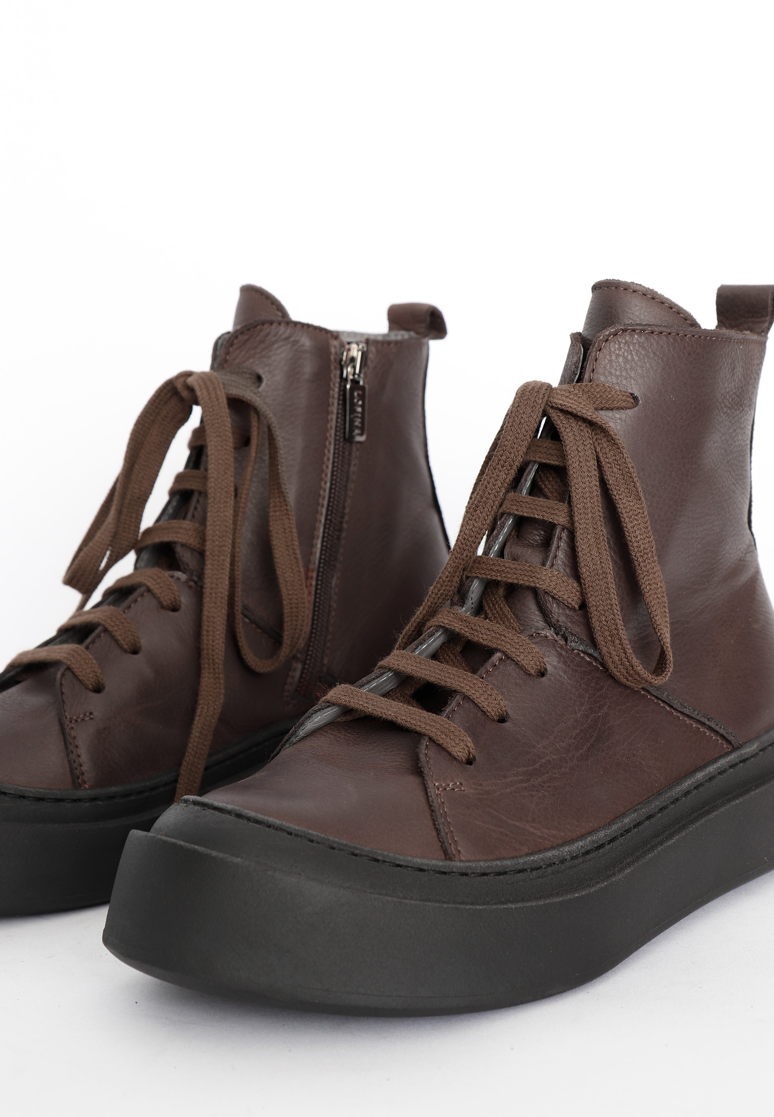 This boot in smooth brown calfskin is crafted in one of our classic upper leather looks, featuring both laces and a side zipper. The laces ensure an optimal fit, while the zipper allows for easy on and off. If you're looking for a boot you can wear all day, this is a perfect choice, as the sole offers unmatched comfort. The boot is also available in all black if that's more your style. All Lofina shoes are carefully crafted by hand at a small family owned factory in central Italy. Every style is uniquely manufactured from exclusive core leather materials sourced nearby.