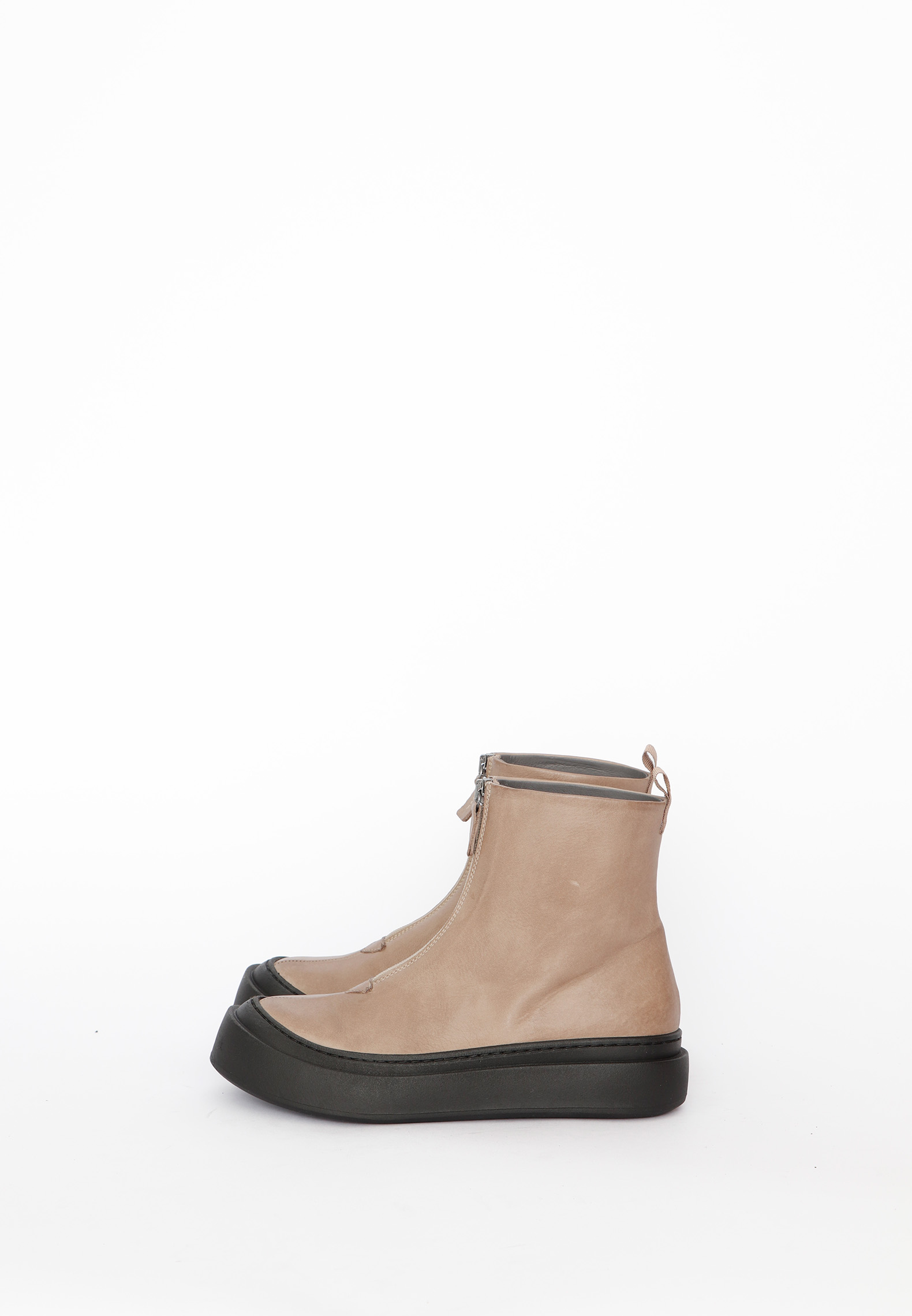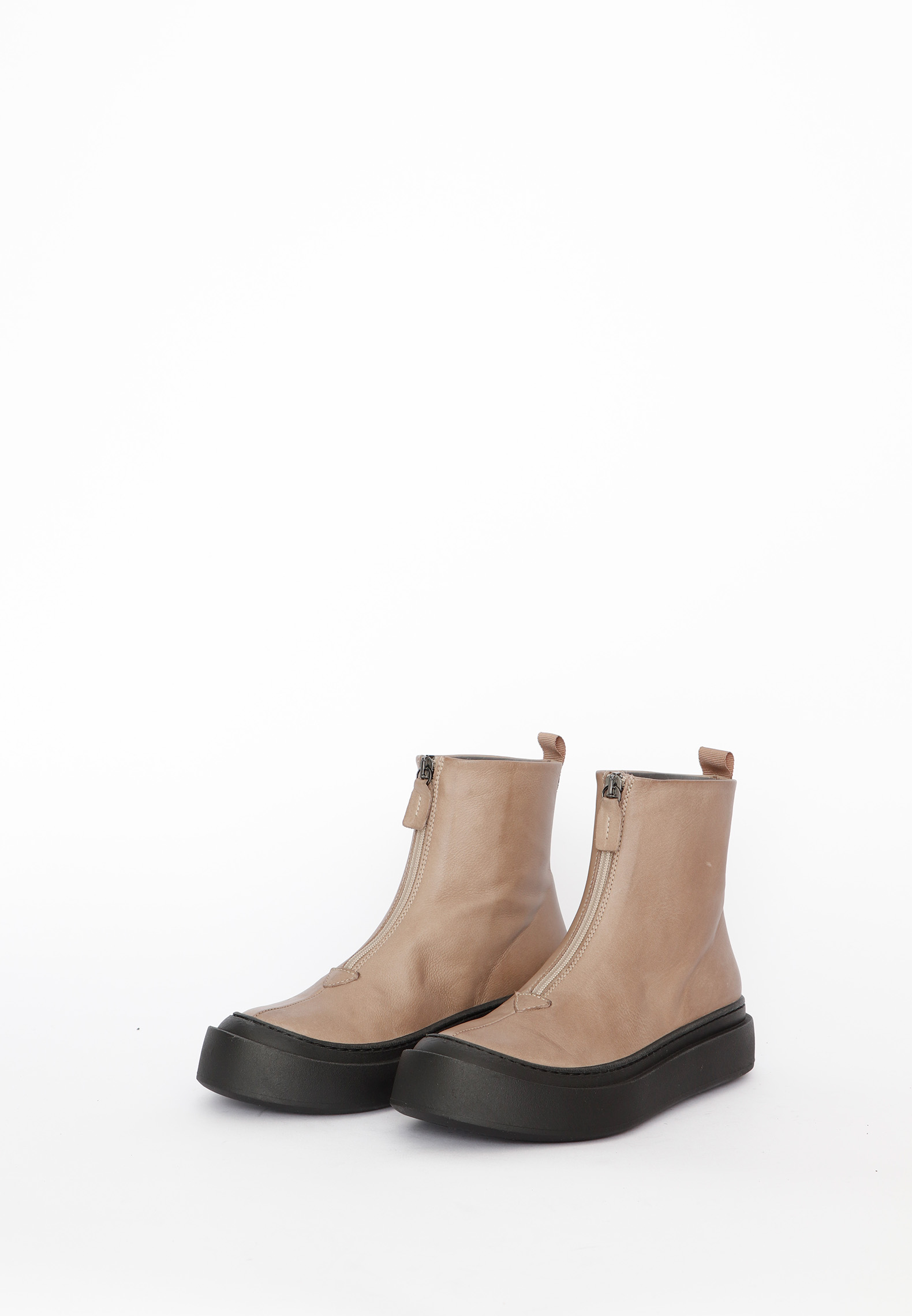 Modern and minimalist short boot with a front zipper. Made from light brown calf leather and lined with pigskin, the boot features an elegant and timeless look thanks to its simple design. The front zipper makes it easy to put on and take off, while the discreet pull tab at the back adds to its functionality. A versatile boot that combines comfort, simplicity, and a refined appearance. It also comes with a clean, ultra-comfortable sole.