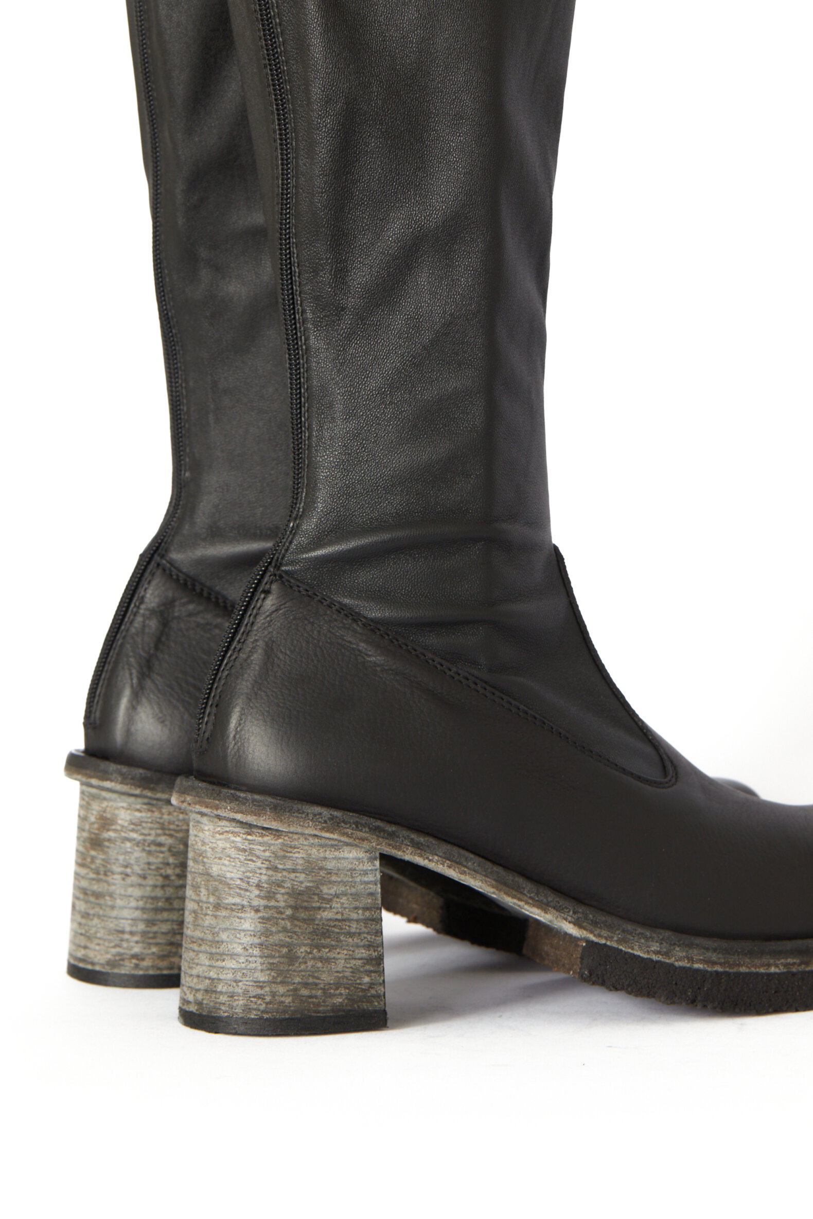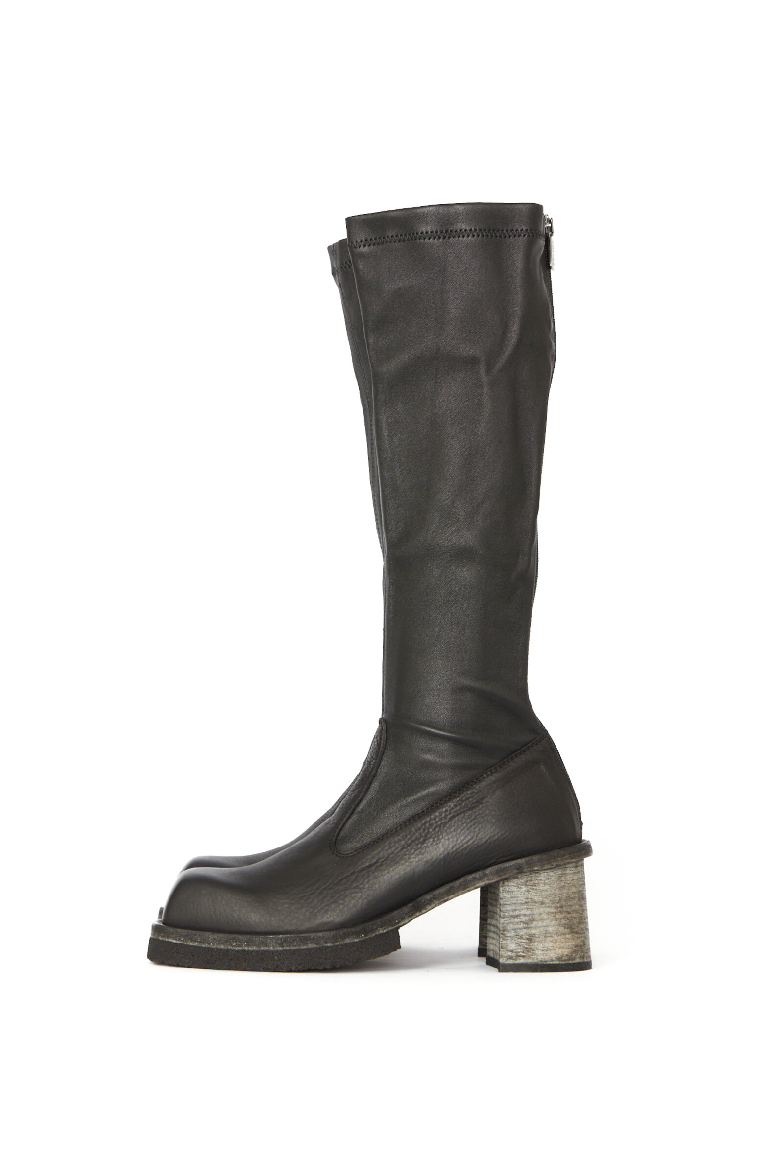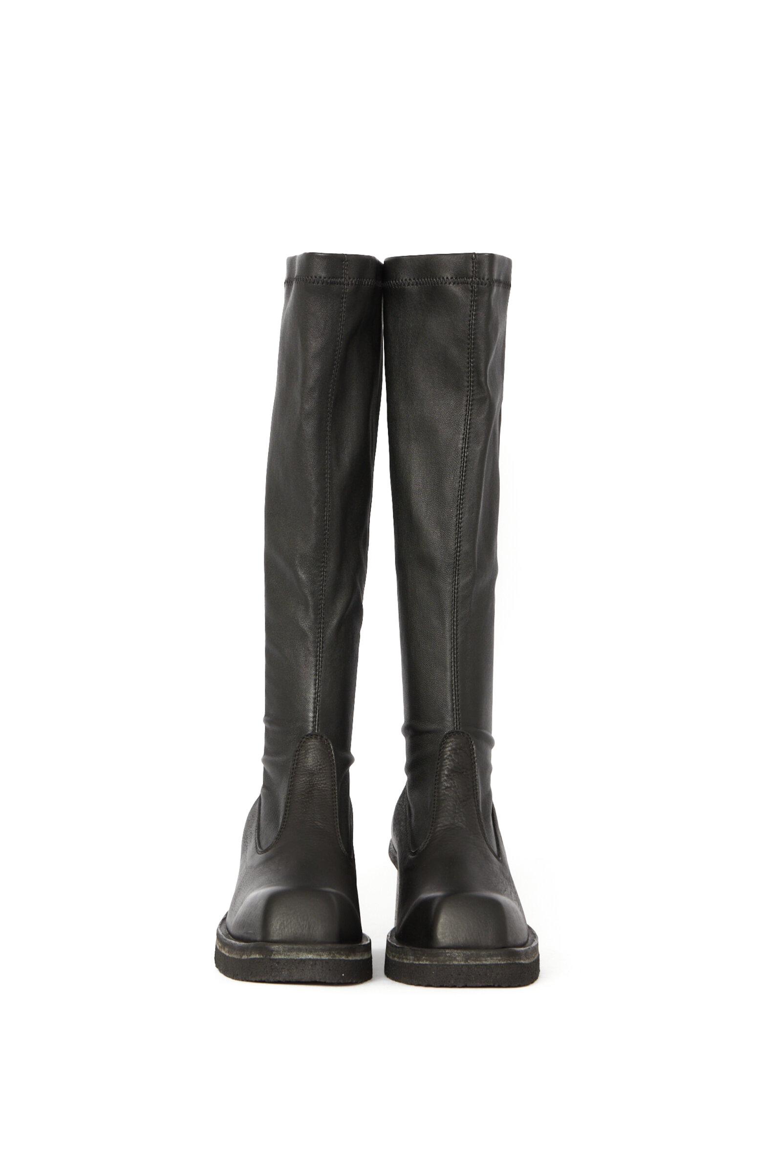 Lang støvle med strækskind samt lædersål med rågummisål