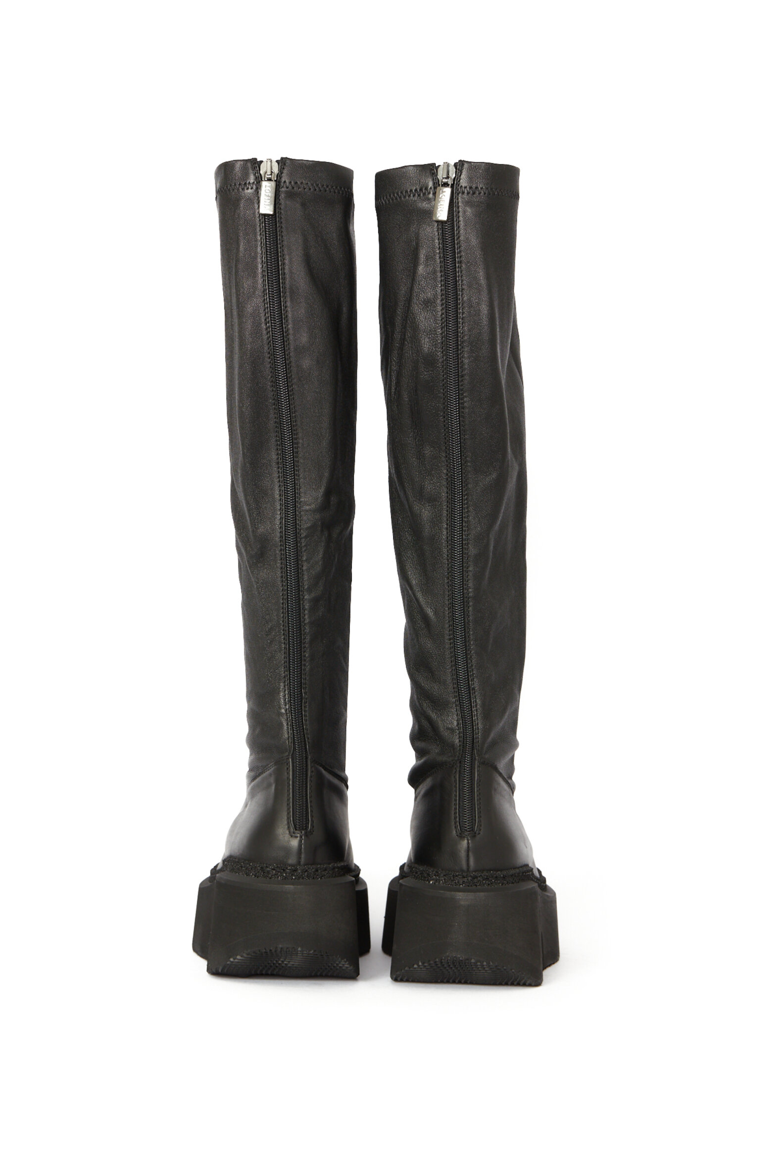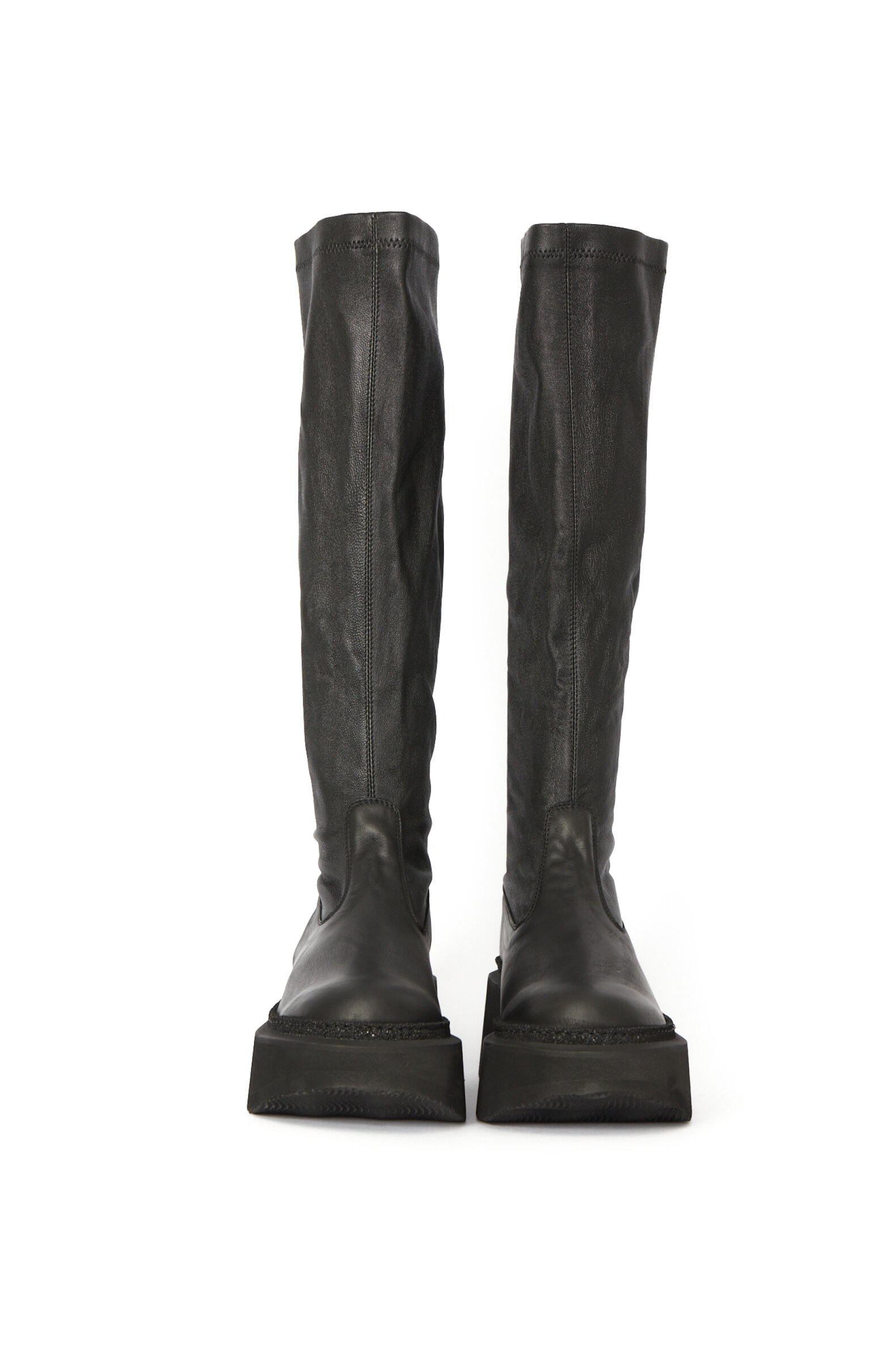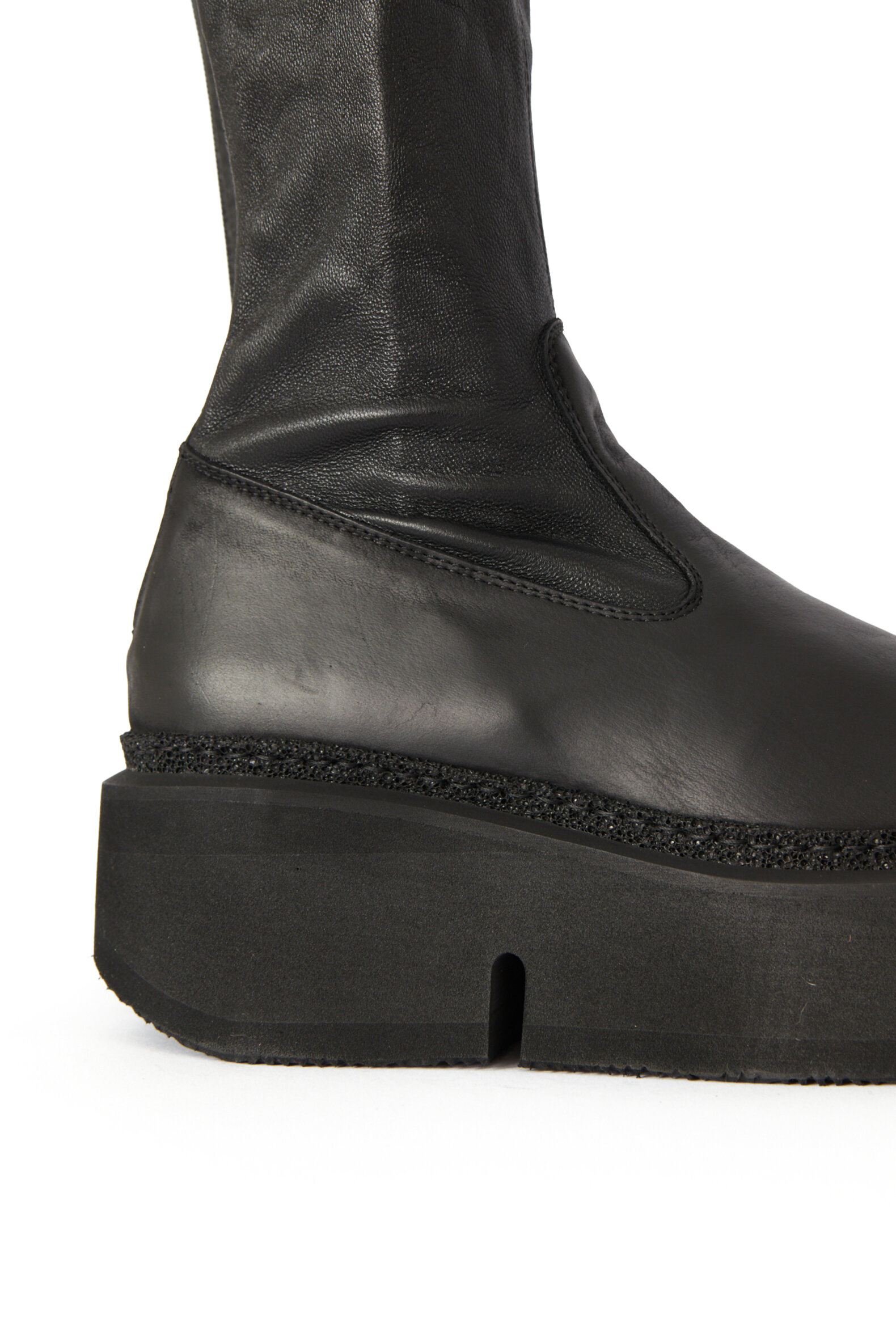 Lang støvle i kalveskind med strækskind og lynlås, så den er nem at få på og af. Støvlen kommer med en super smart sål lavet af syntetisk gummi, som gør den komfortabel at gå på. Normal i størrelsen.