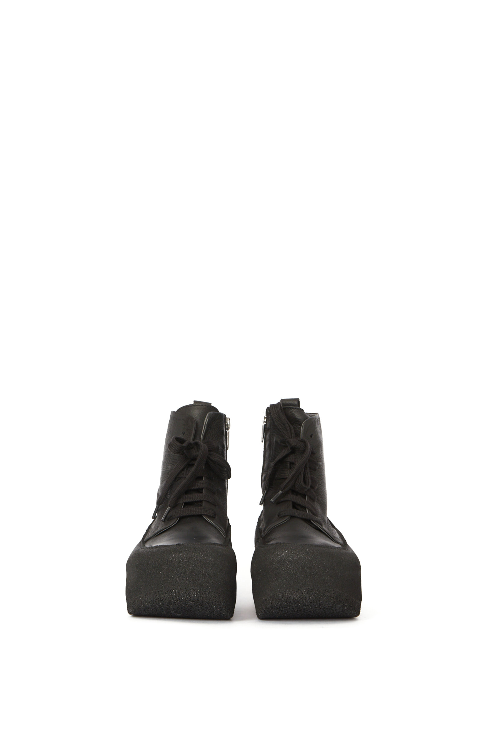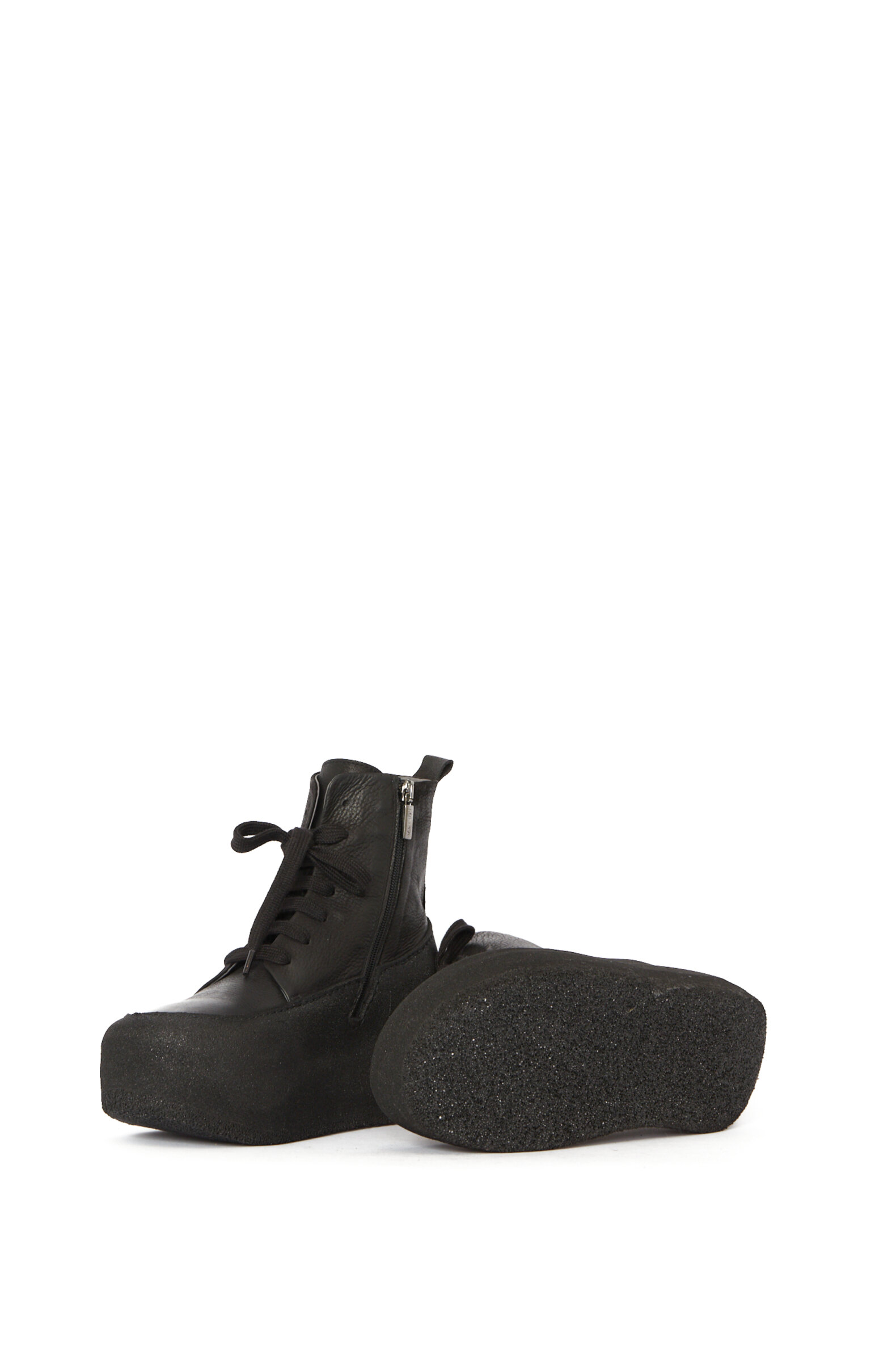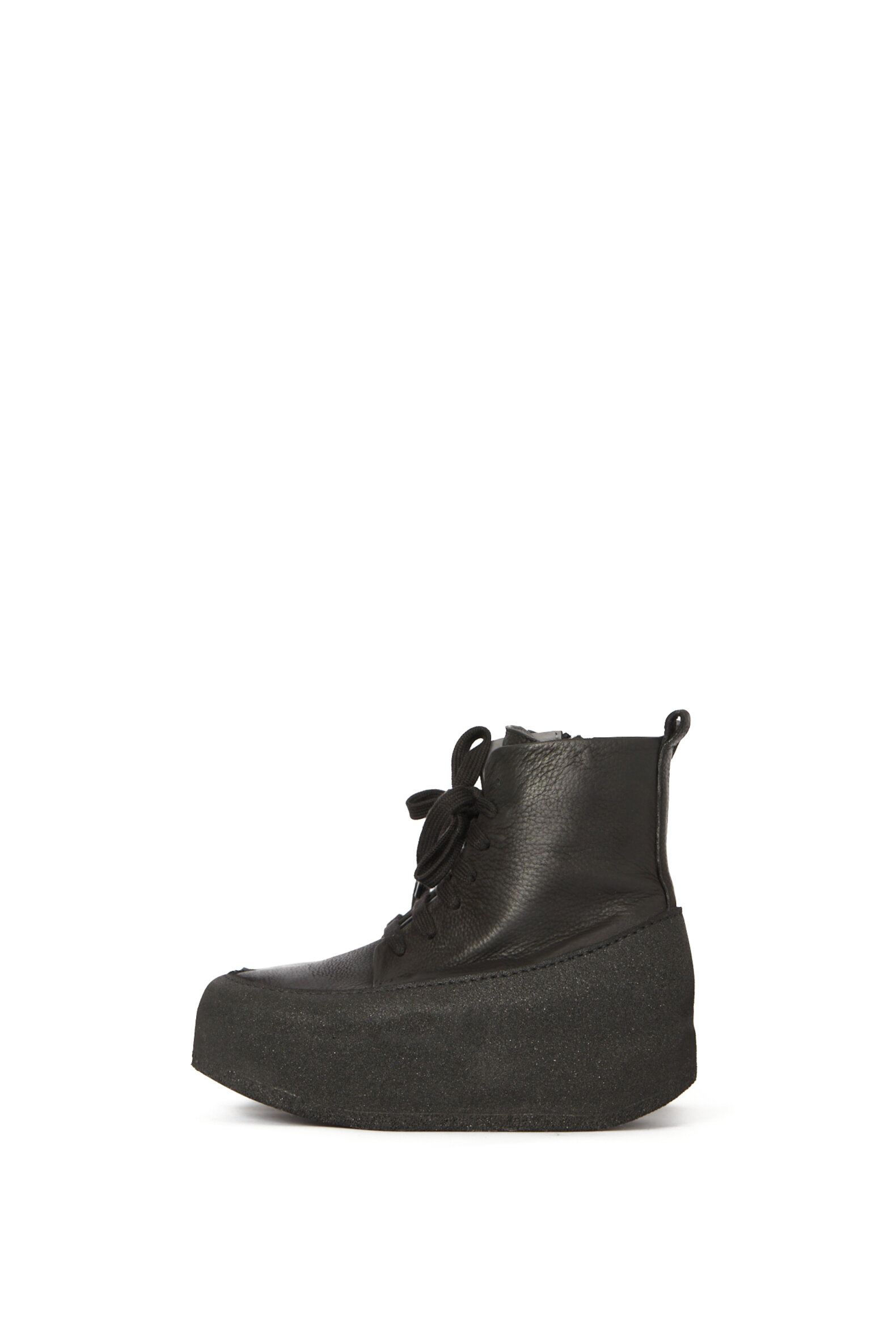 Støvle i sort glat kalveskind med snøre, så den nemt kan tilpasses din fod, og en lynlås på indersiden for nem adgang. Sålen er chunky men let, og vi er vilde med dette look. Normal i størrelsen.Materiale
