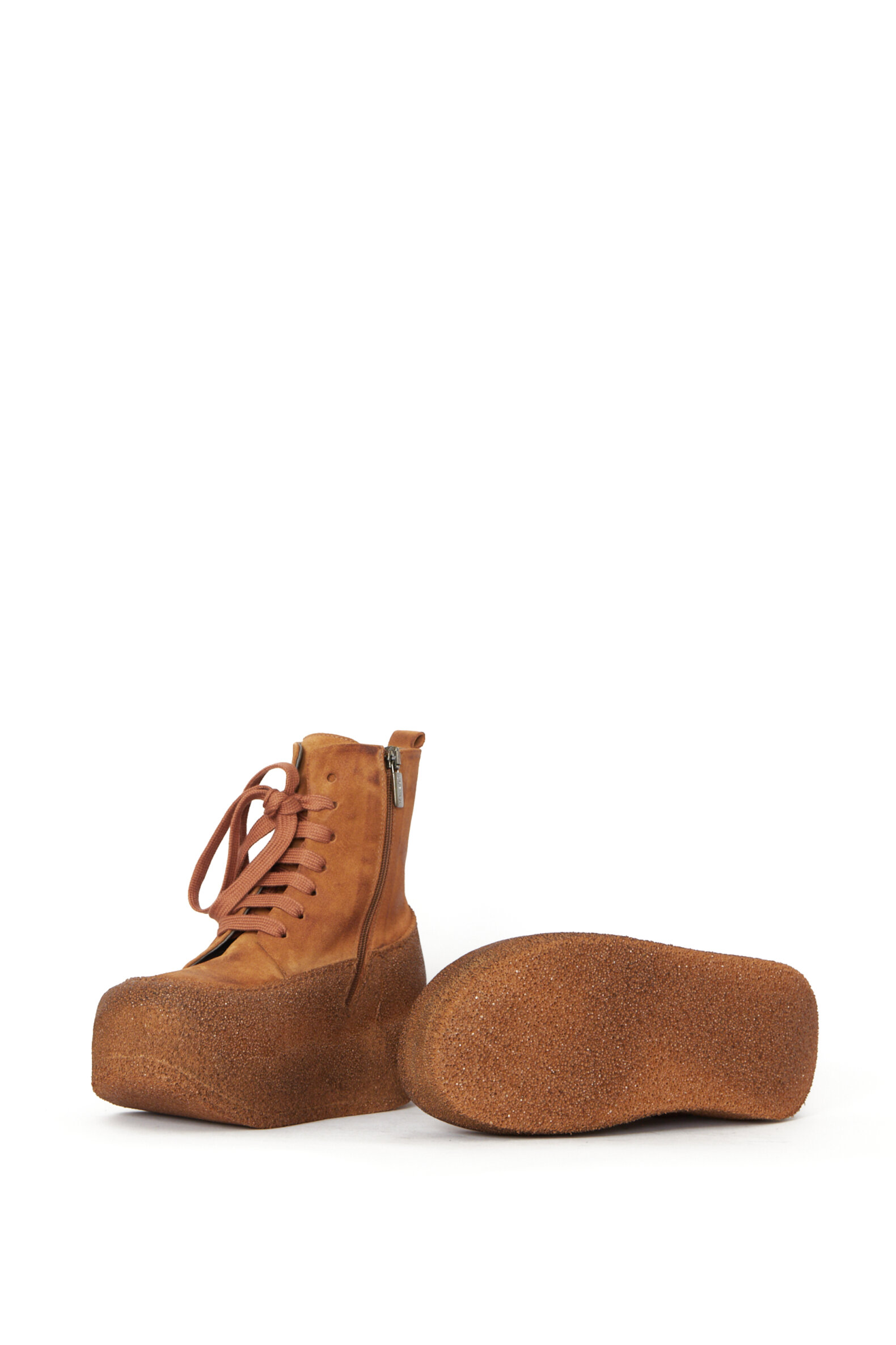 Boot in suede with matching laces for an optimal fitting and a zipper for easy on and off. The sole is chunky though unheavy. We absolutely love this tone in tone look. Style with matching clothes from Sort Aarhus to complete the tone in tone styling. True to size.