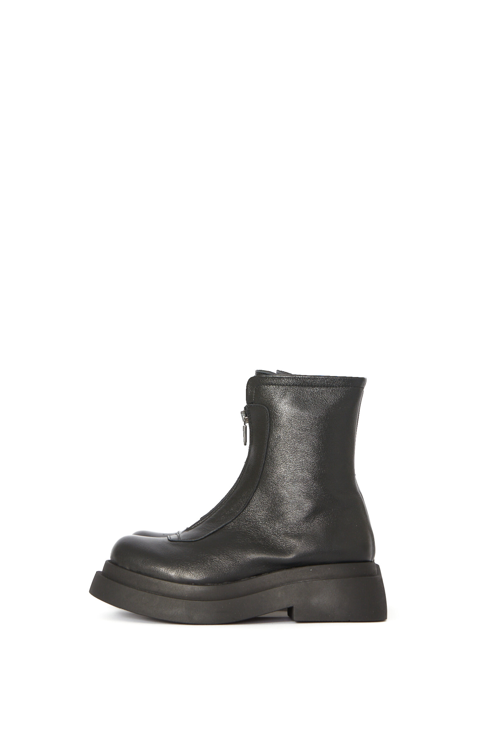 Super cool boot in smooth black calf leather with a front zipper for a raw yet refined look. The inside of the boot is lined with pigskin, for extra good comfort. It also features a bold sole that is surprisingly lightweight. The shape and material of the sole give the boot a visually refined appearance while ensuring exceptional walking comfort. All Lofina shoes are carefully crafted by hand at a small, family owned factory in central Italy. Every style is uniquely manufactured from exclusive core leather materials sourced nearby.