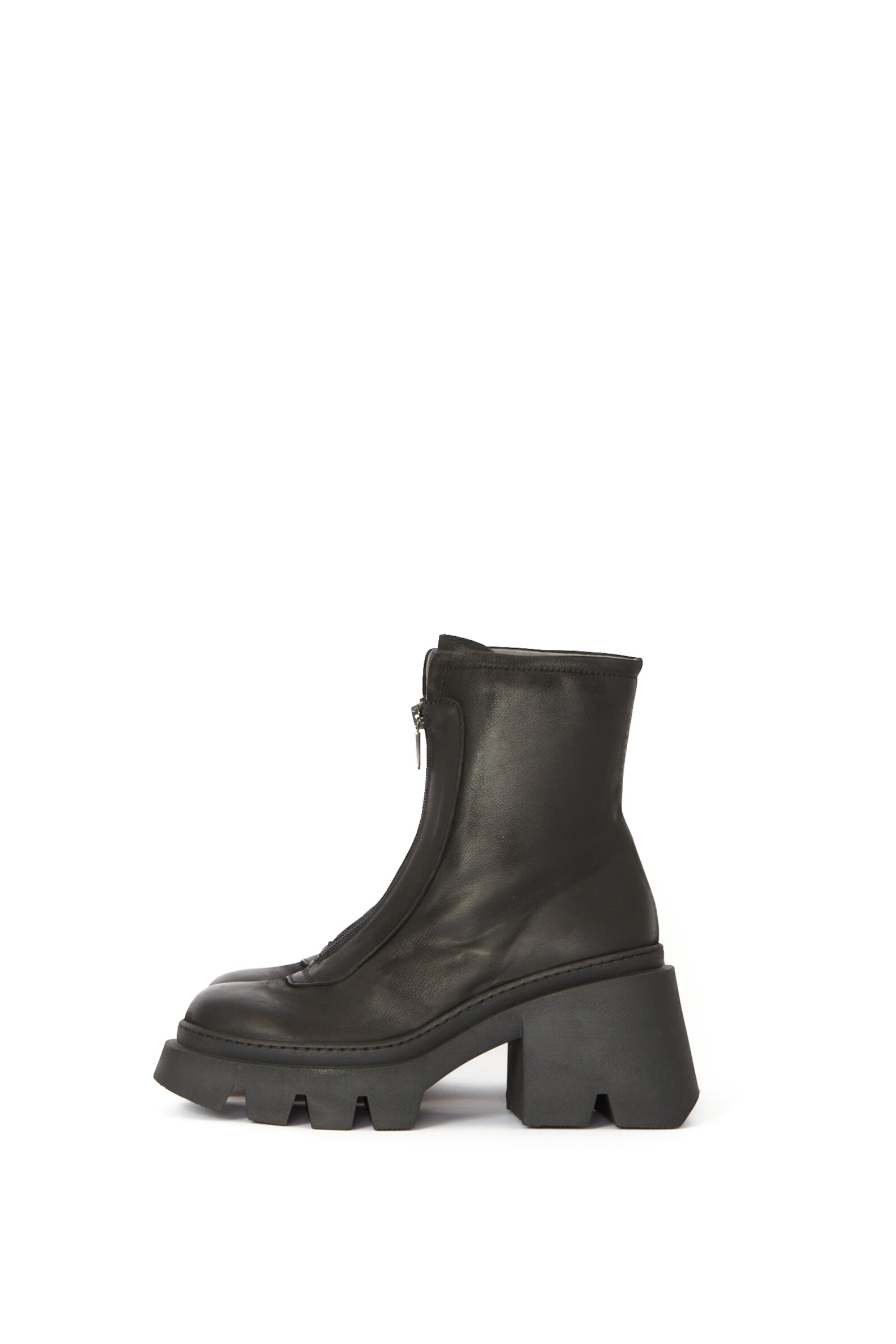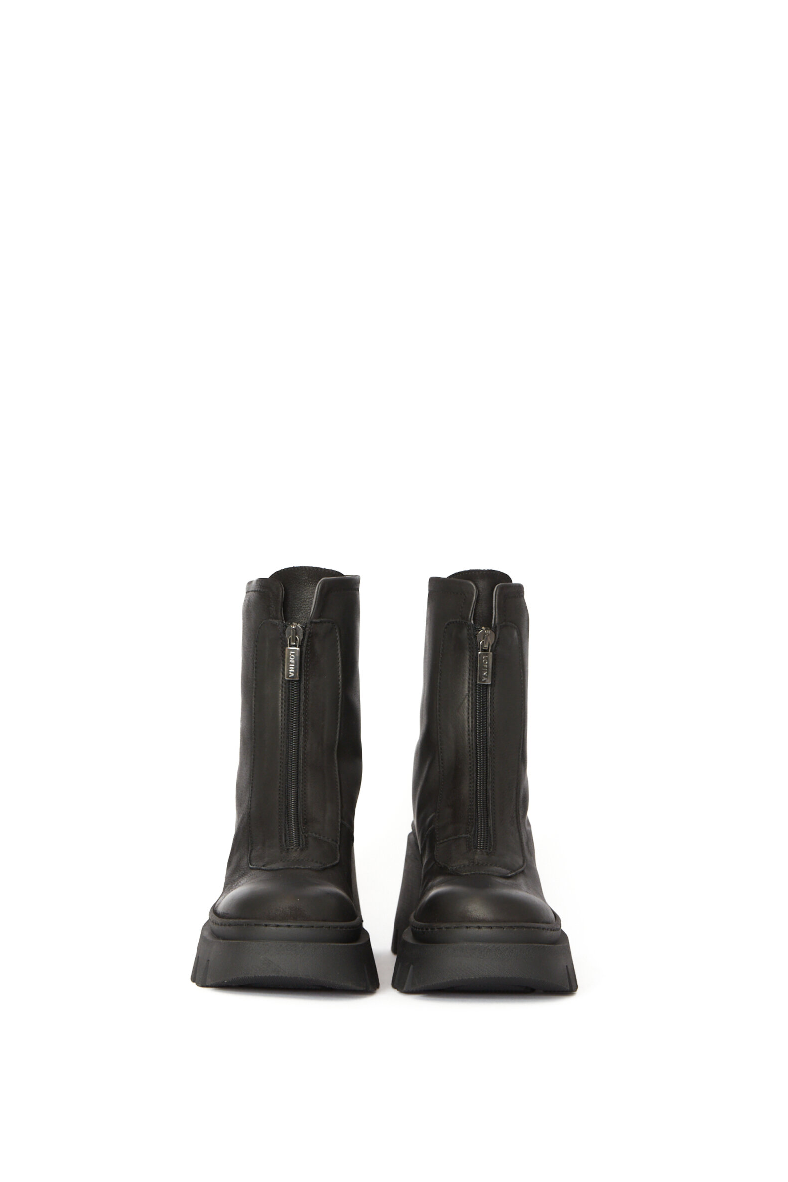 Støvle i kalveskind af høj kvalitet, håndlavet i Italien af nøje udvalgte lokale materialer. Støvlen har front-lynlås så den er nem at tage på og af, og samtidig giver et råt look. Sålen måler 8 cm og er meget behagelig at gå på. Brug støvlen både til hverdagsbrug og til særlige begivenheder. Normal i størrelsen.