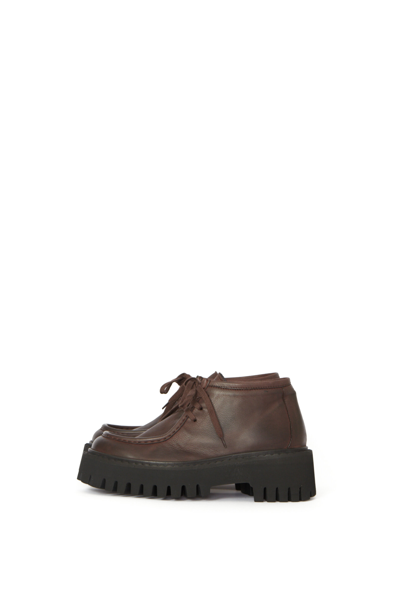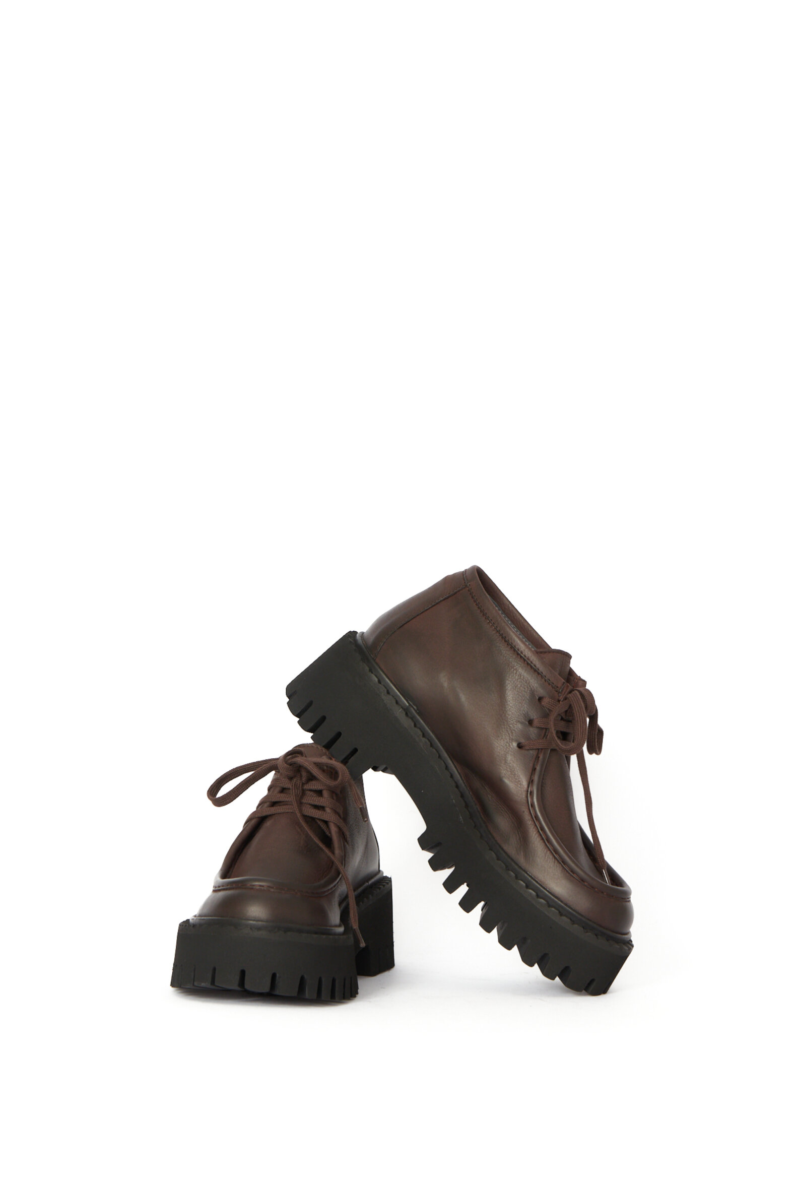 Lav støvle i mørkebrunt glat kalveskind, som er foret med svineskind for god åndbarhed og komfort. Støvlen er med matchende snøre. Den rå og lidt chunky sorte sål giver skoen et smart udtryk samt en meget behagelig følelse at gå på. Style eksempelvis med Sort Aarhus tøj i matchende farver eller en af de lækre konfektions-styles fra samme brand. Normal i størrelsen.Materiale