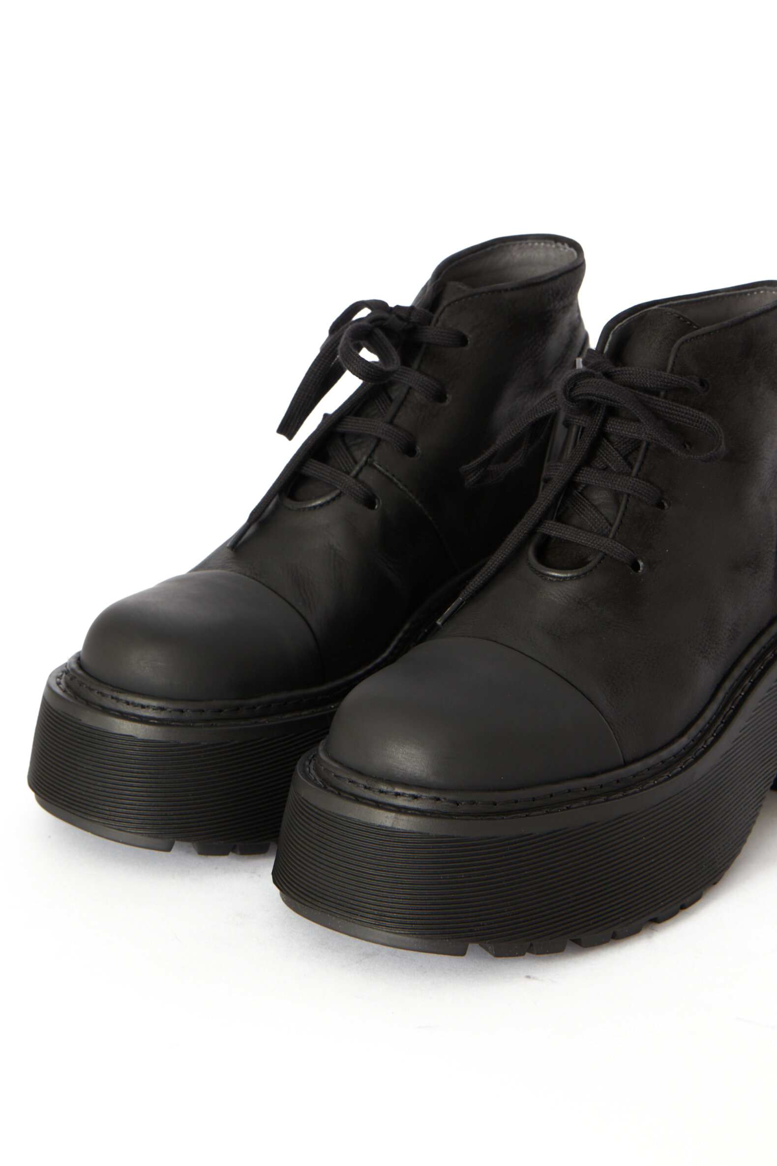 Kort støvle fra Sort Aarhus lavet i kalveskind med en svineskinds-foring for ekstra god åndbarhed og komfort. Støvlen kommer med snøre, så den er nem at justere til din fod. Sålen er tung og måler 7,5 cm i højden. Støvlen kommer også i mørkebrun og lysebrun. Lidt stor i størrelsen.Materiale