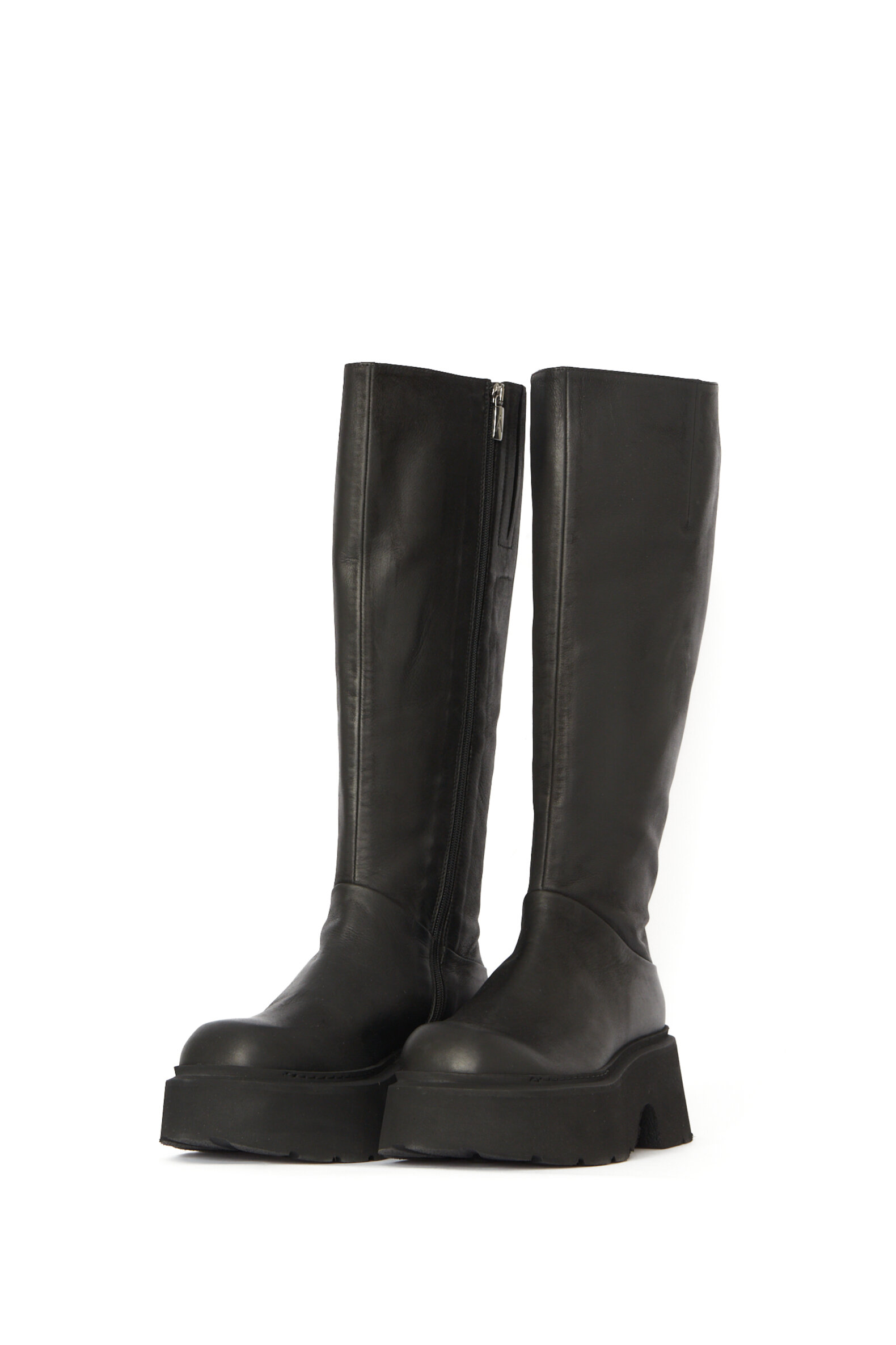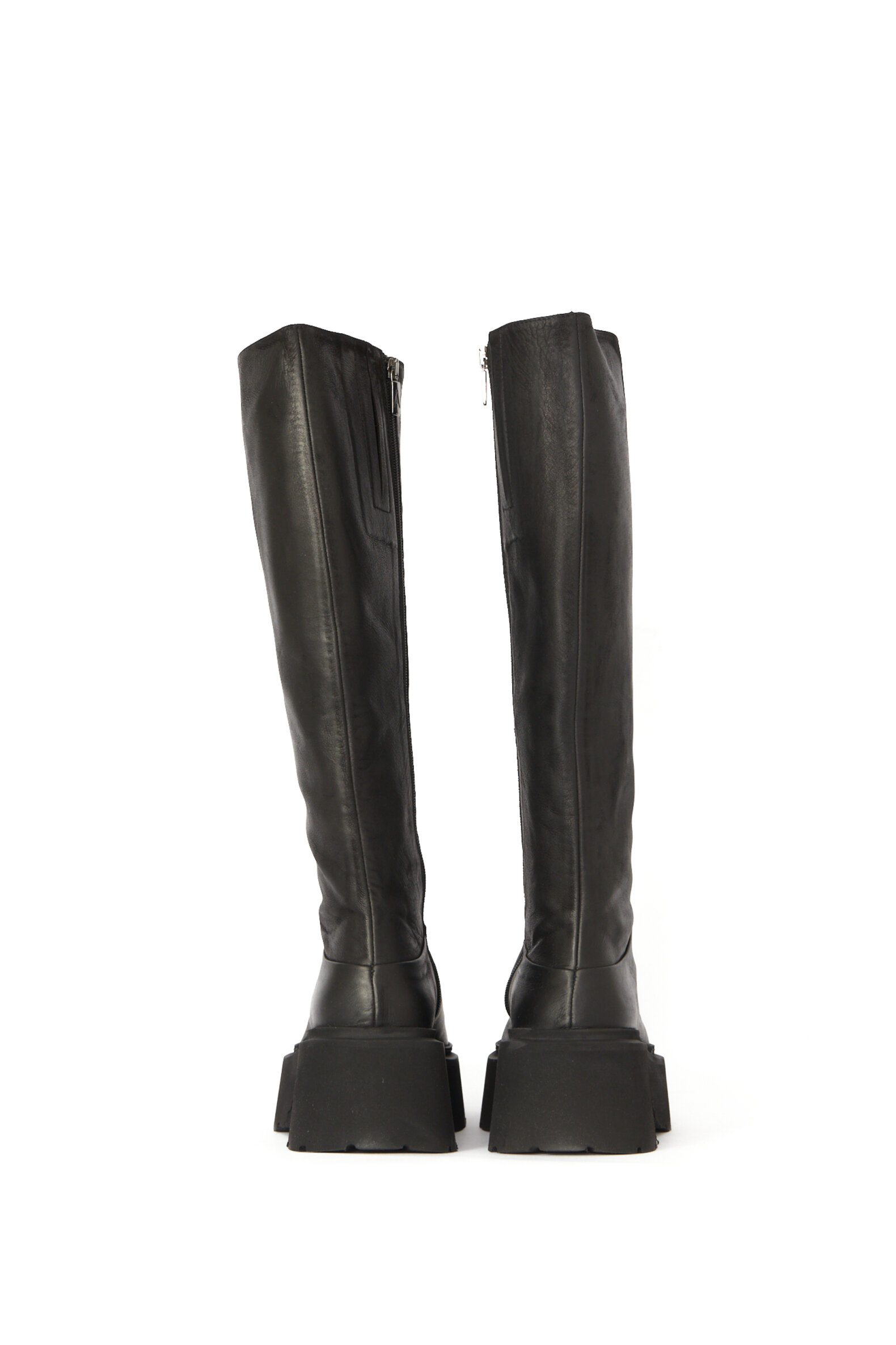 Long boot from Sort Aarhus made in smooth black calfskin with a pigskin lining for good breathability and comfort. The boot comes with a feminine heel and a zipper for easy on and off.