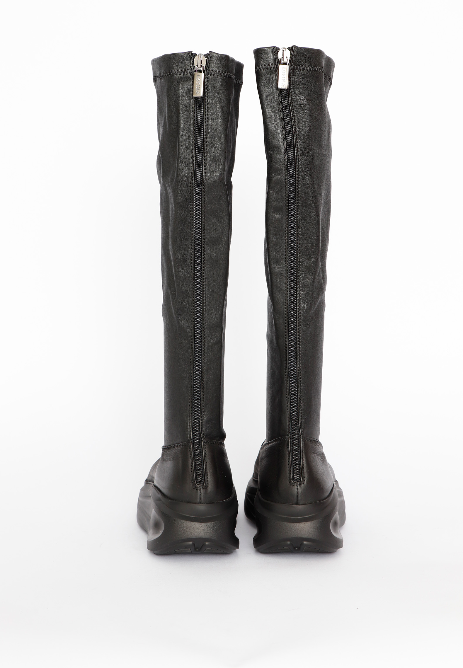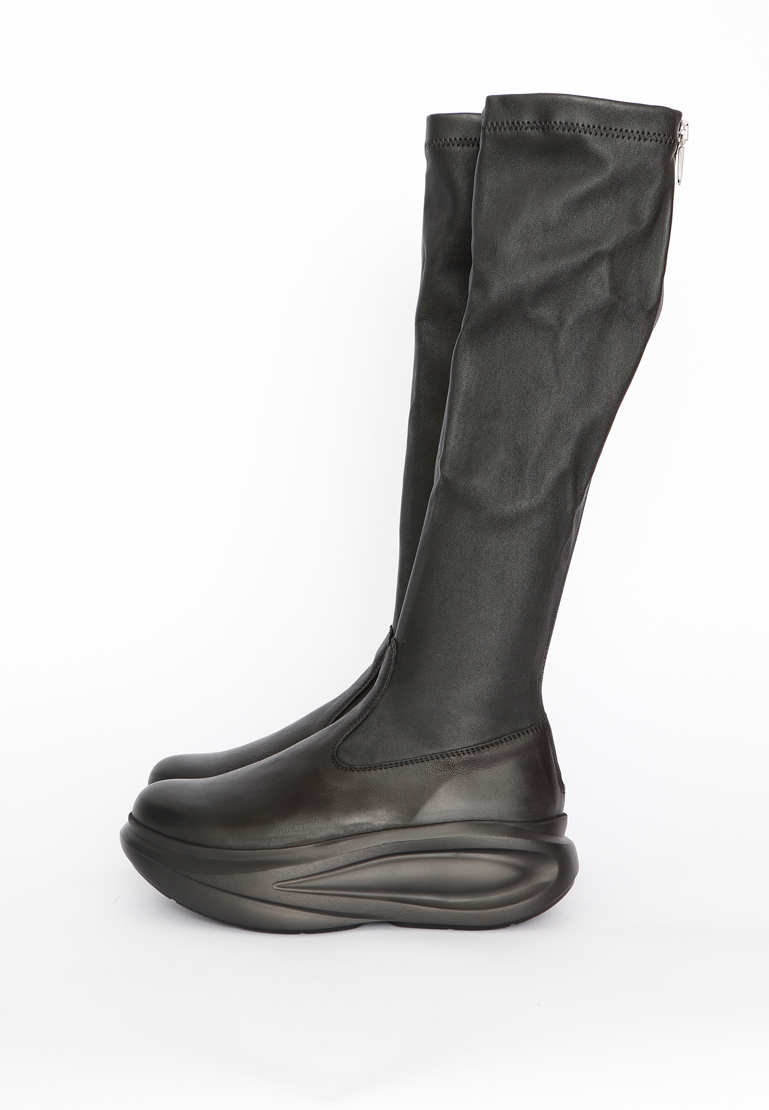 Long boot with stretch leather and zipper