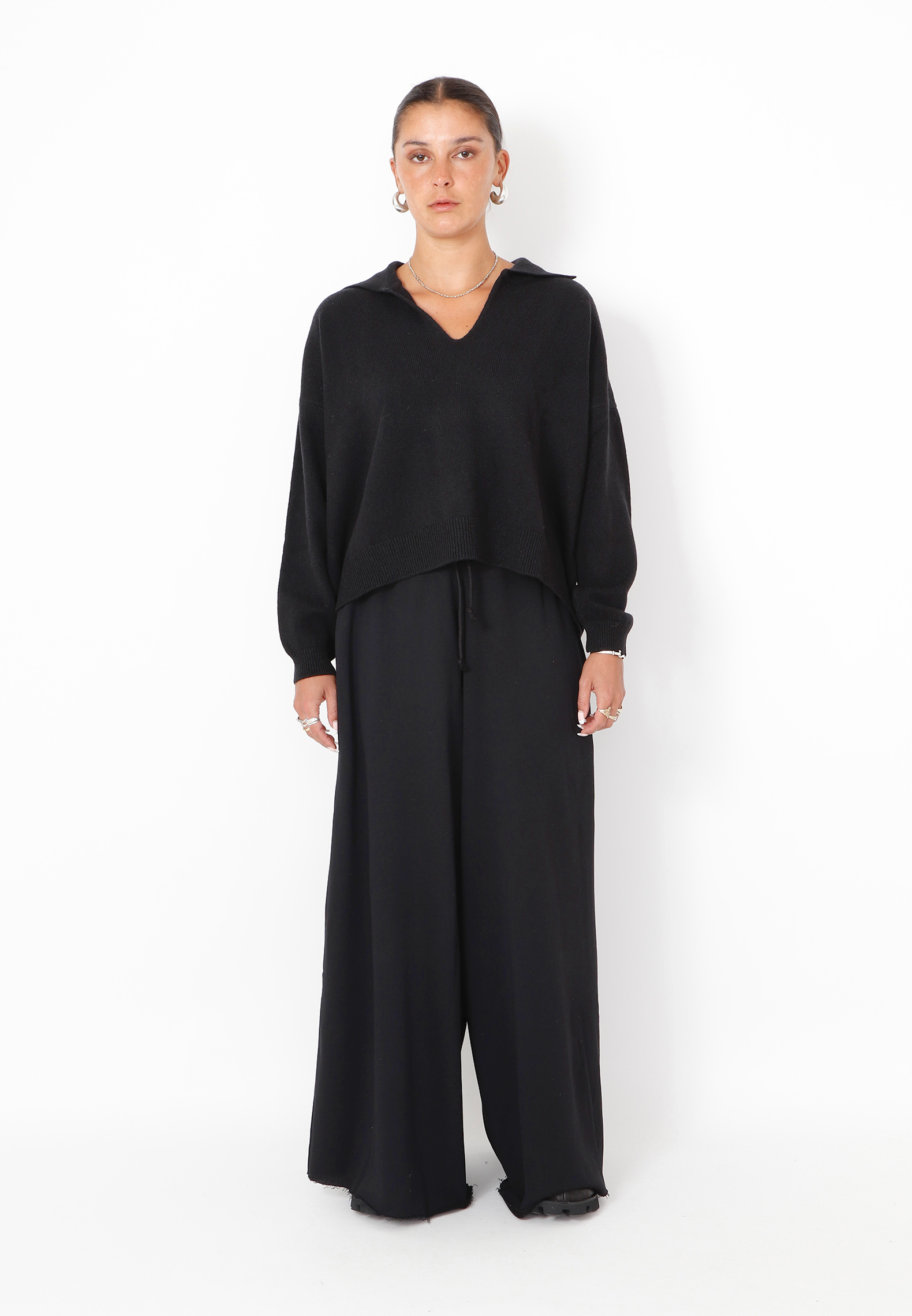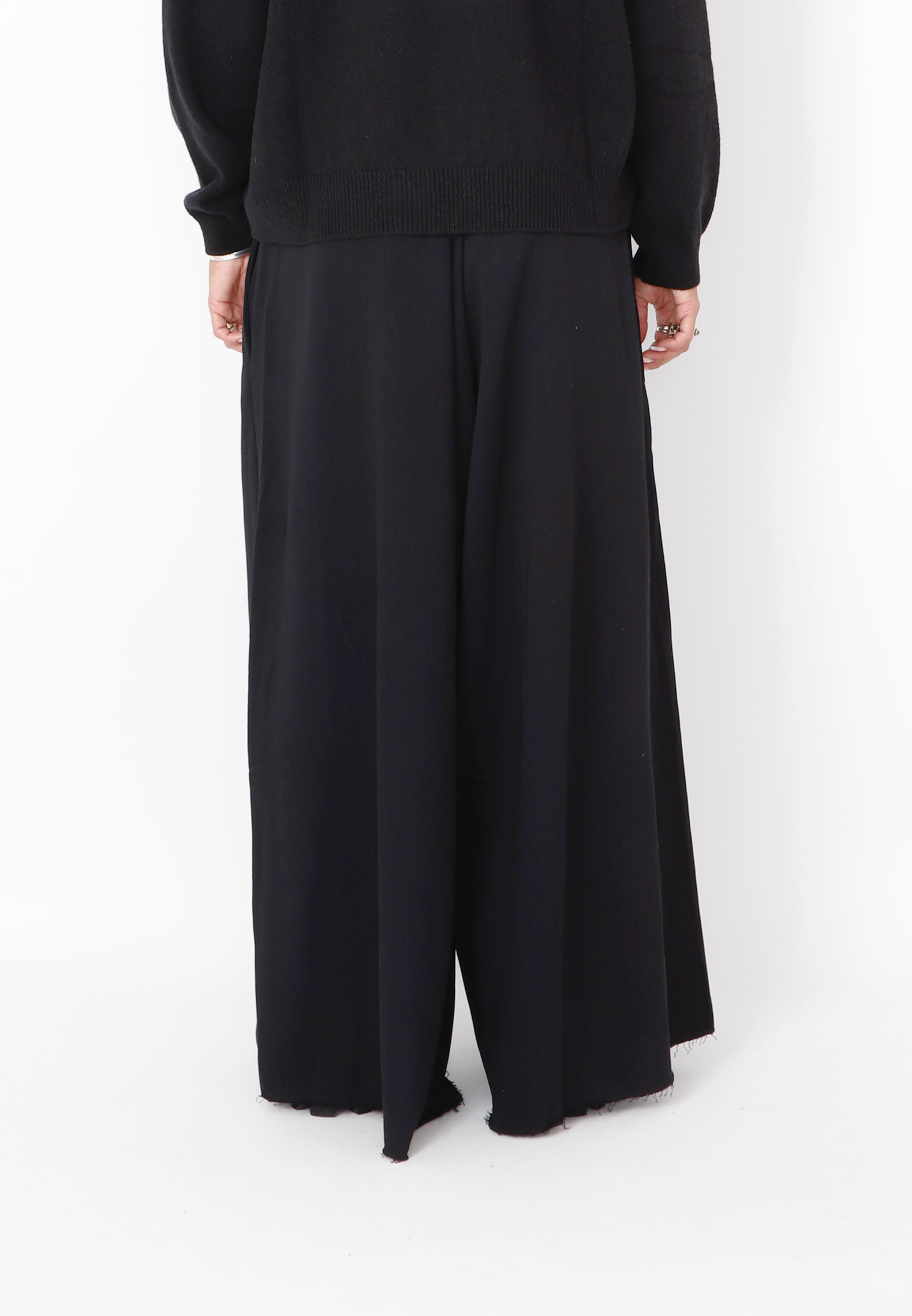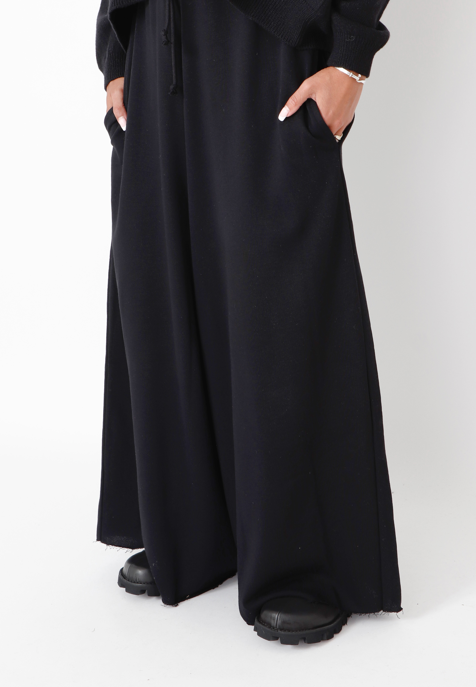 Wide pants in a comfortable and soft cotton and modal mix. The pants are tied with an adjustable lace in the waist and it has raw edges. All Sort Aarhus clothing is made in Portugal of handpicked local materials and qualities with focus on design and a comfortable fit.