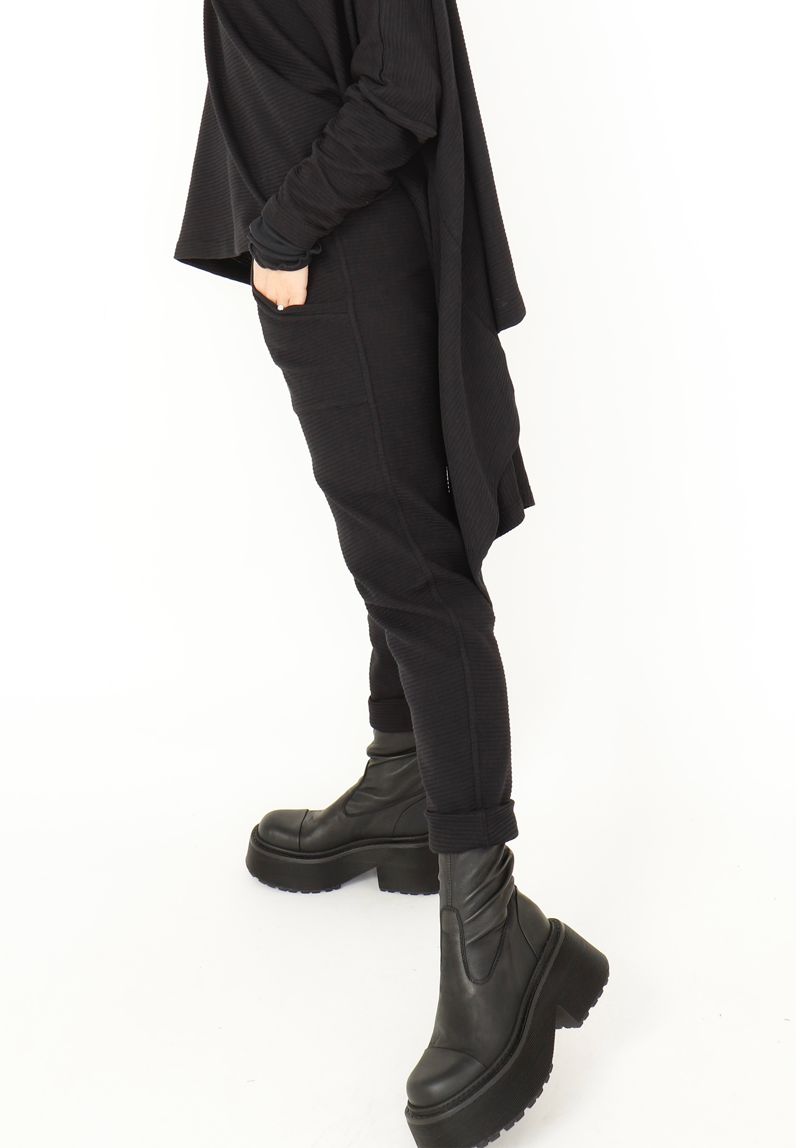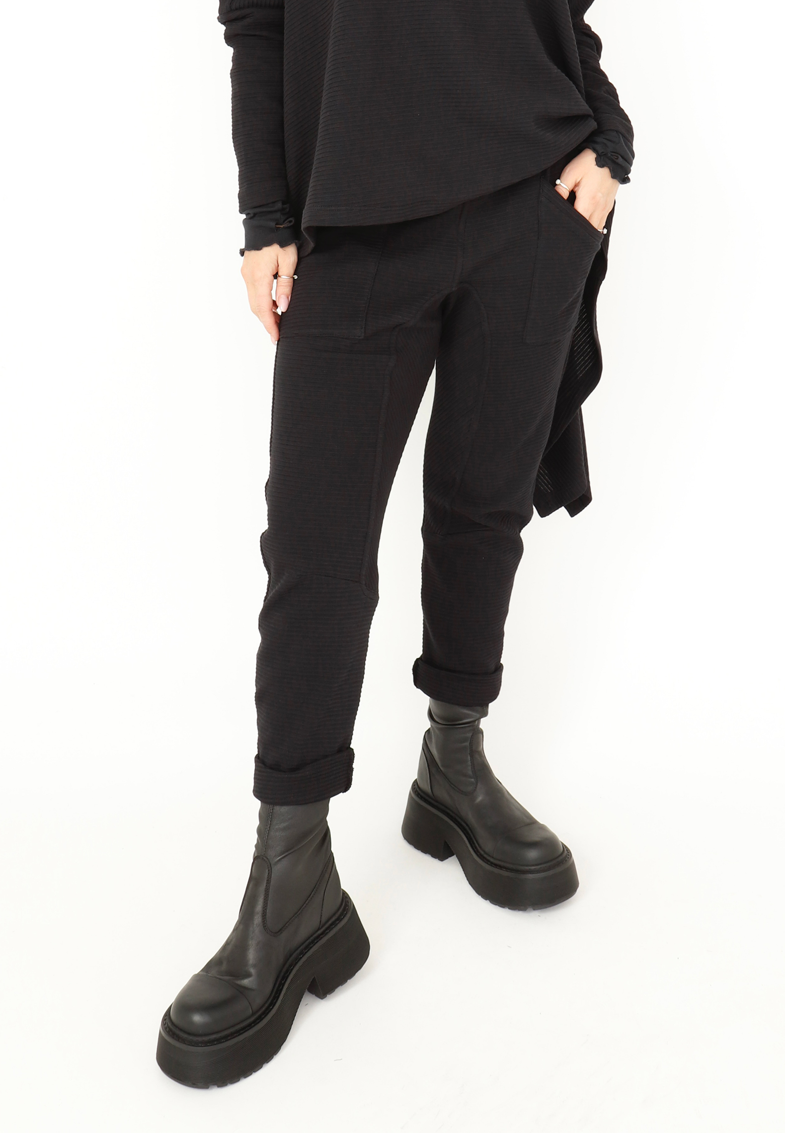 Ribbed pants with pockets, made in soft mix of organic cotton and polyester. Use with turned-up hems and style with a pair of stretch skin boots from Lofina or Sort Aarhus or sneakers for a more casual look.