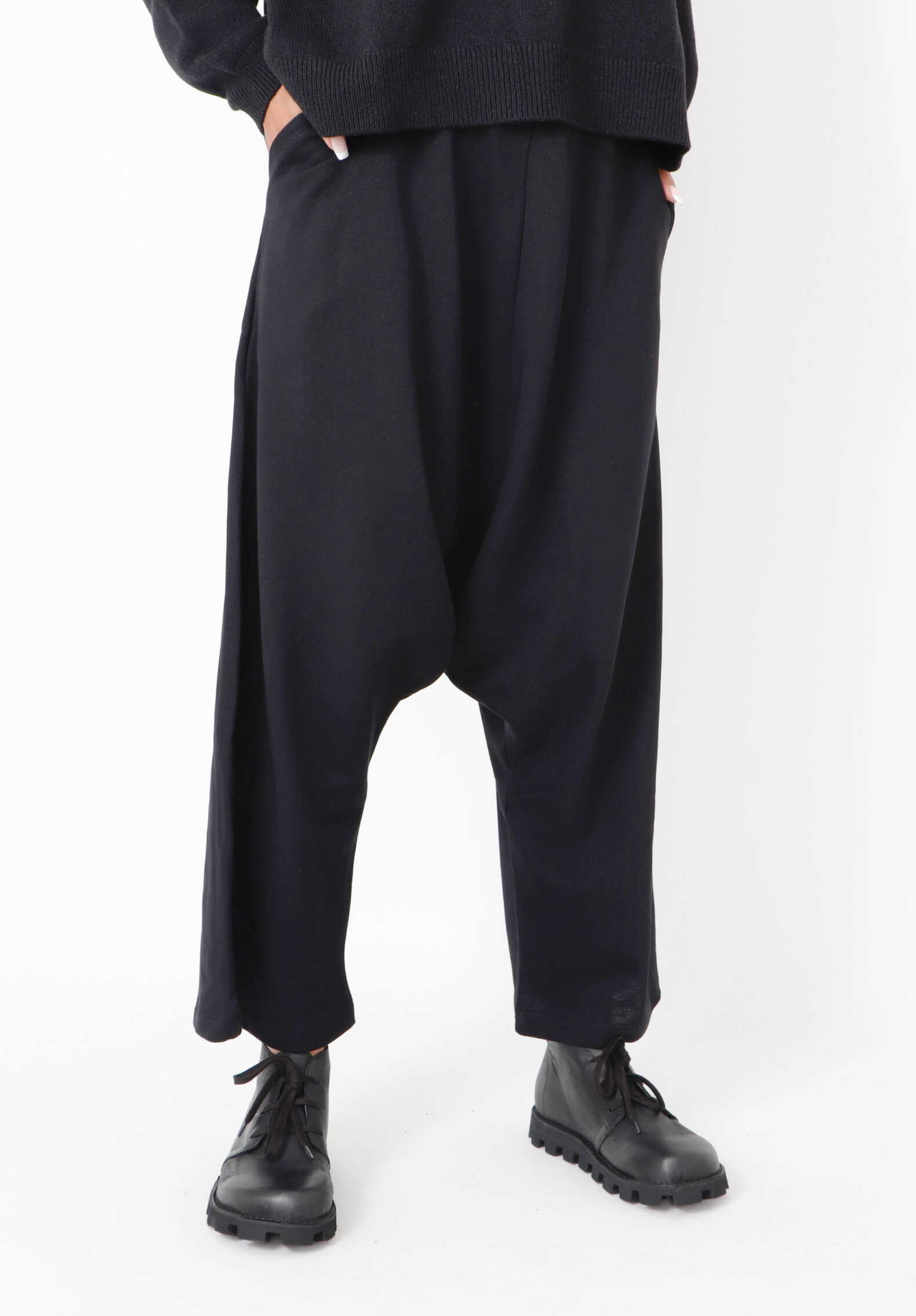 Baggy bukser med vide ben i 3/4 længde. Designet med justerbart bindebåd i taljen og sidelommer. Lavet i en eksklusiv blød sweatkvalitet som er behagelig at have på. Denne style er lidt stor i størrelsen.Alt Sort Aarhus tøj er produceret i Portugal af nøje udvalgte lokale materialer og kvaliteter med fokus på design og pasform.
