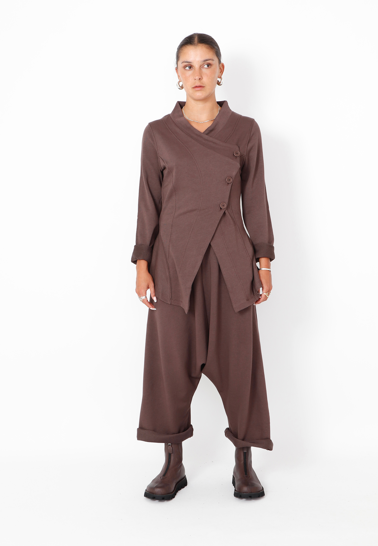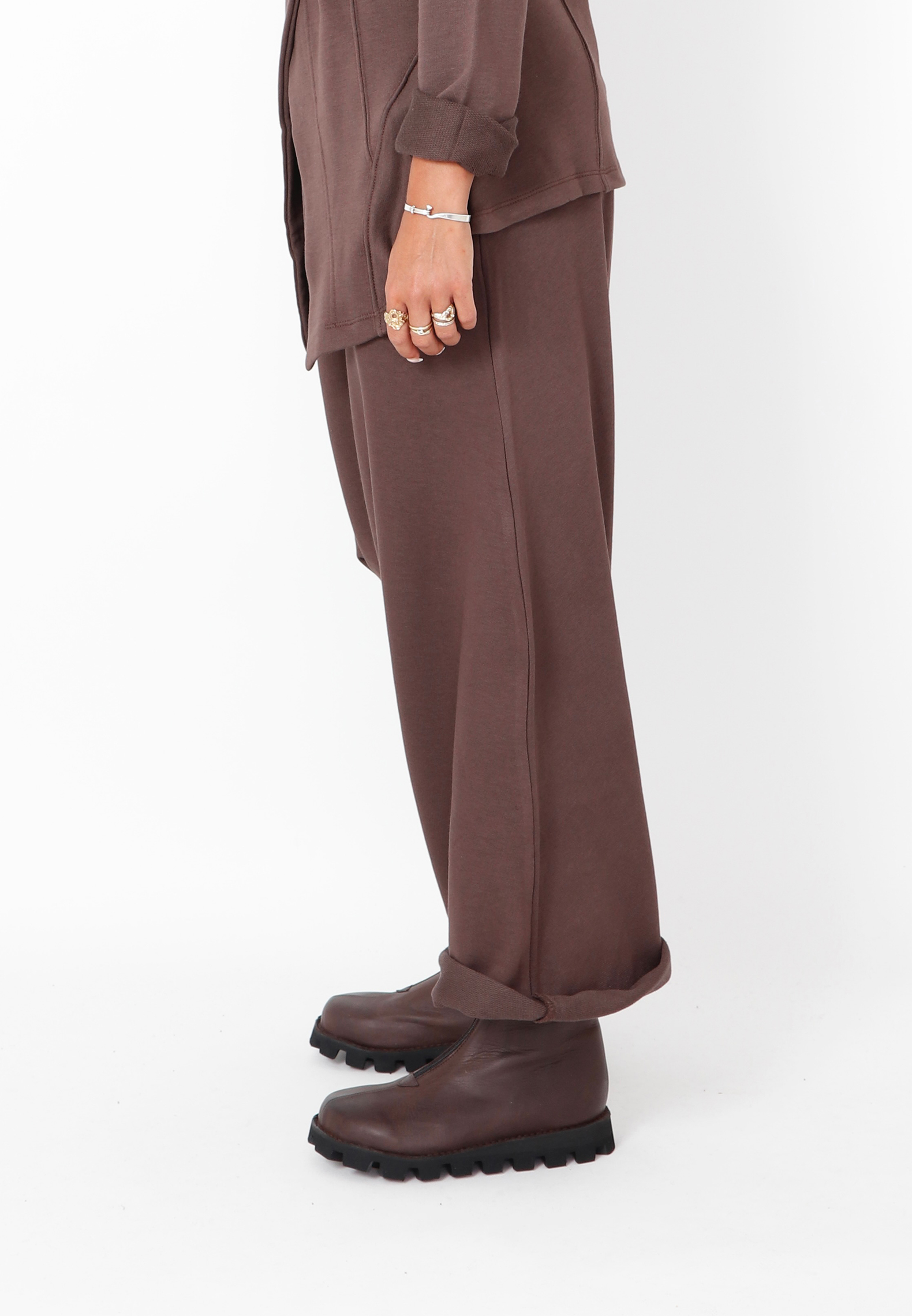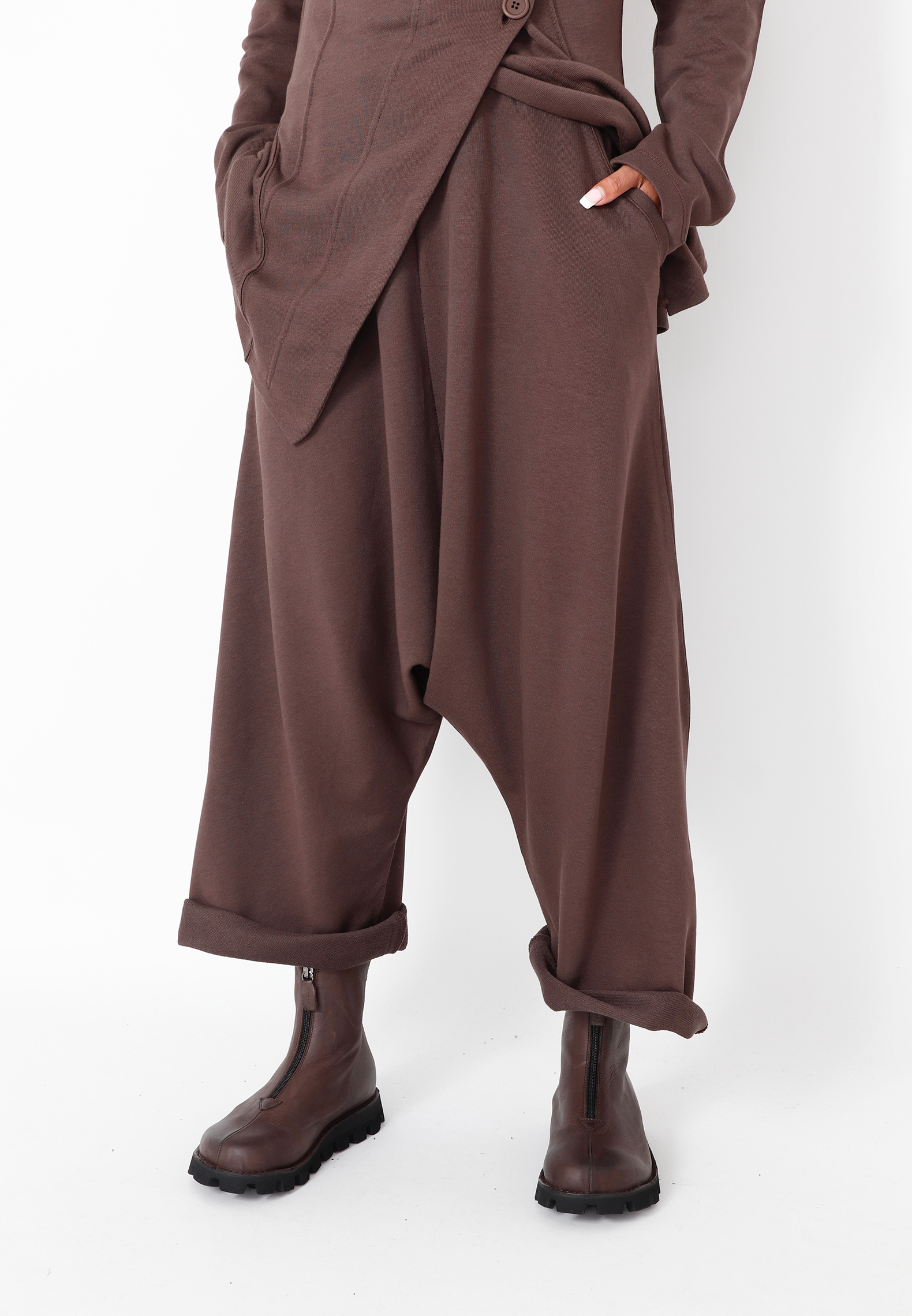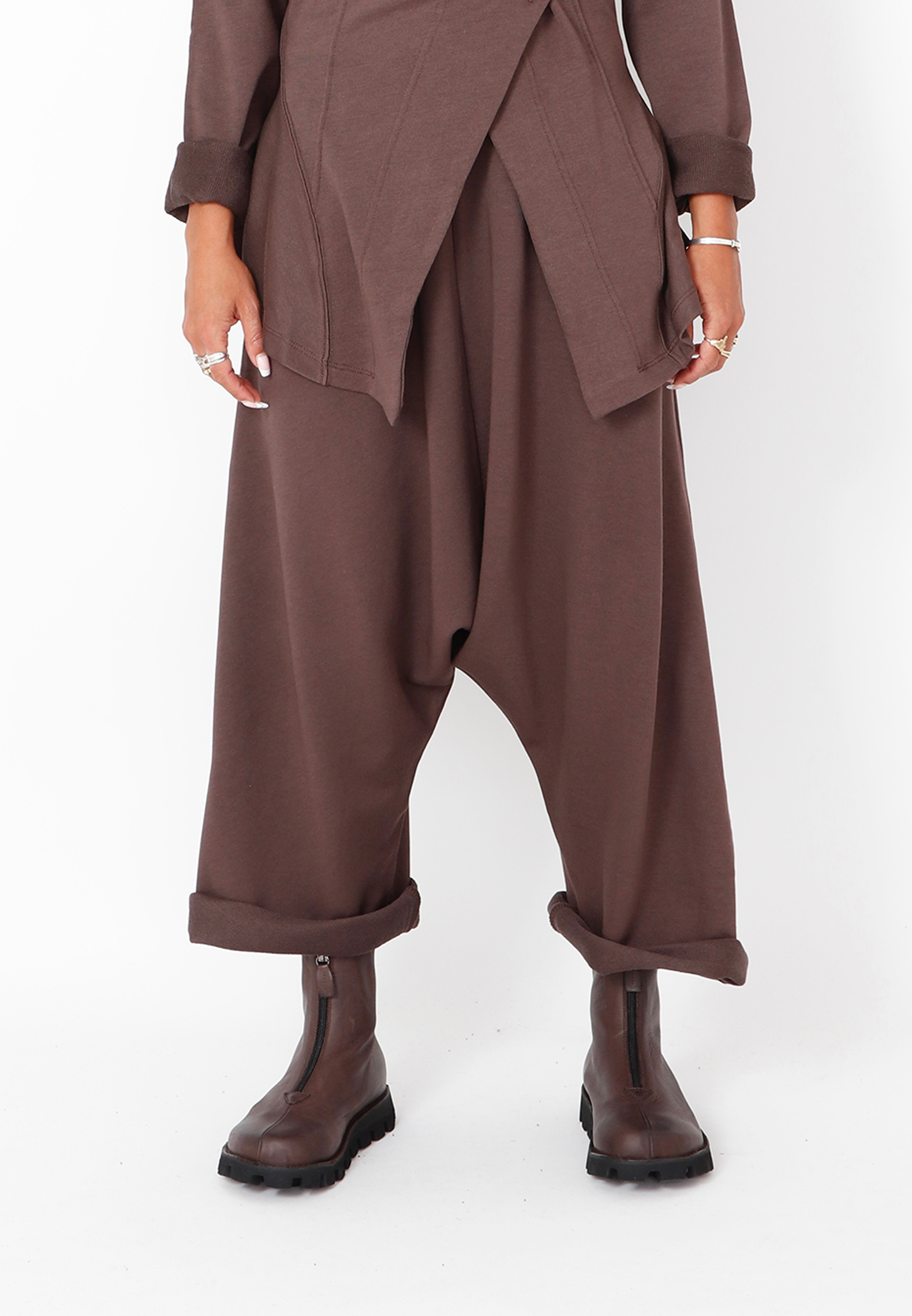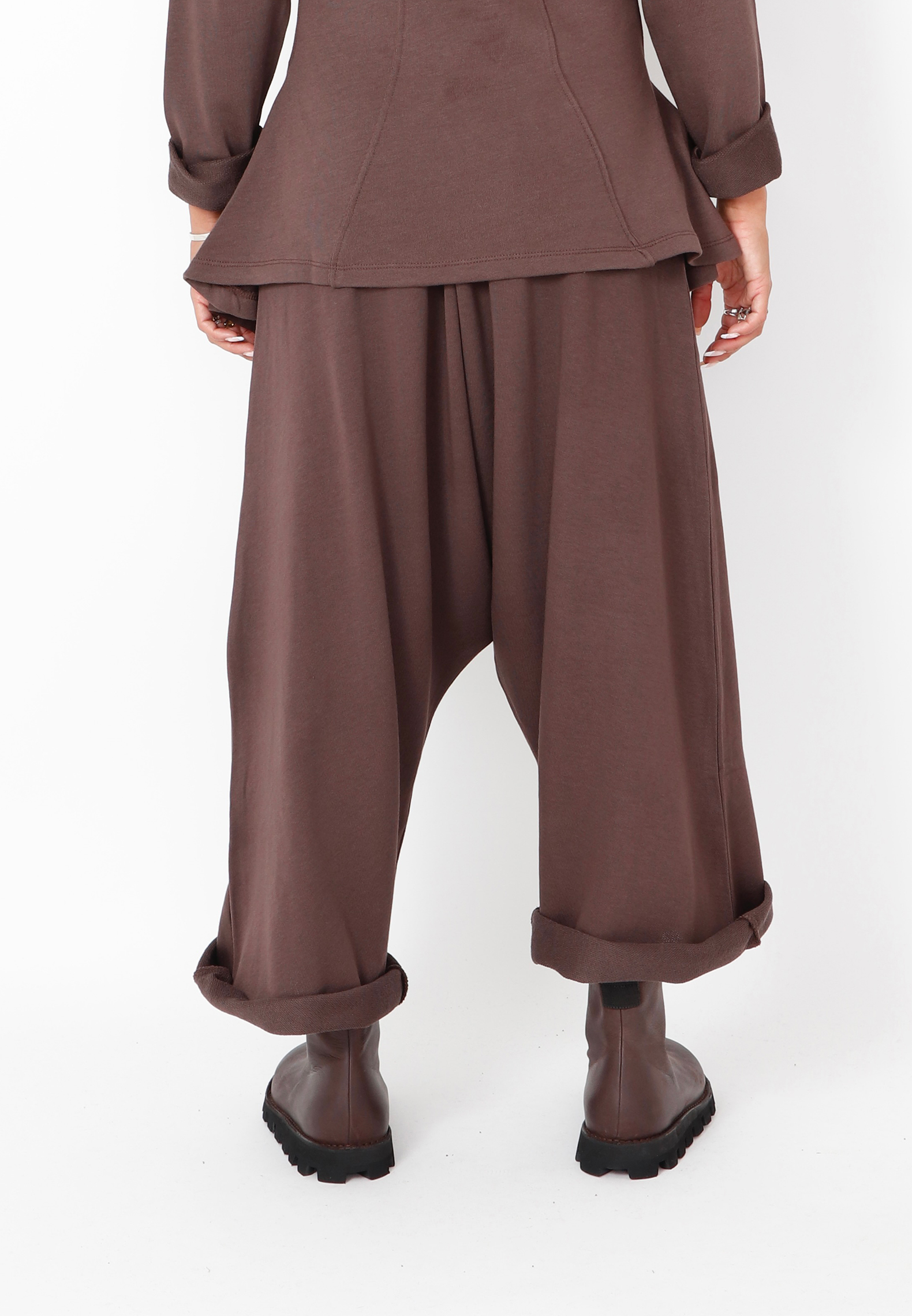Baggy bukser med vide ben i 3/4 længde. Designet med justerbart bindebåd i taljen og sidelommer. Lavet i en eksklusiv blød sweatkvalitet som er behagelig at have på. Denne style er lidt stor i størrelsen.Alt Sort Aarhus tøj er produceret i Portugal af nøje udvalgte lokale materialer og kvaliteter med fokus på design og pasform.