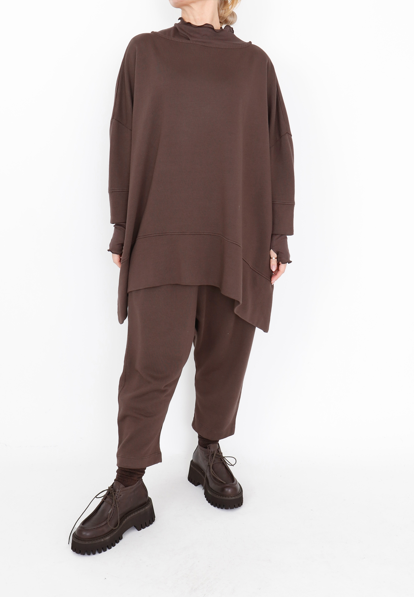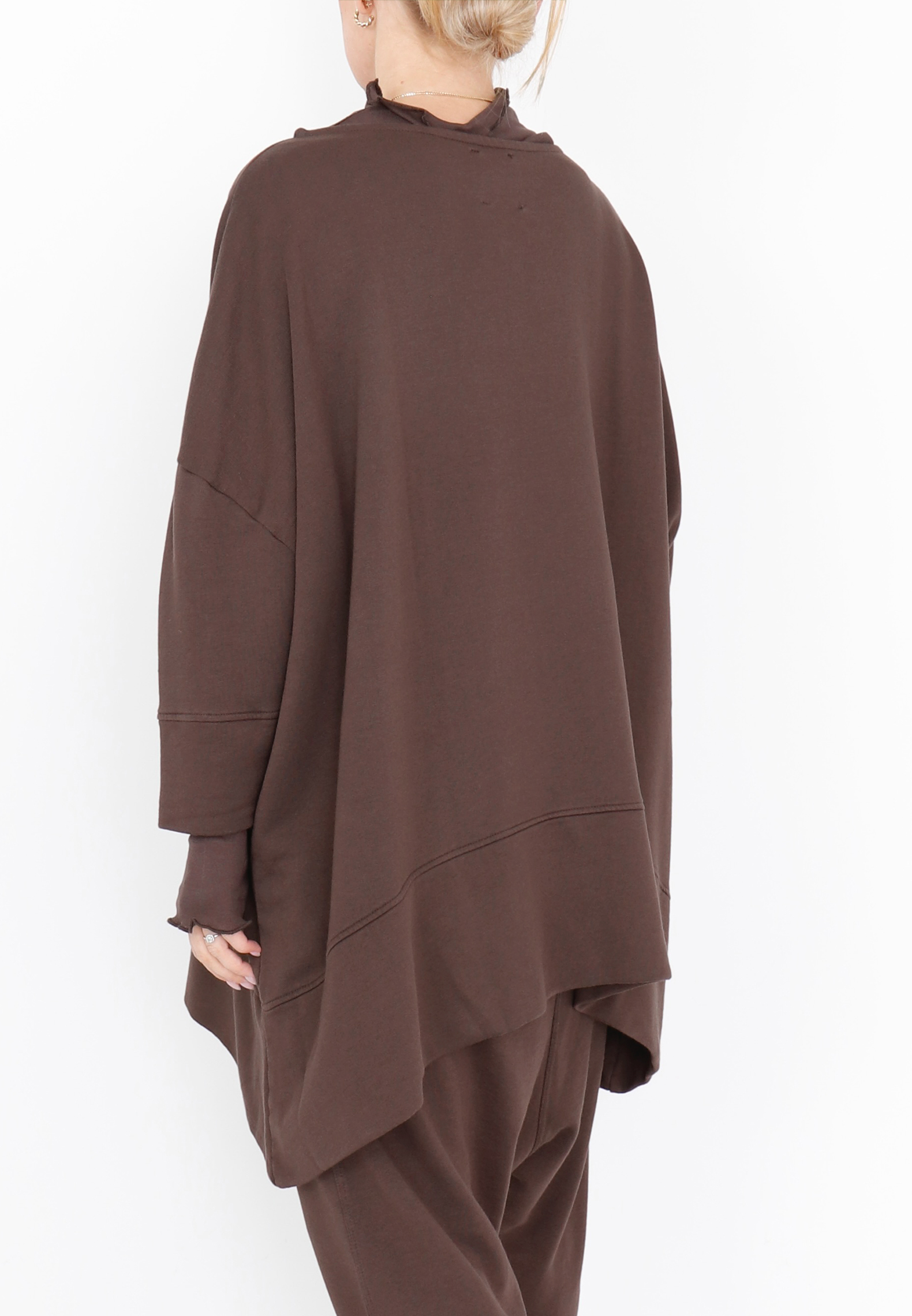 Oversized blouse with boat neckline, 3/4 sleeves, and detailed stitching. Made from a light and soft sweatshirt fabric that feels comfortable to wear. All Sort Aarhus clothing is produced in Portugal using carefully selected local materials and qualities, with a strong focus on design and fit.