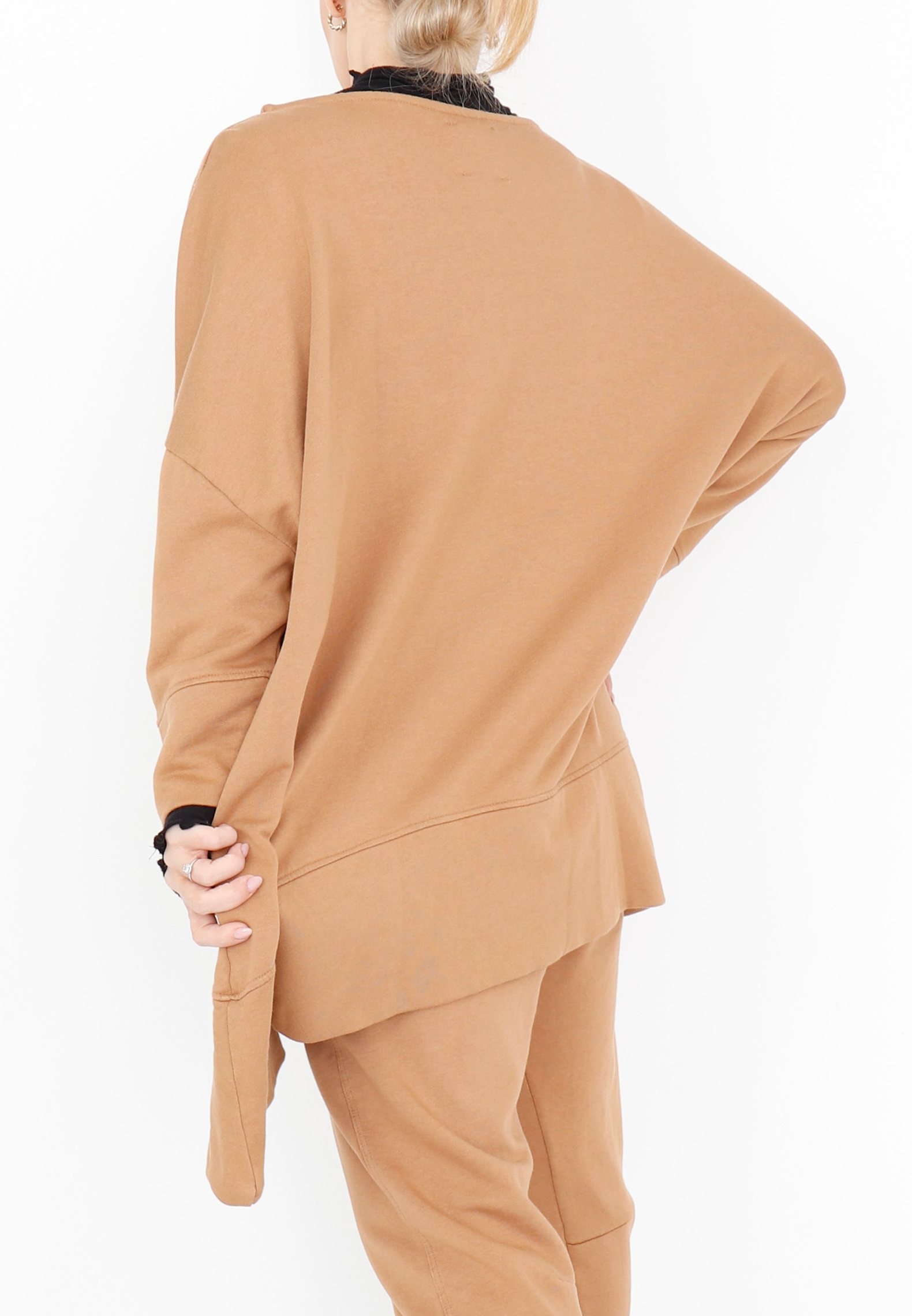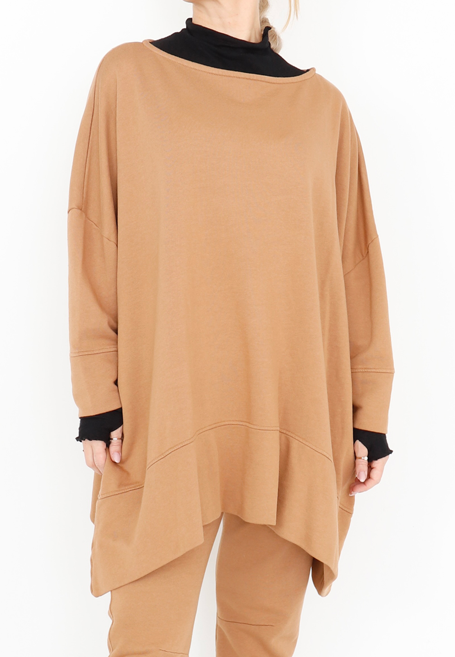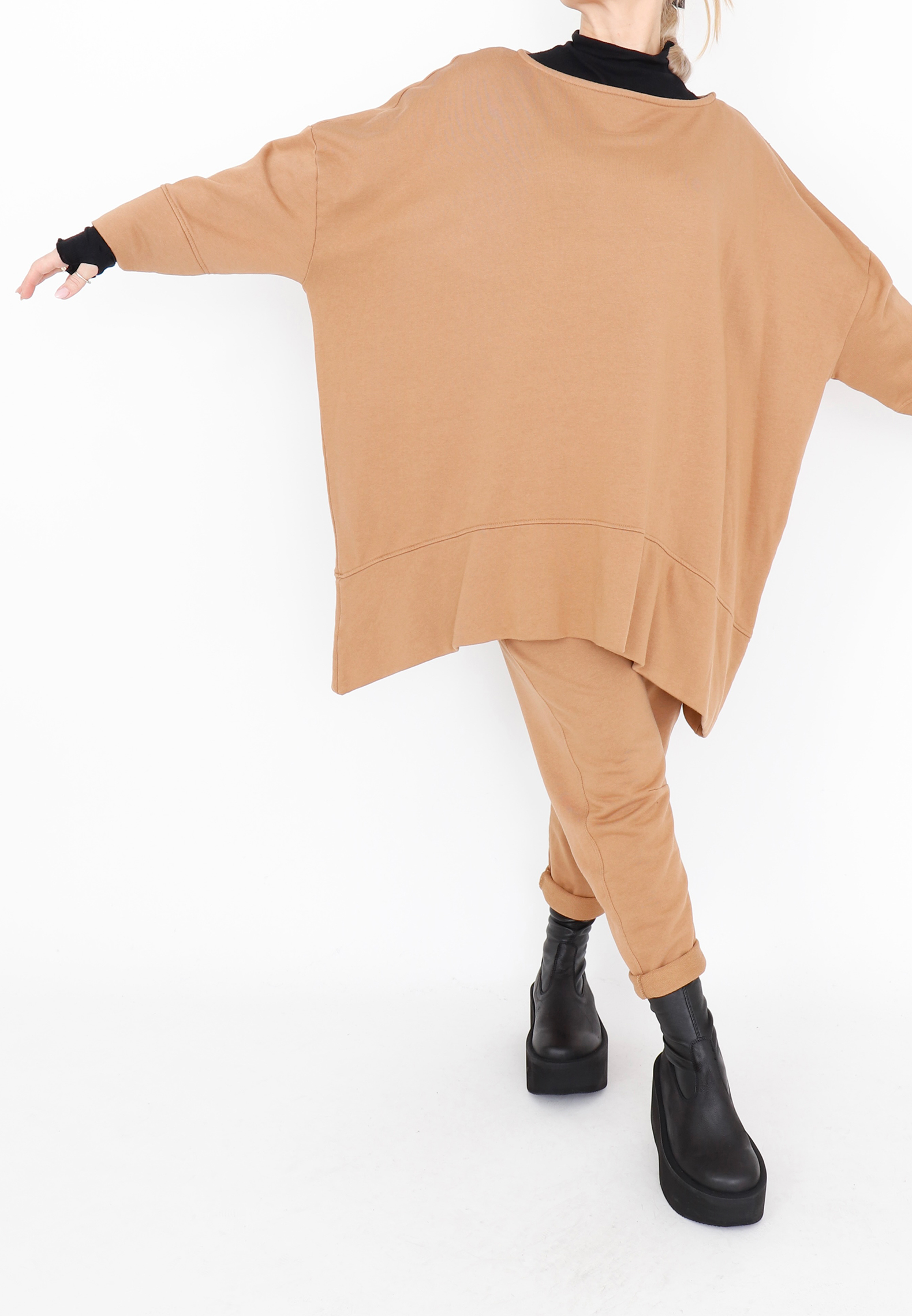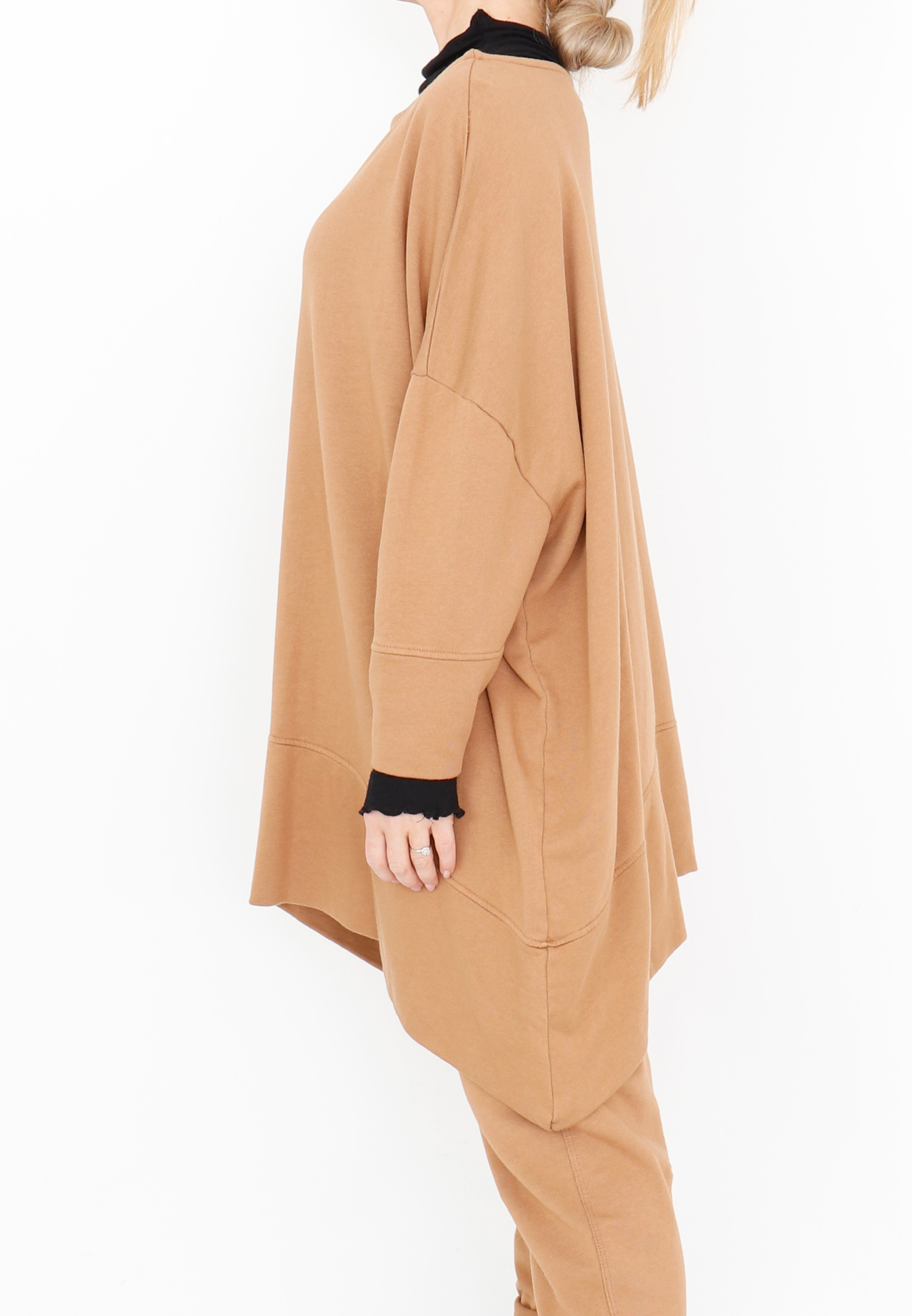 Oversized blouse with boat neckline, 3/4 sleeves, and detailed stitching. Made from a light and soft sweatshirt fabric that feels comfortable to wear. All Sort Aarhus clothing is produced in Portugal using carefully selected local materials and qualities, with a strong focus on design and fit.