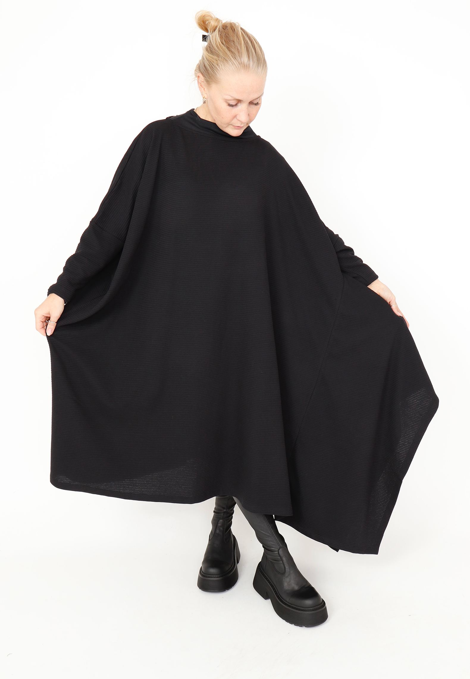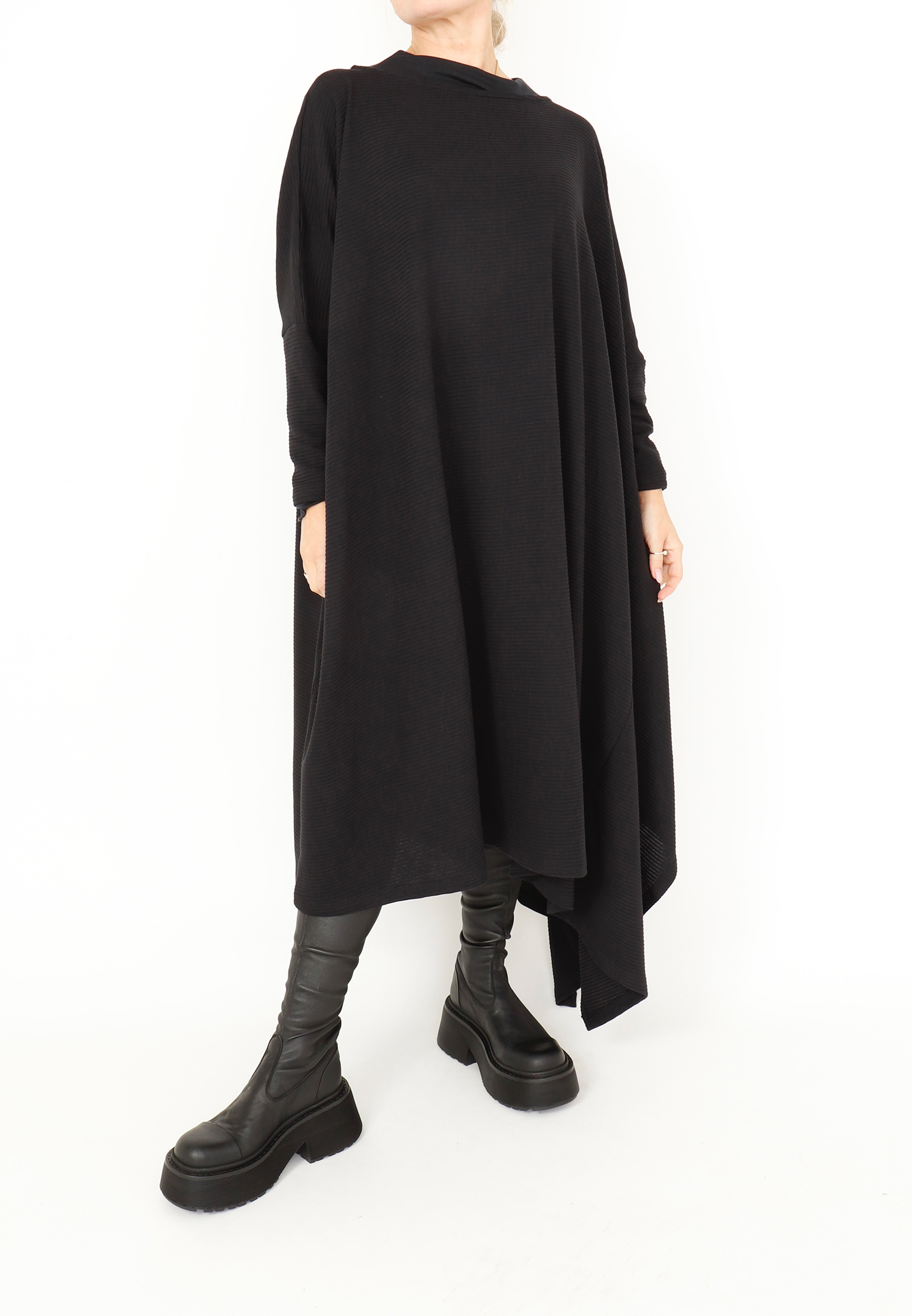 Oversize kjole med asymmetrisk snit i økologisk bomuld. Style eksempelvis med et par lange stretch støvler fra Sort Aarhus eller Lofina.Materiale