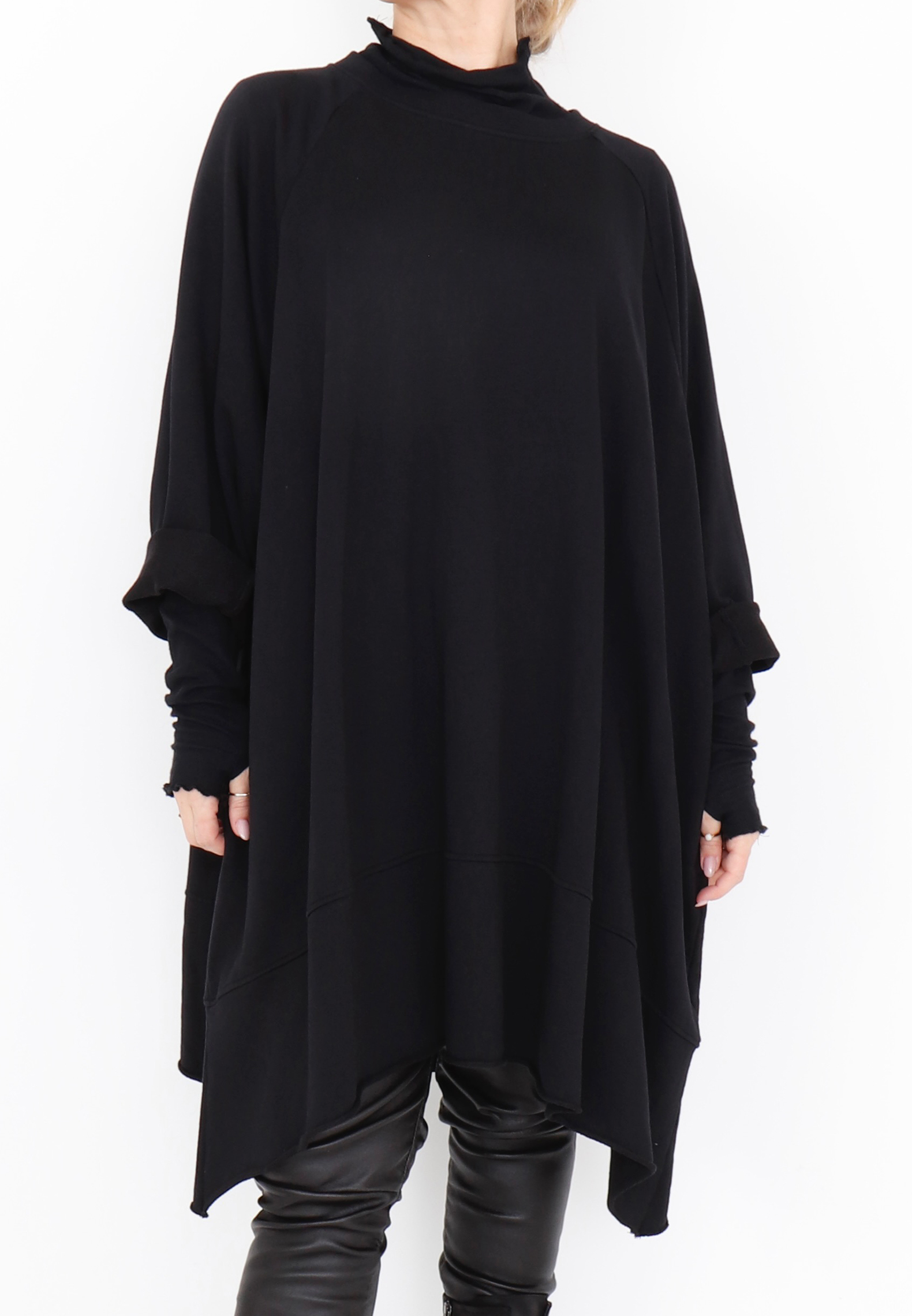 Oversized tunic in exclusive sweat fabric, designed with raglan sleeves, detailed stitching, and a rolled hem for a modern and casual look. All Sort Aarhus clothing is produced in Portugal using carefully selected local materials and qualities, with a strong focus on design and fit.