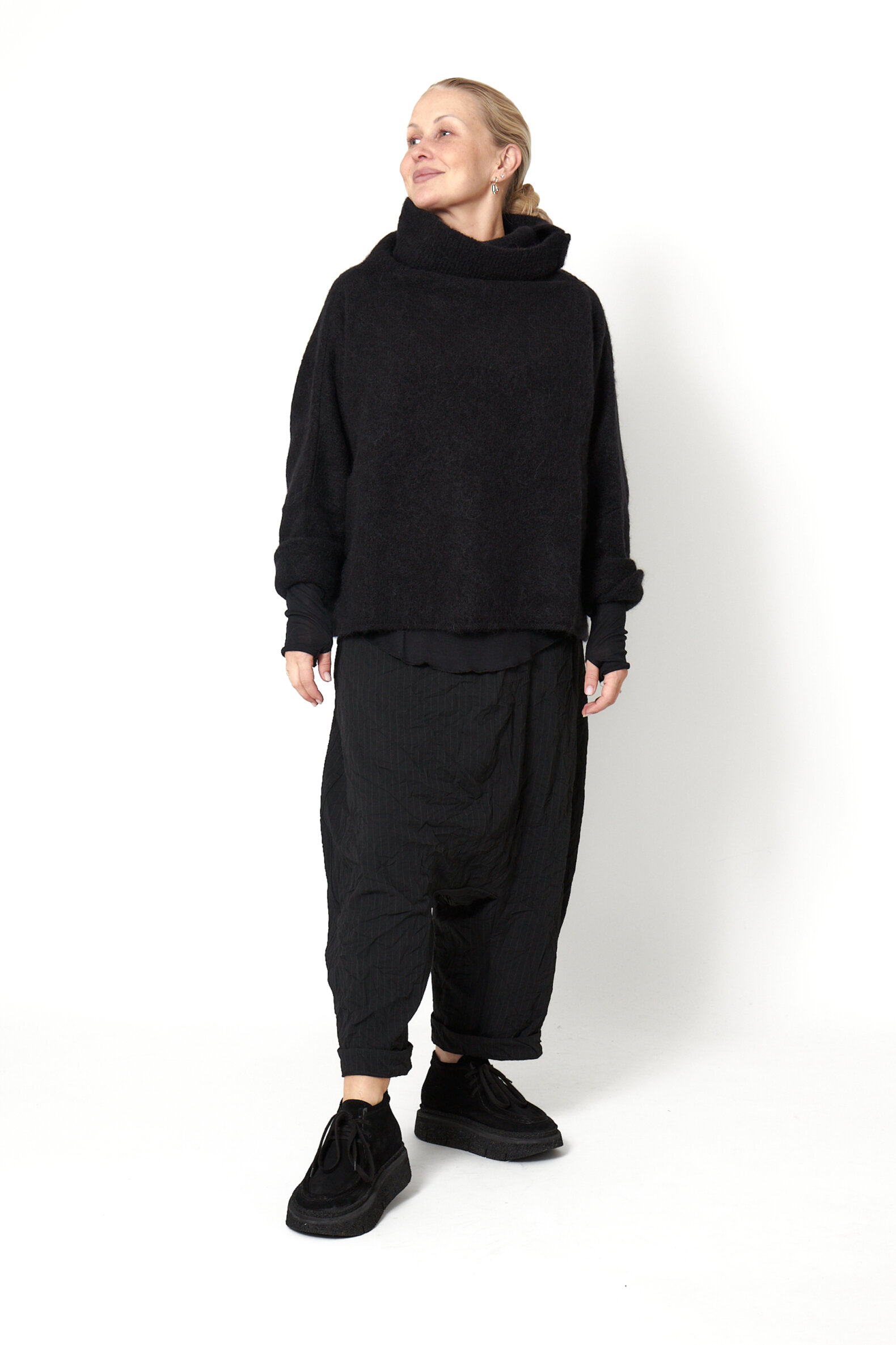 Strikket bluse med rullekrave i en lækker uldblanding med 34% Alpacauld, som er ekstar holdbart og varmt, samt finere i kvaliteten end almindeligt uld fra får. Blusen er produceret i Portugal af nøje udvalgte lokale materialer og kvaliteter.Materiale