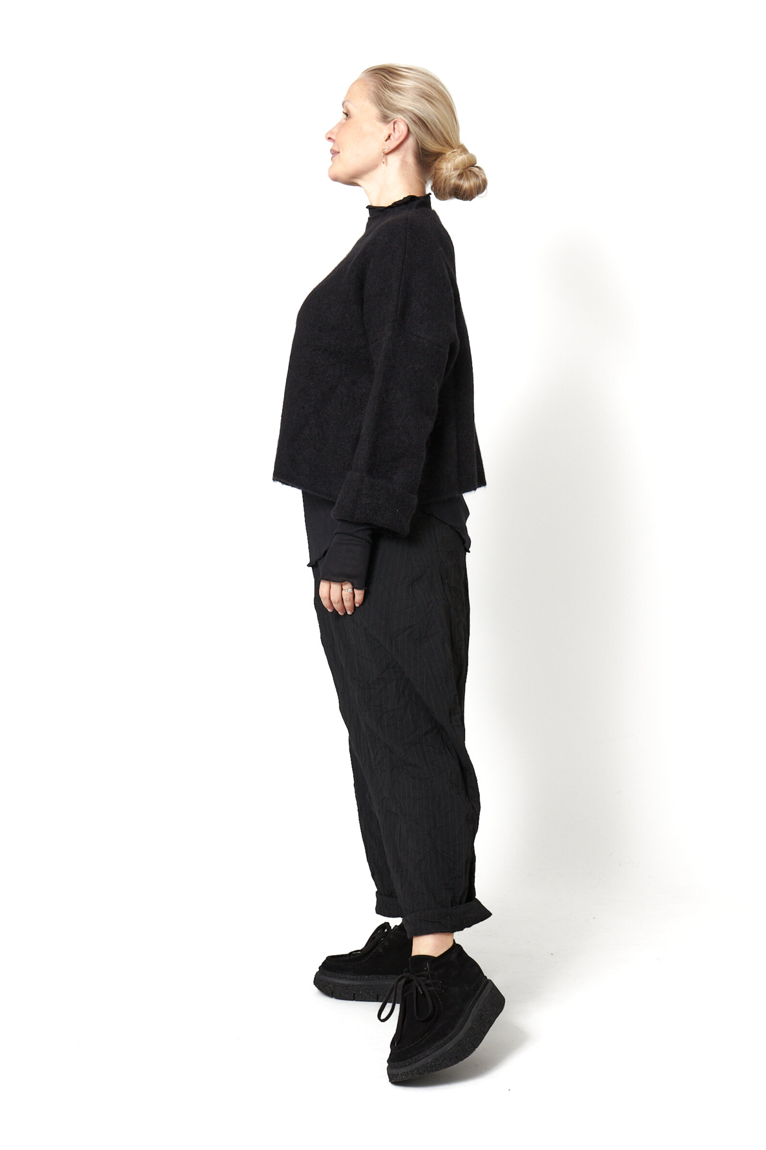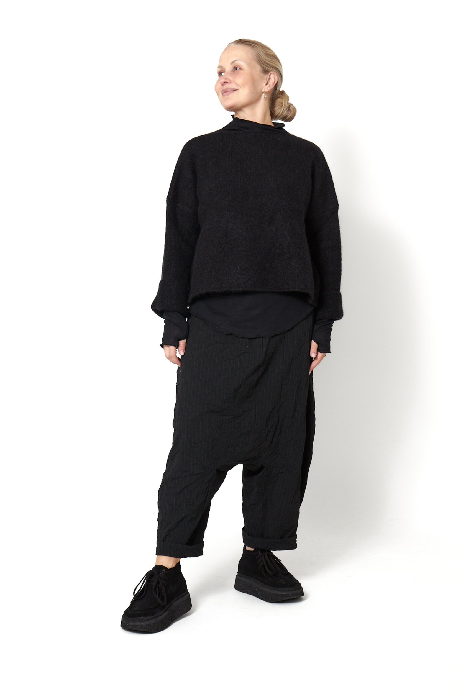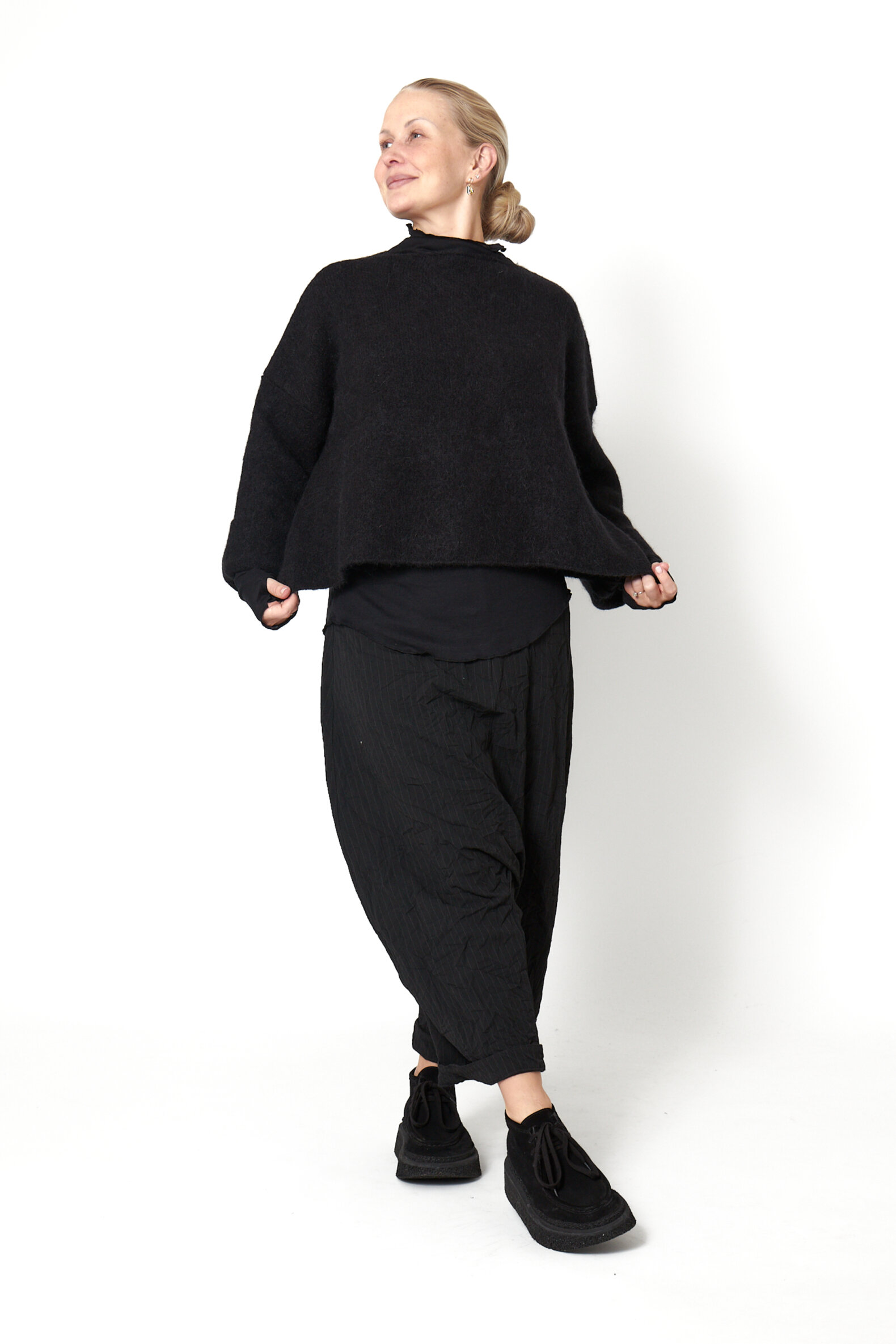 Cropped, loose fit bluse i en lækker uldblanding med 34% Alpacauld, som er holdbart, varmt og finere i kvaliteten end almindeligt uld fra får.