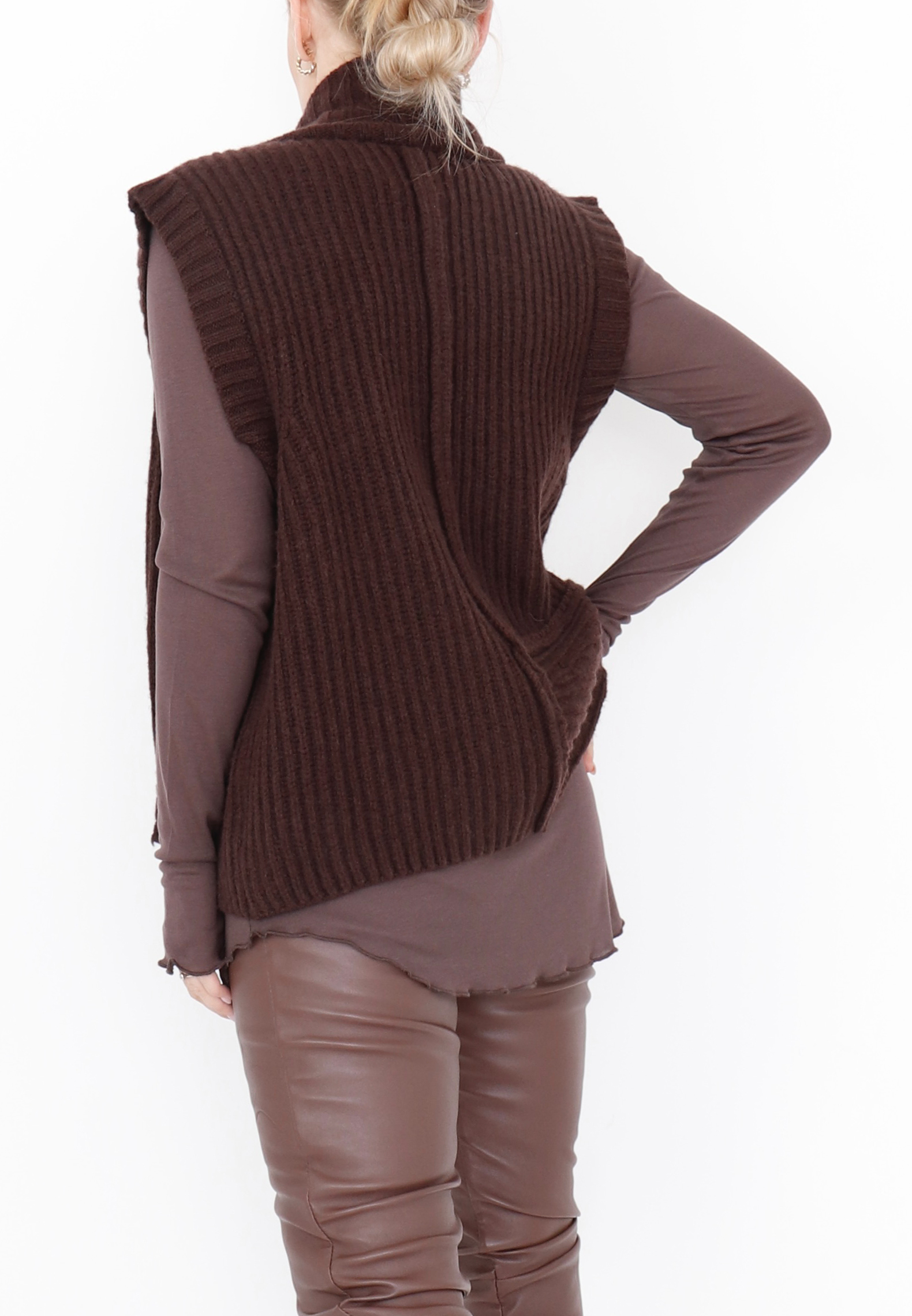 En luksuriøs og tidløs strikvest, lavet i 100% blød merinould. Vesten er designet i en smuk ribstruktur, som giver et raffineret udtryk og det assymetriske snit giver vesten kant. Perfekt til lag-på-lag og ideel til at løfte ethvert outfit til et eksklusivt niveau. Merinouldens naturlige temperaturregulerende egenskaber gør den anvendelig hele året rundt – varm om vinteren og let om sommeren.Style eksempelvis med en af vores basis-bluser under: SA-2160 eller SA-2161.