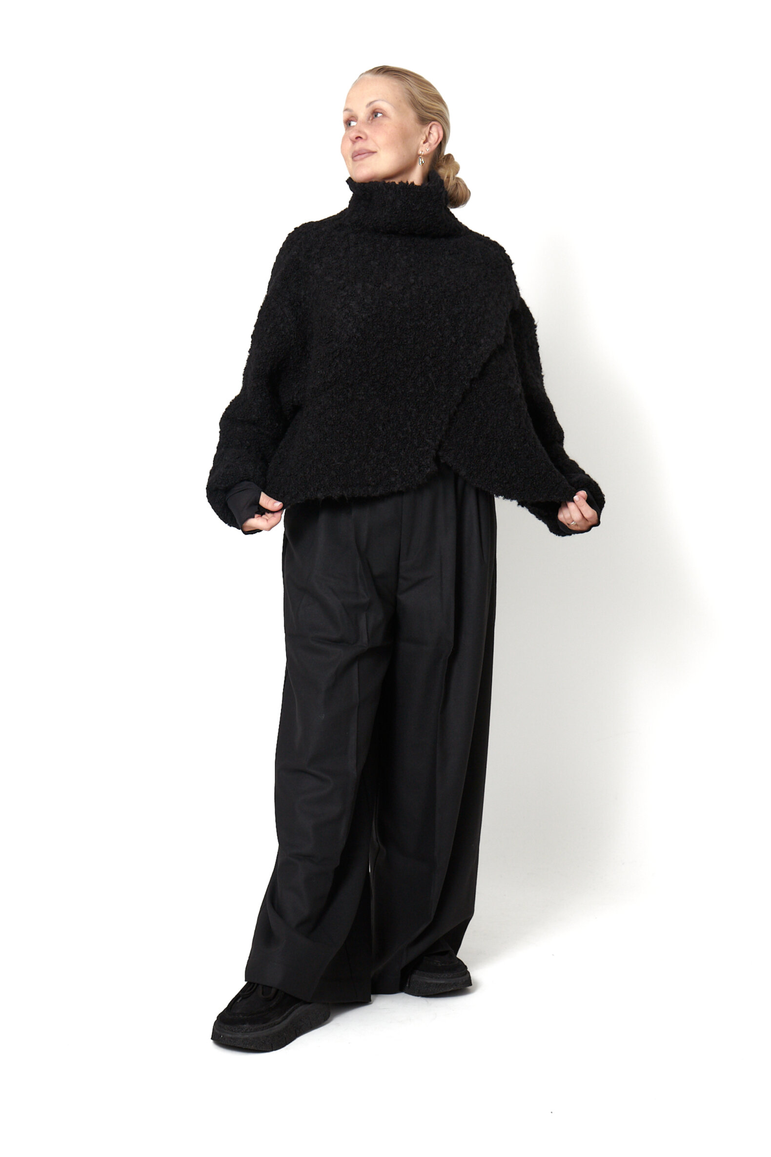 Bluse i bouclé - som giver en ekstra lækker struktur - lavet i en lækker Alpaca-uldblanding med fine detaljer og en krave. Alpacauld er mere holdbart og varmt end almindelig uld fra får, og finere i kvaliteten.
