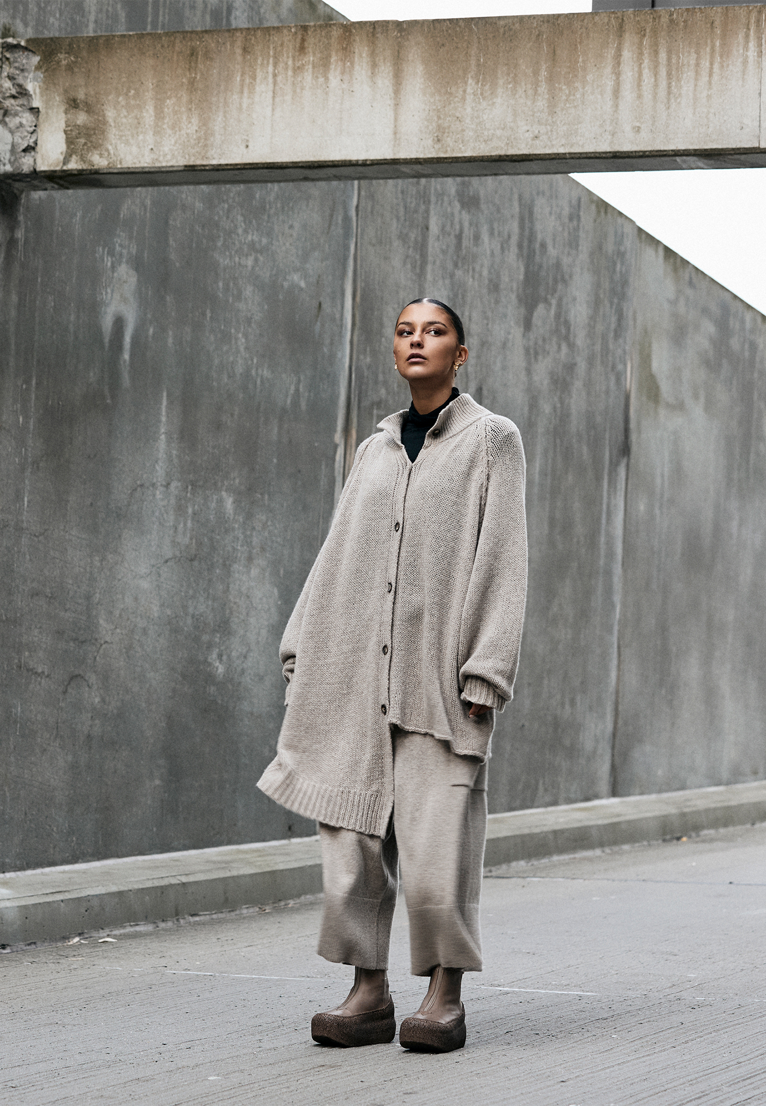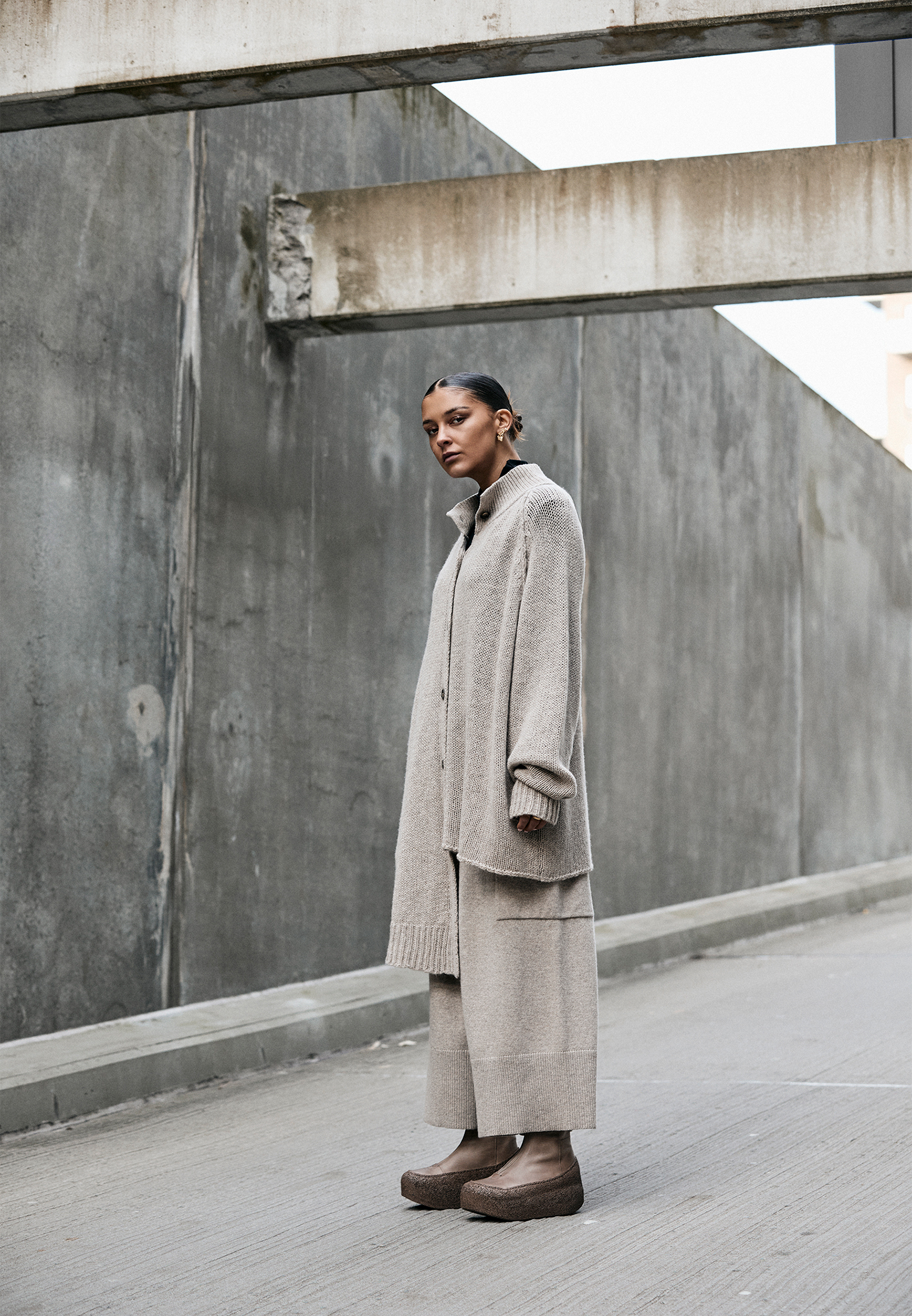 Style it with matching knitted pants or a pair of chic Sort Aarhus leather pants for a sophisticated look.