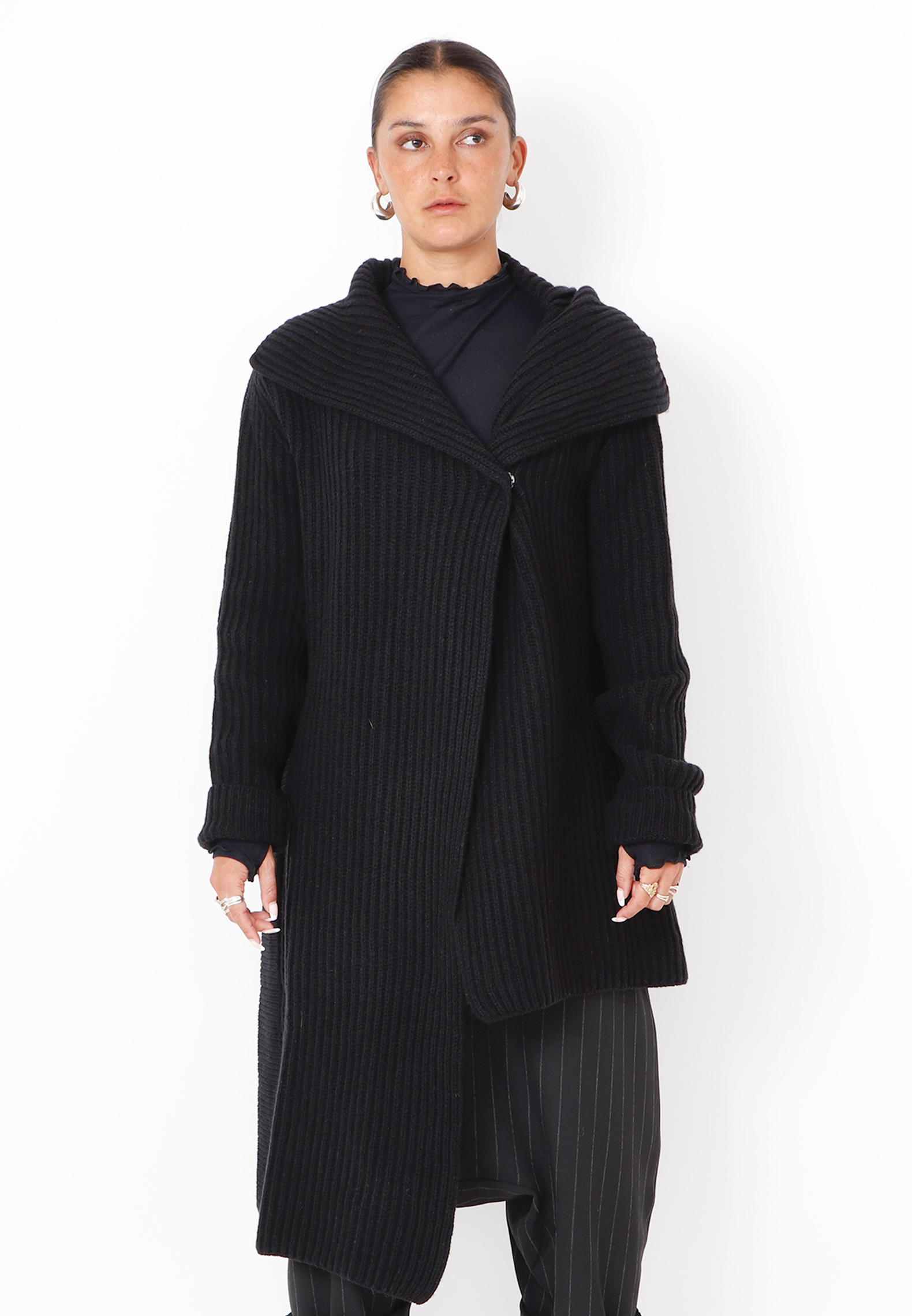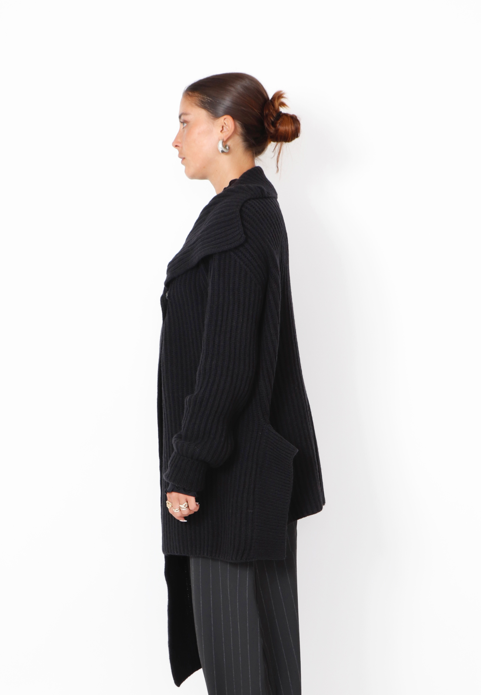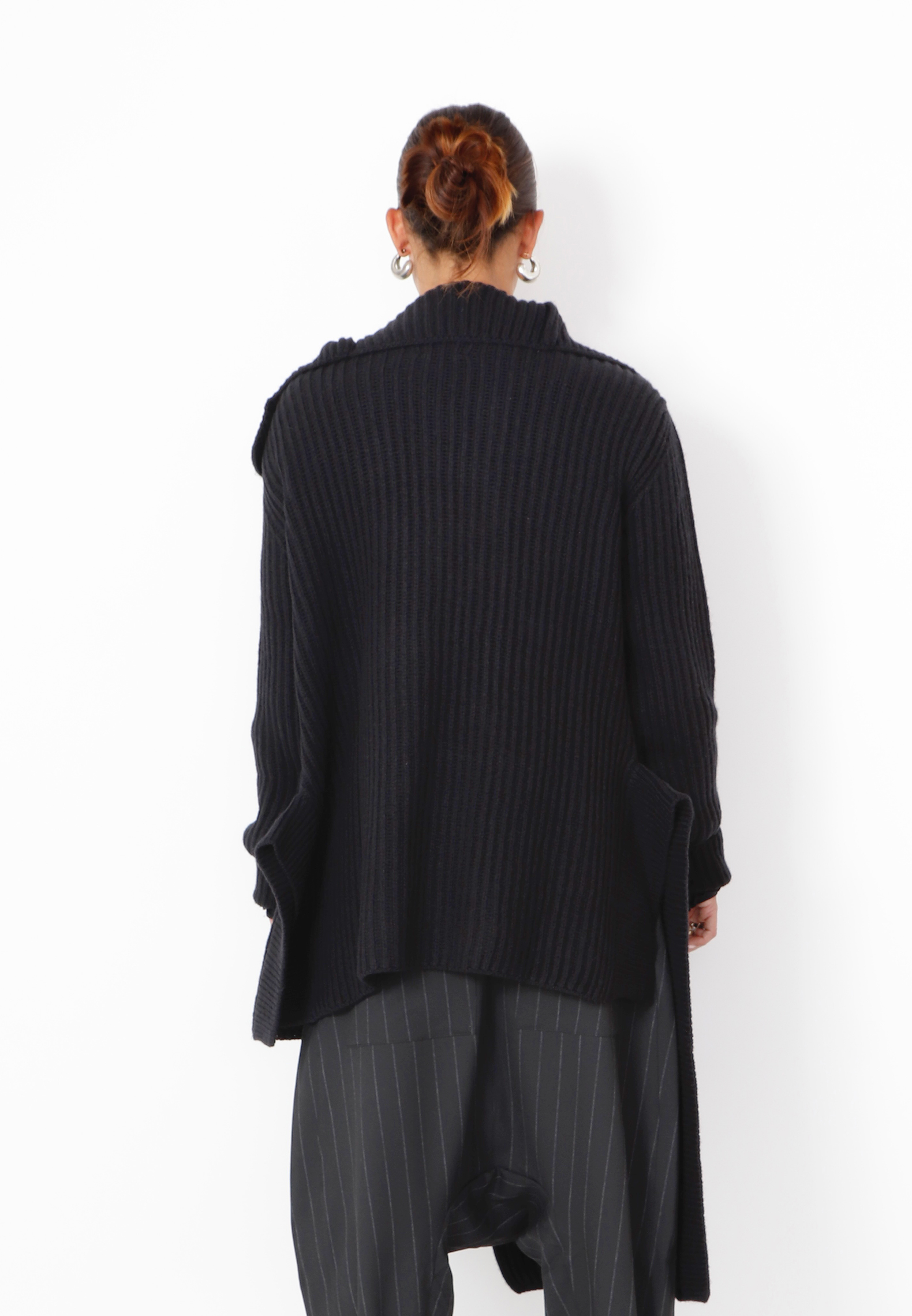 Knitted oversize cardigan in soft merino wool. Here shown in a gorgeous beige color. The cardigan is assymetrical. A comfy style and a must have for your Autumn and Winter wardrobe.