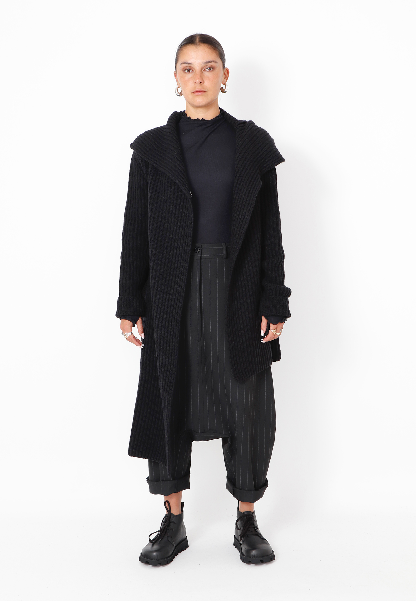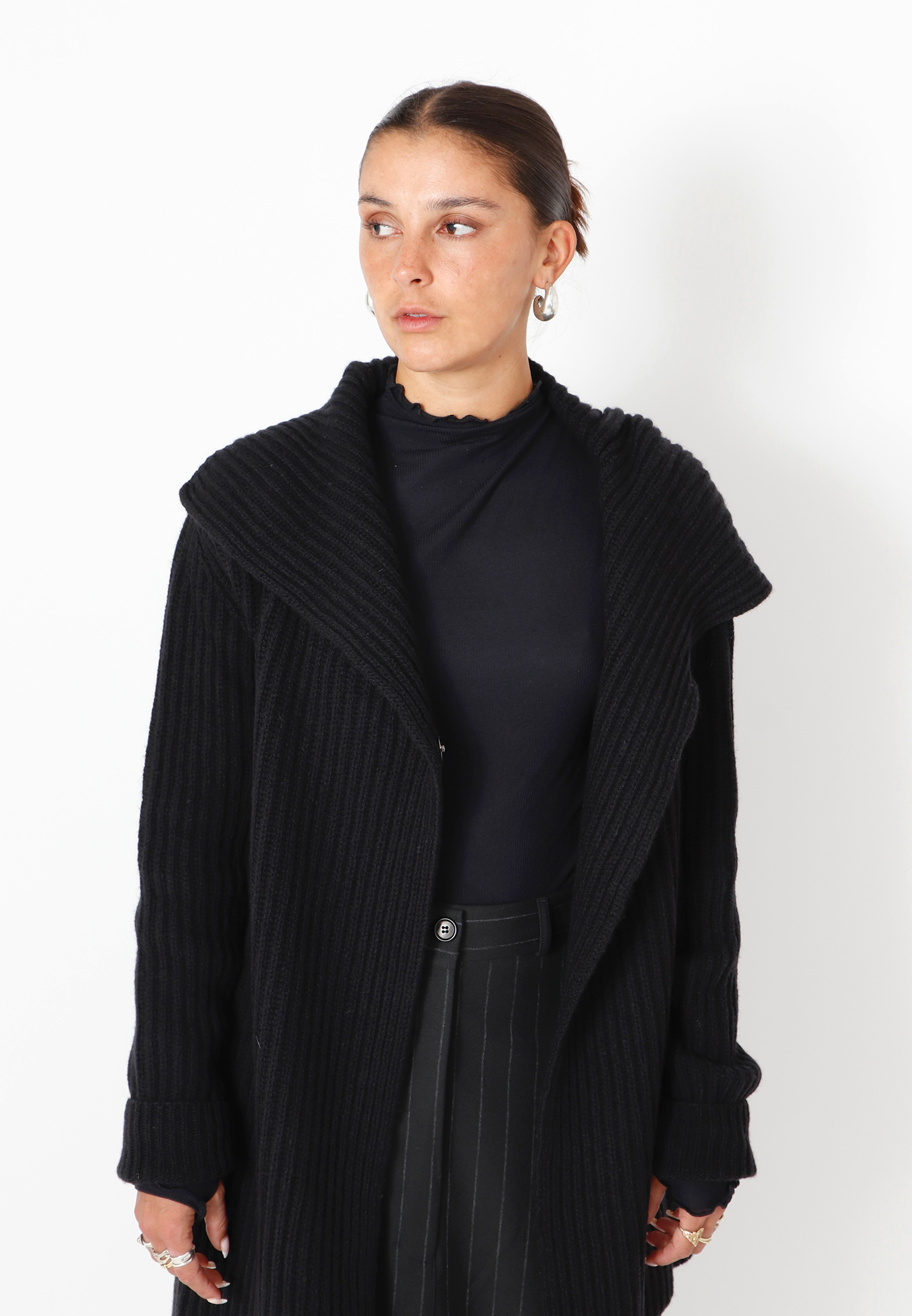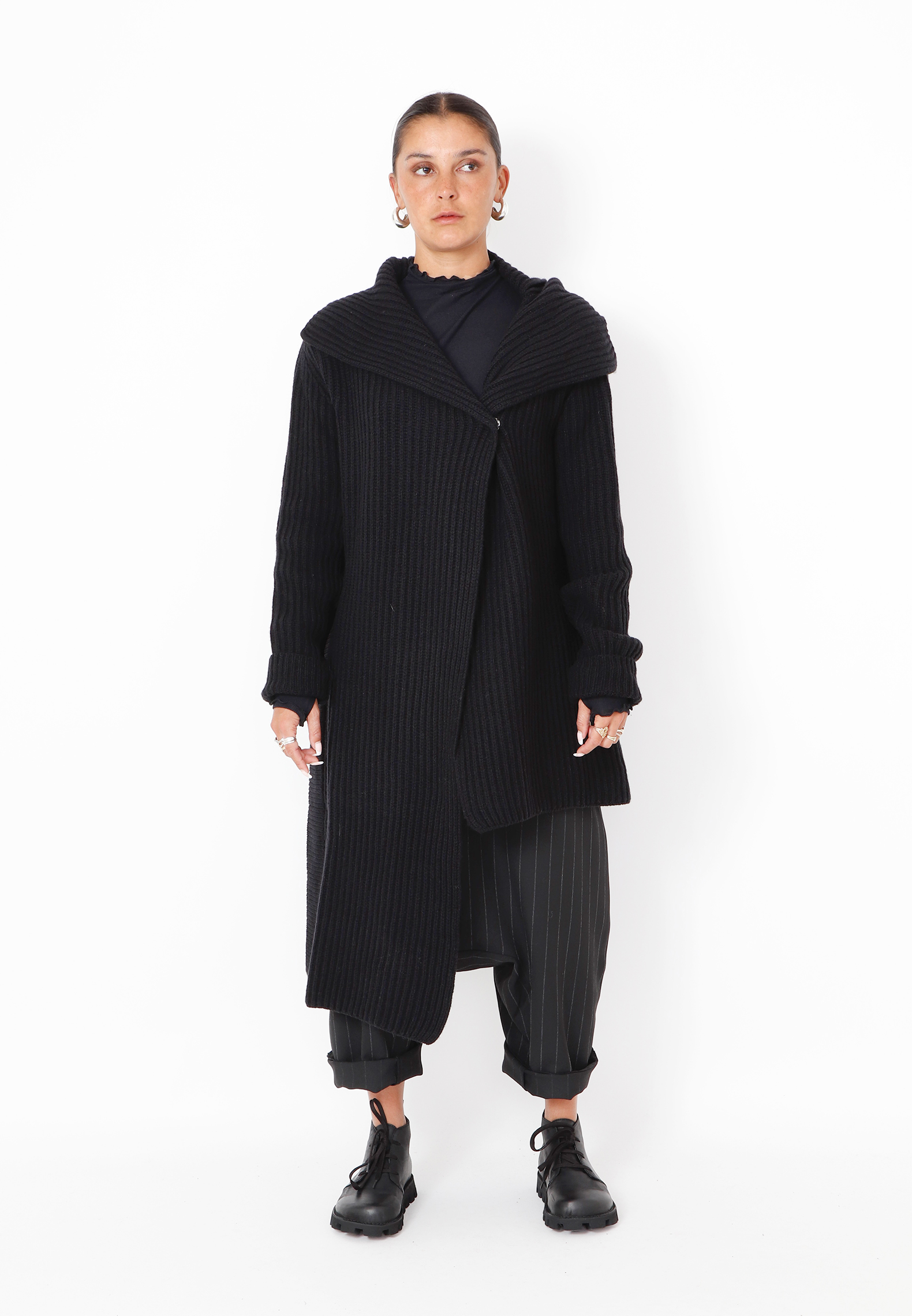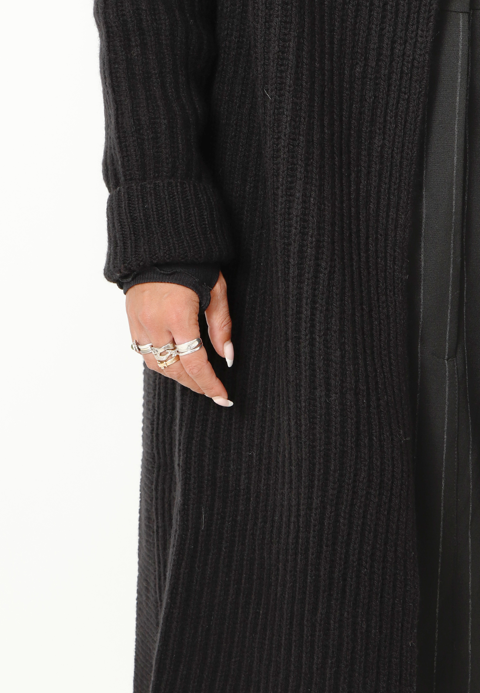 Knitted oversize cardigan in soft merino wool. Here shown in a gorgeous beige color. The cardigan is assymetrical. A comfy style and a must have for your Autumn and Winter wardrobe.