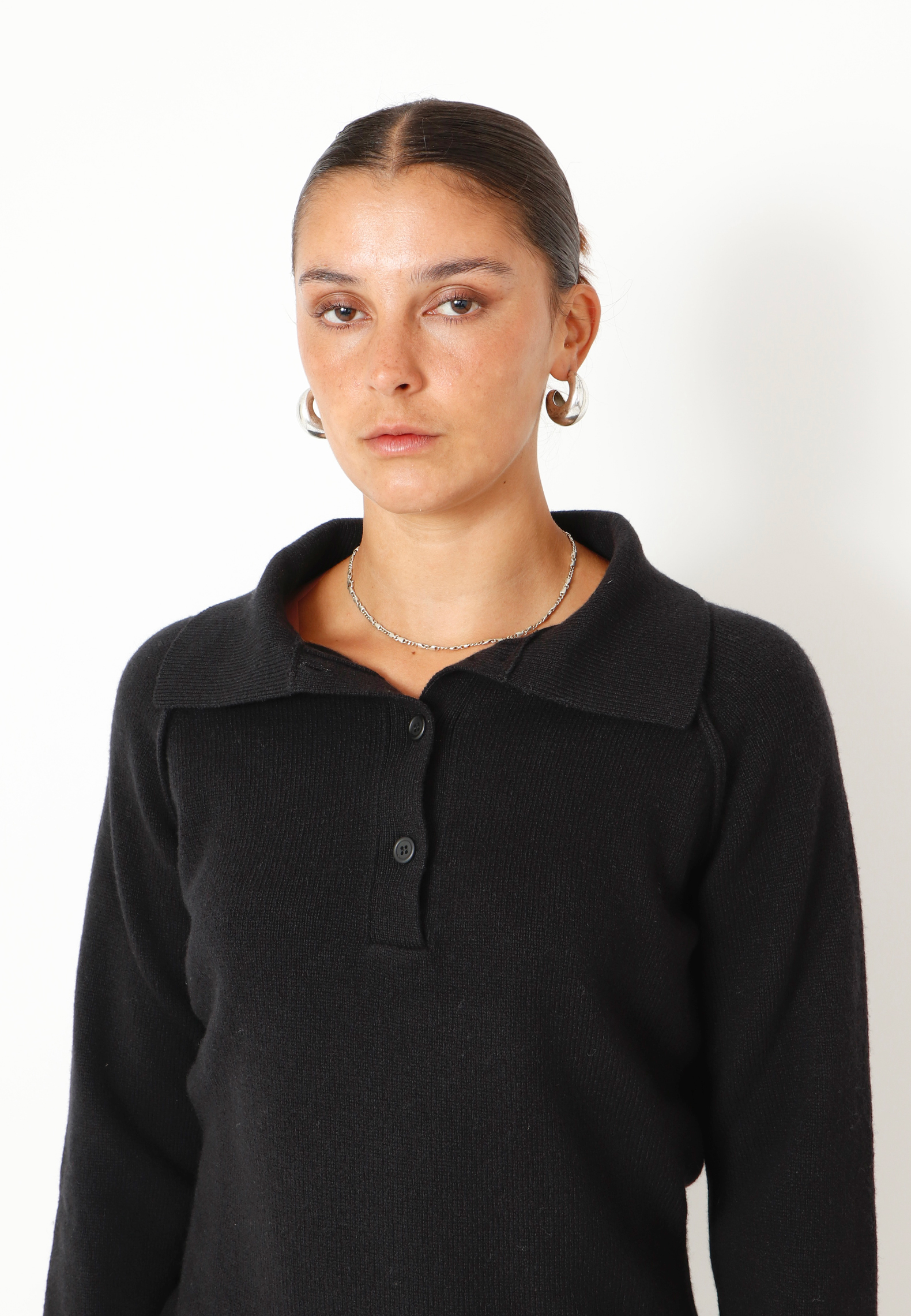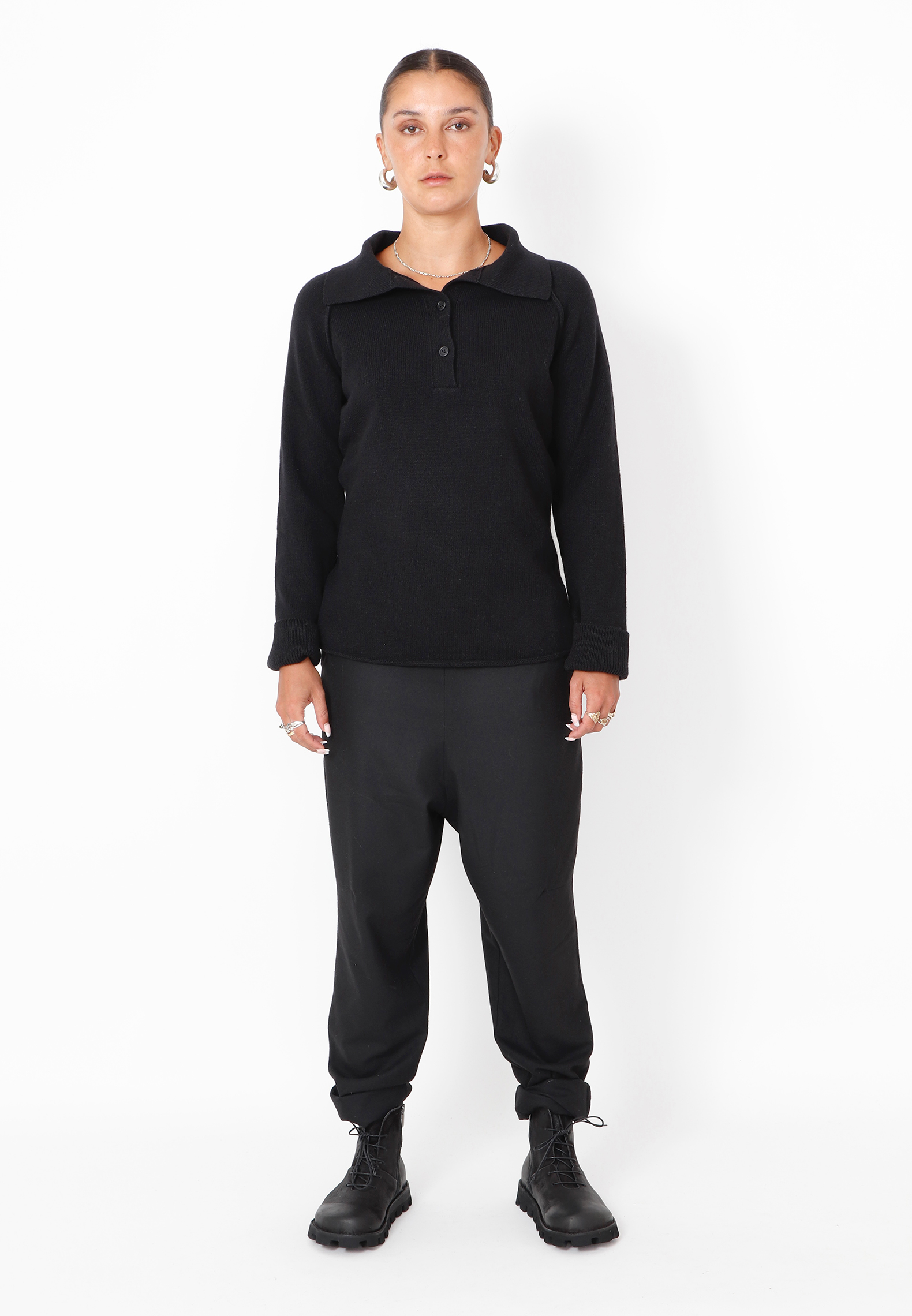 Knitted polo in soft high quality merino wool with buttons and a nice collar. A very usuable knit and a must have in your autumn and winter wardrobe. Here in a gorgeous beige color. Style with matching knitted pants for a completed look.