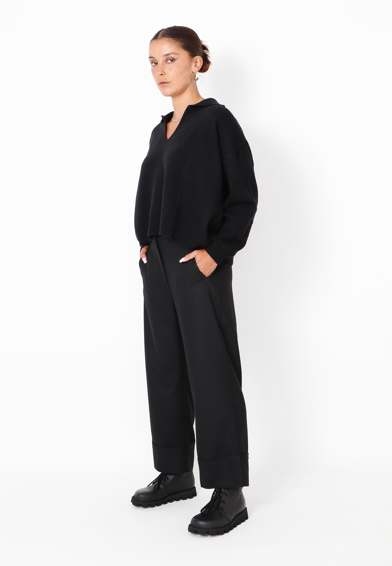 3/4 pants in a soft and luxurious wool blend with turned-up hems. Designed with a button closure and side pockets, this style offers exceptional comfort and ease of wear — already a clear favorite among the Sort Aarhus team. Pair them with one of our many cozy knit sweaters from Sort Aarhus for an effortlessly refined look.