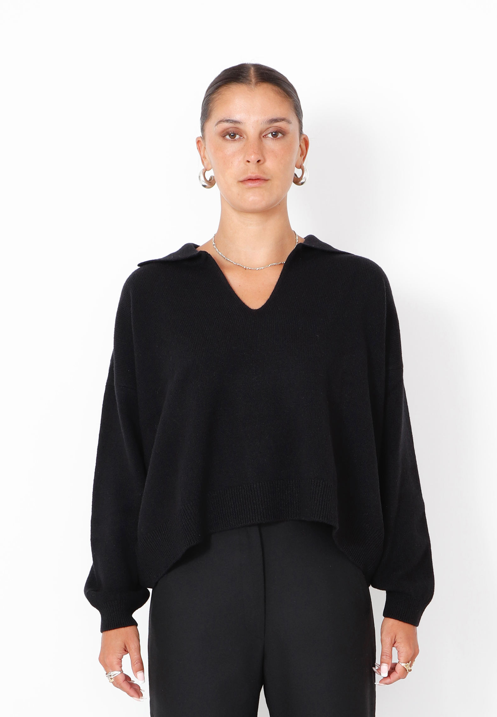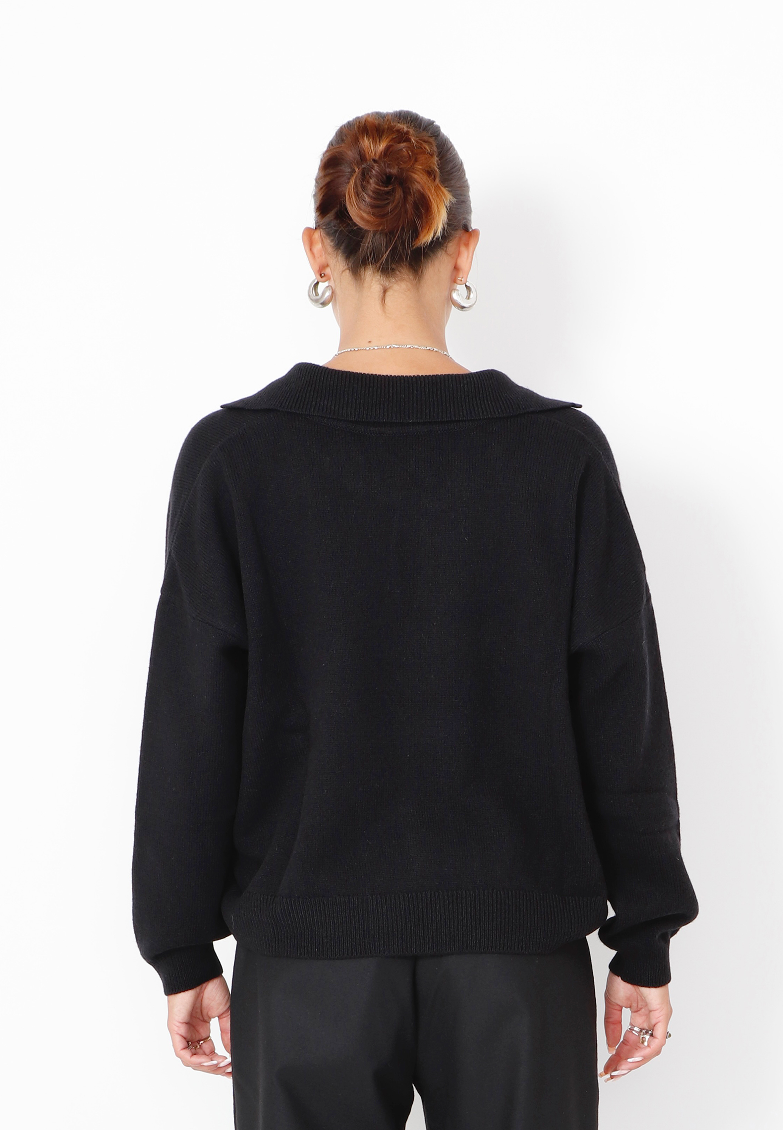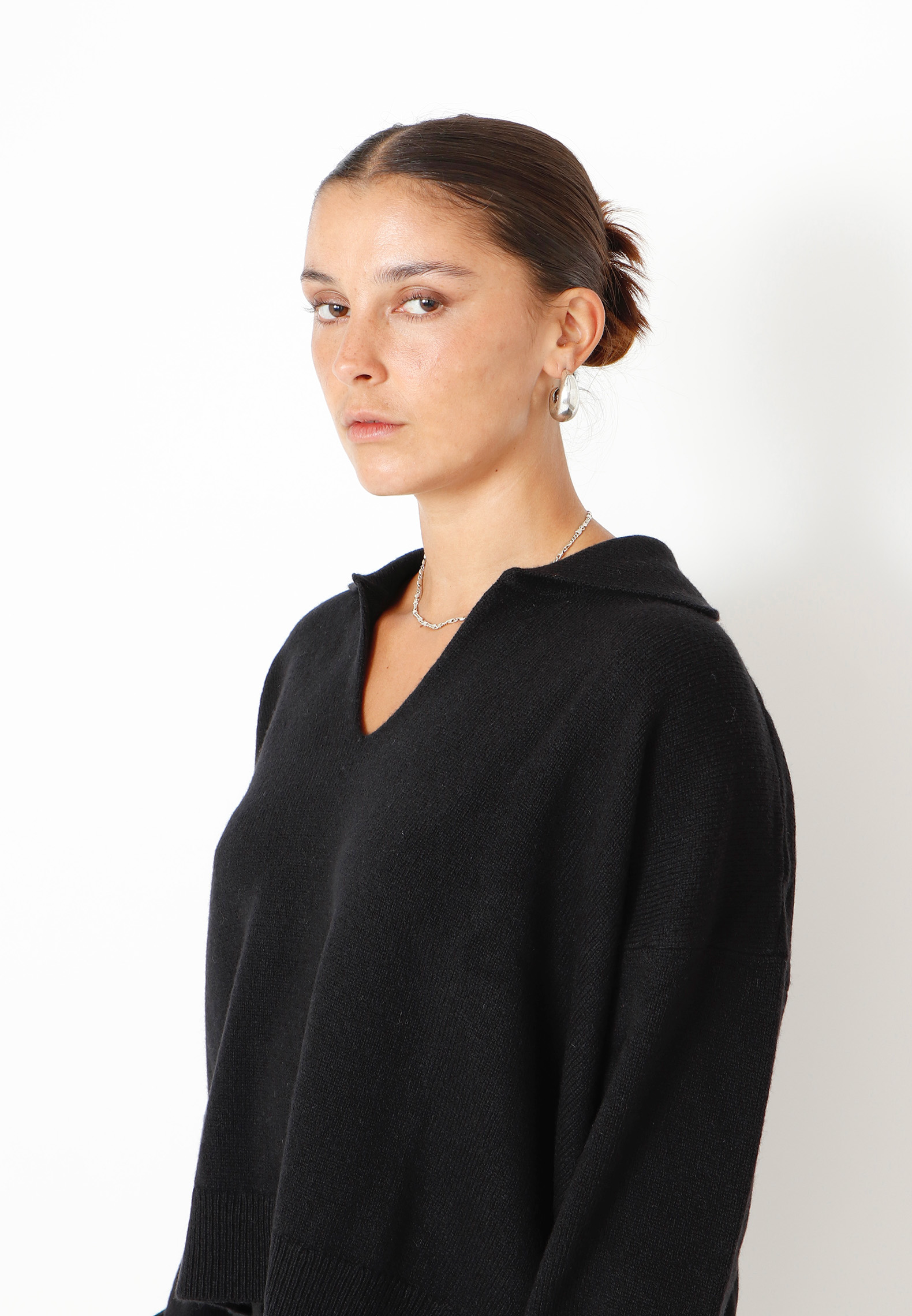Crafted from luxuriously soft extrafine merino wool, this knitted polo sweater offers a contemporary take on classic elegance. It features a relaxed fit and refined ribbed edges. The understated polo collar adds a sophisticated touch, while the fluid drape ensures effortless comfort and style. Perfect to style with matching knitted pants or a pair of leather pants for a more exclusive and raw look.
