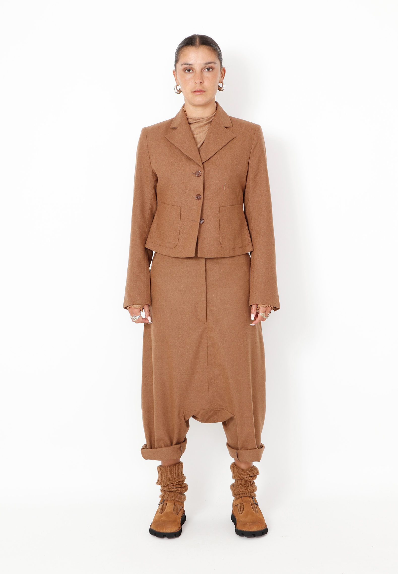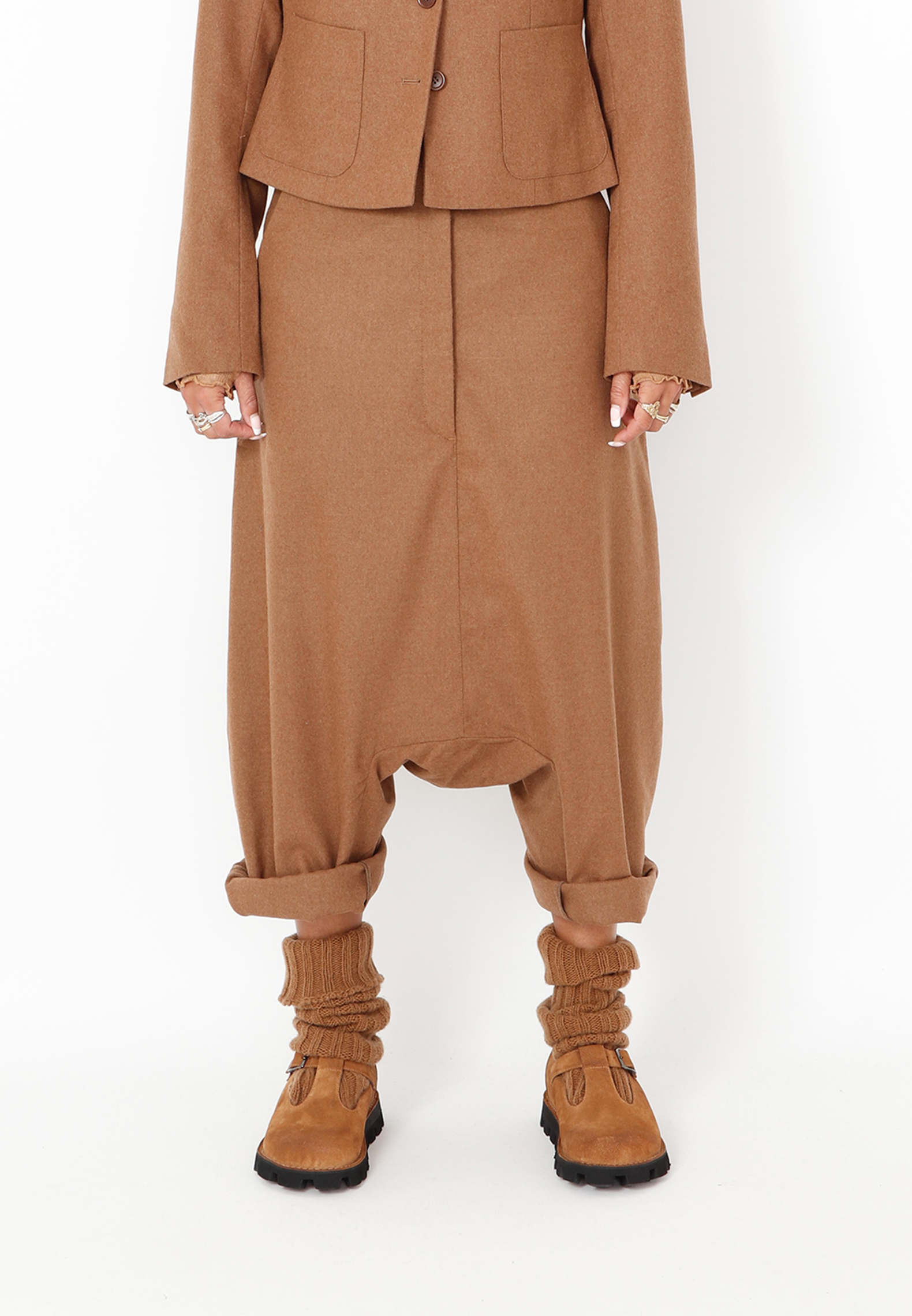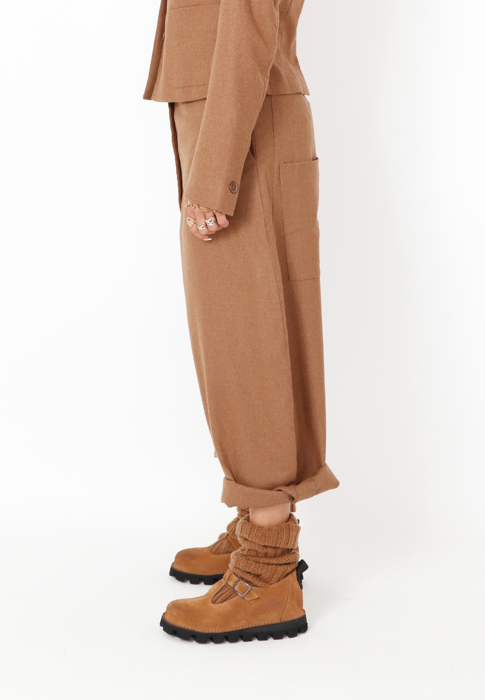 Elevate your wardrobe with these extra baggy pants, combining comfort and contemporary design. Featuring a relaxed fit with practical side pockets and a discreet front zipper. The soft material of wool mix ensures an all-day comfort. Roll up the hems for a more casual, laid-back look—perfect for both work and leisure. Style with matching blouse for a completed look.