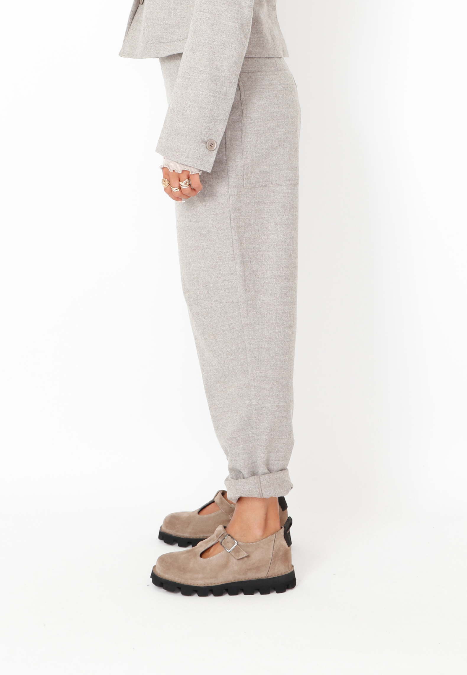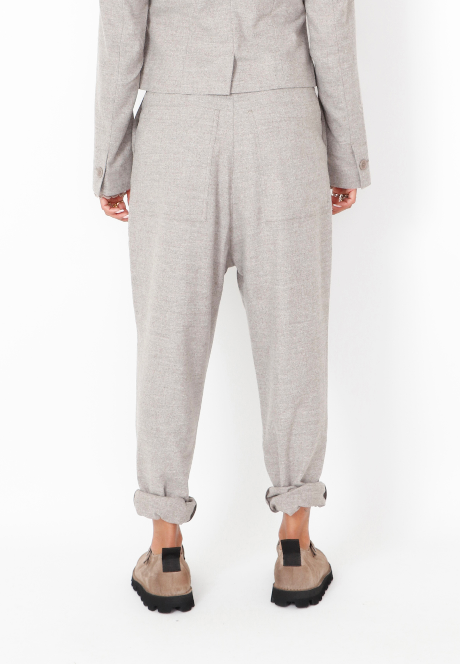 Baggy bukser med frontlommer, skjult lynlås foran og store lommer bagpå. Bukserne er lavet i uld De kan styles med opsmøg og sandaler for et afslappet look til hverdag eller de kan styles med en skjorte og støvler eller fin top til særlige anledninger. Bukse-modellen er en af vores helt store favoritter og et must have i garderoben, hvis du spørger os.