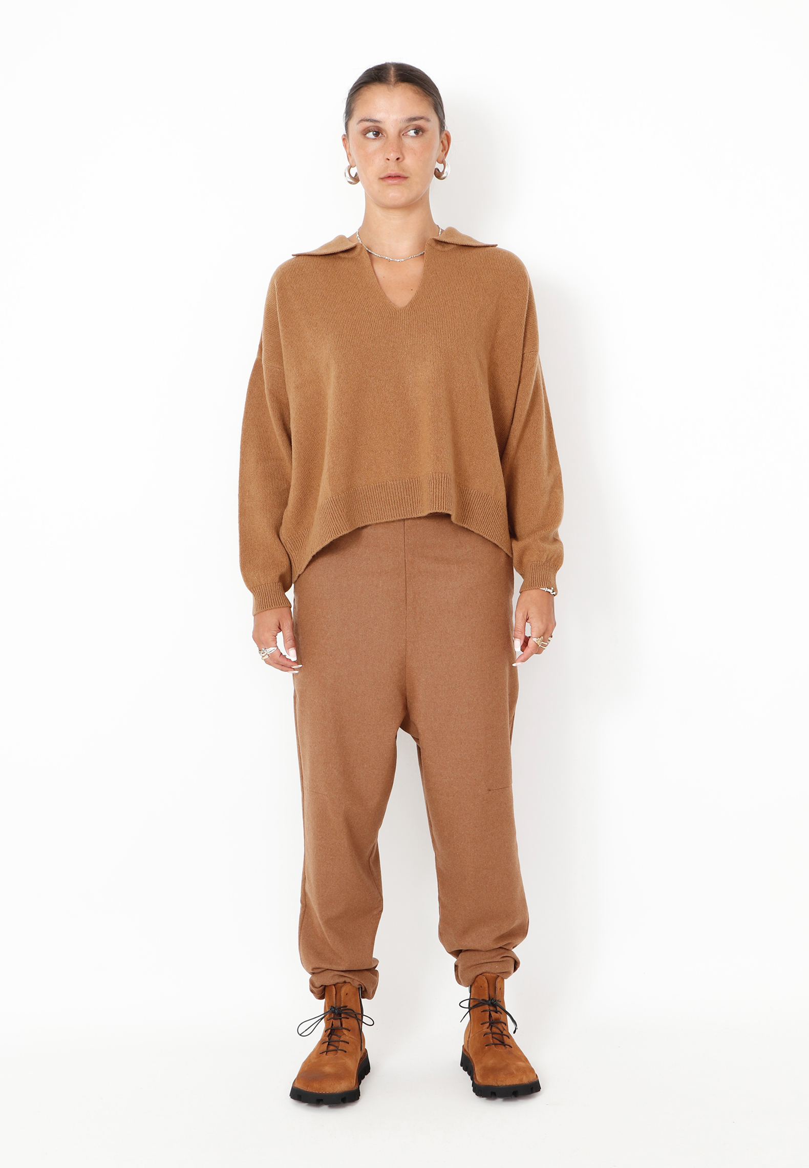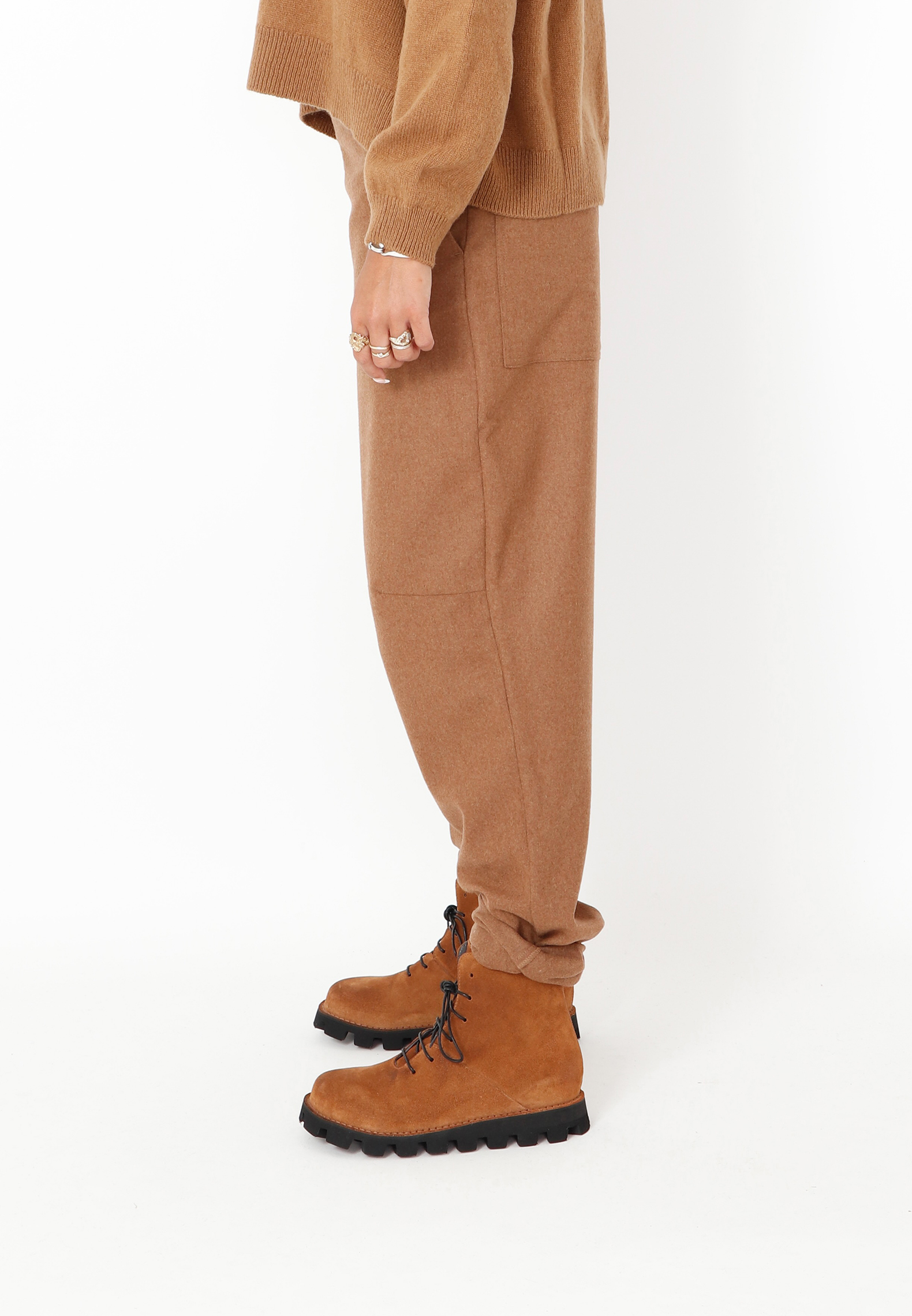 Baggy pants with front pockets, a concealed front zip and oversized back pockets. Tailored in wool, they offer both comfort and refined ease. Style them with rolled-up hems for a relaxed everyday look, or pair them with a crisp shirt and boots, or an elegant top for special occasions. This pant design is one of our absolute favorites — a true wardrobe must-have, if you ask us.