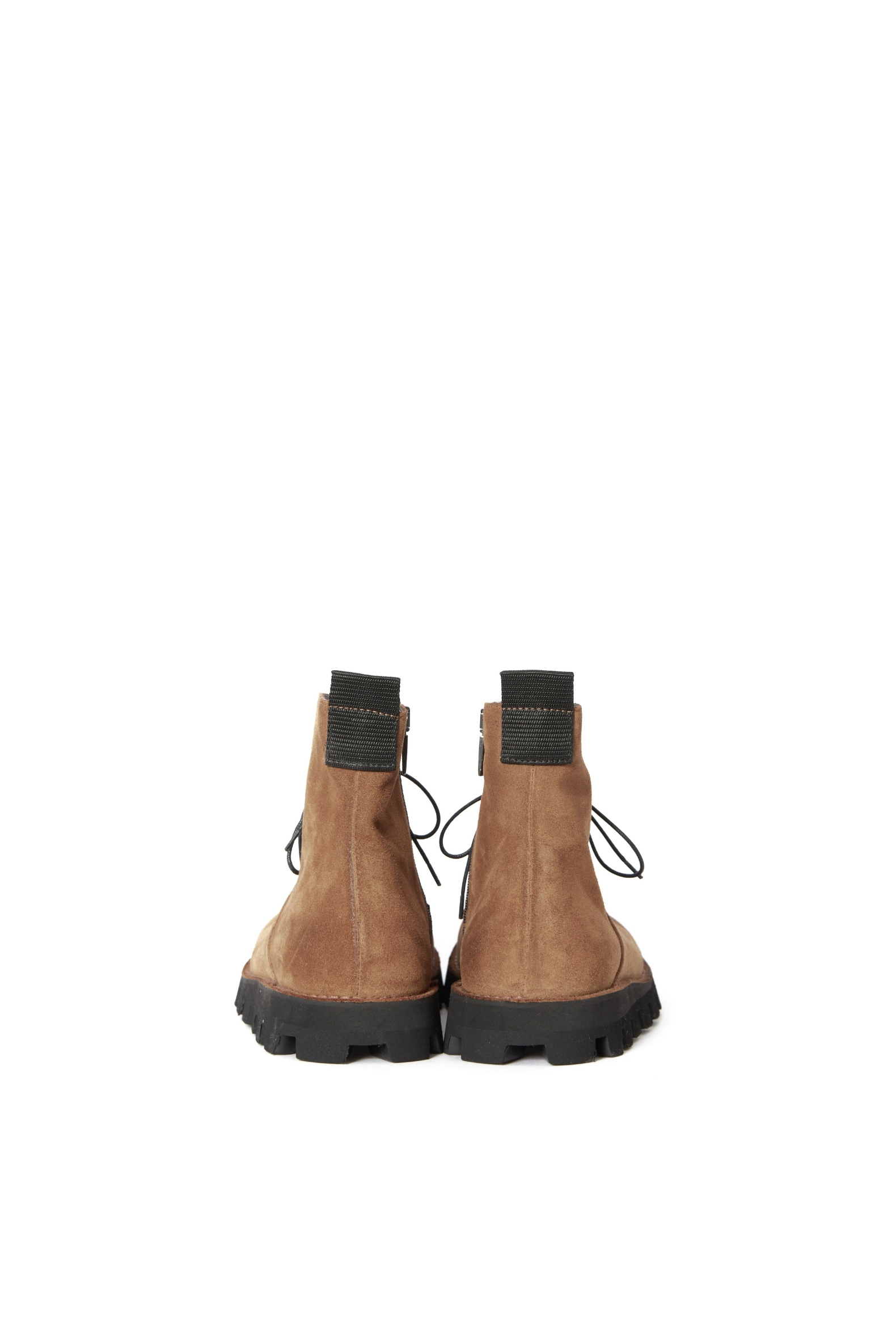 Elegant støvle som er håndlavet i blødt og glat ruskind. Den smalle snøre giver et tidløst udtryk, mens den lette og fleksible sål sikrer optimal komfort hele dagen. Støvlen er produceret med sans for detaljen og en passion for godt håndværk – et perfekt valg til dig, der ønsker både stil og funktion i ét. Pasformen er normal i længden, og bredden er normal til bred.Materiale