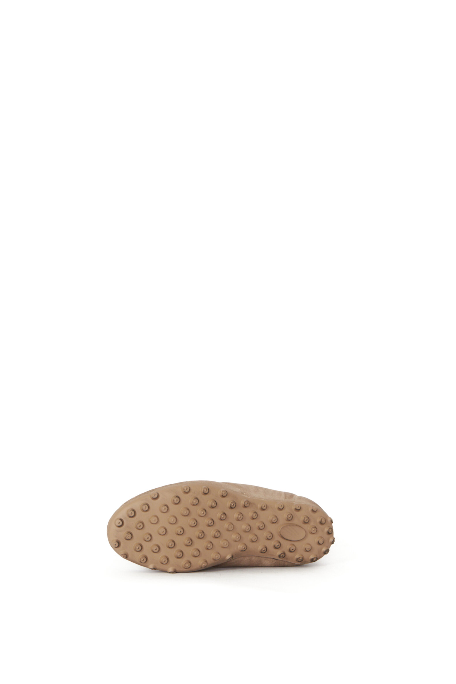 Skoen er lavet i ruskind af kalveskind foret med svineskind. Sålen er en gummisål.