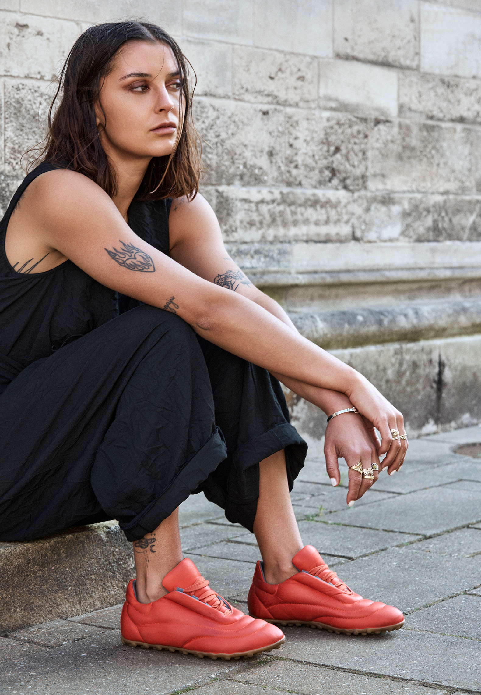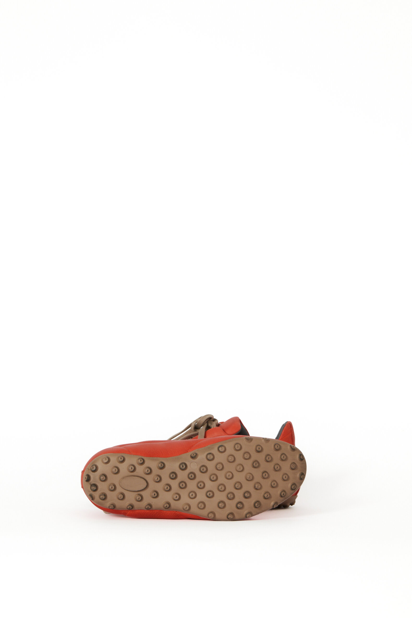 Denne retro sko er lavet i kalveskind, som giver en raffineret overflade og en behagelig pasform. Indvendigt er den foret med svineskind, som sikrer åndbarhed og komfort hele dagen. Designet kombinerer sportslig lethed med sofistikeret elegance. Den lette retroinspirerede gummisål er både fleksibel og komfortabel at have på. Et tidløst valg for den moderne kunde, der sætter pris på italiensk kvalitet, klassisk håndværk og diskret luksus.