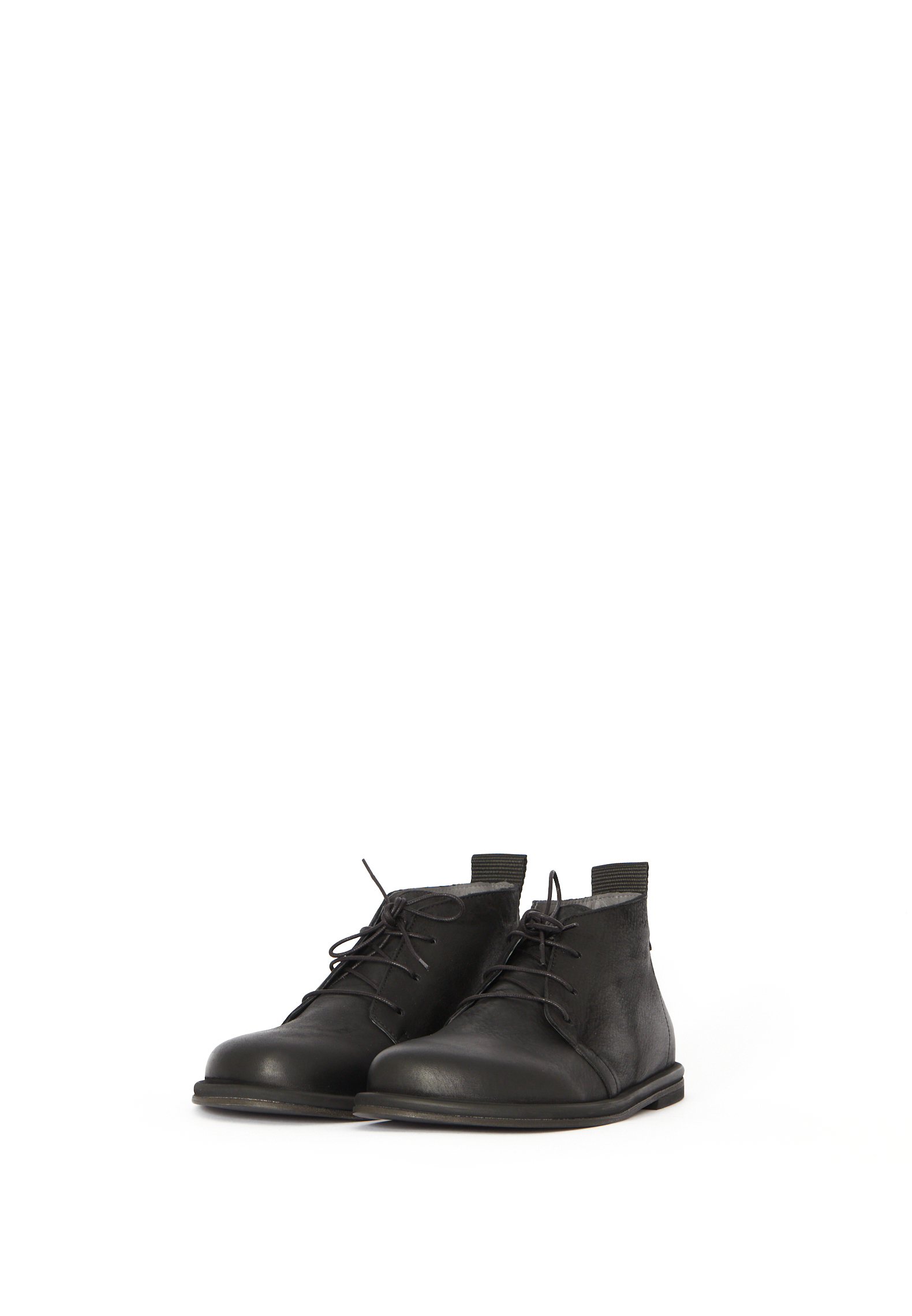 Short boot made in smooth black calfskin with a pigskin lining for good breathability and comfort. The boot comes with thin laces and a strap for easy on and off. The sole is a firm leather sole.