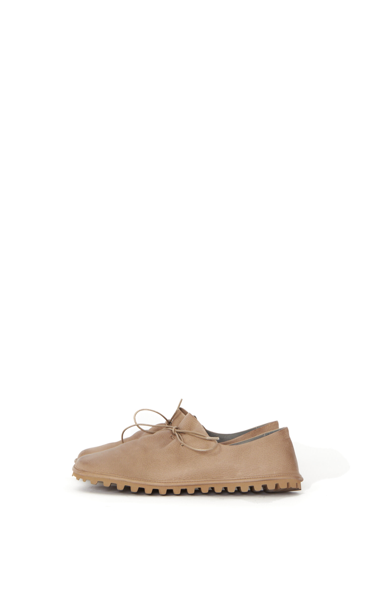 Håndlavet sko i blødt, naturligt kalveskind, der giver et autentisk og raffineret udtryk. Læderets organiske struktur ses tydeligt i skoens overflade, hvilket tilføjer karakter og understreger hver enkelt models unikke håndværk. Skoen er foret med svineskind for god åndbarhed og komfort. En elegant, tidløs sko, der let kan styles både afslappet og mere sofistikeret. De diskrete snøre skaber et roligt og harmonisk design, hvor materialet får lov at stå i centrum. Den lette og fleksible sål med markante, men elegante riller sikrer optimal komfort og greb.