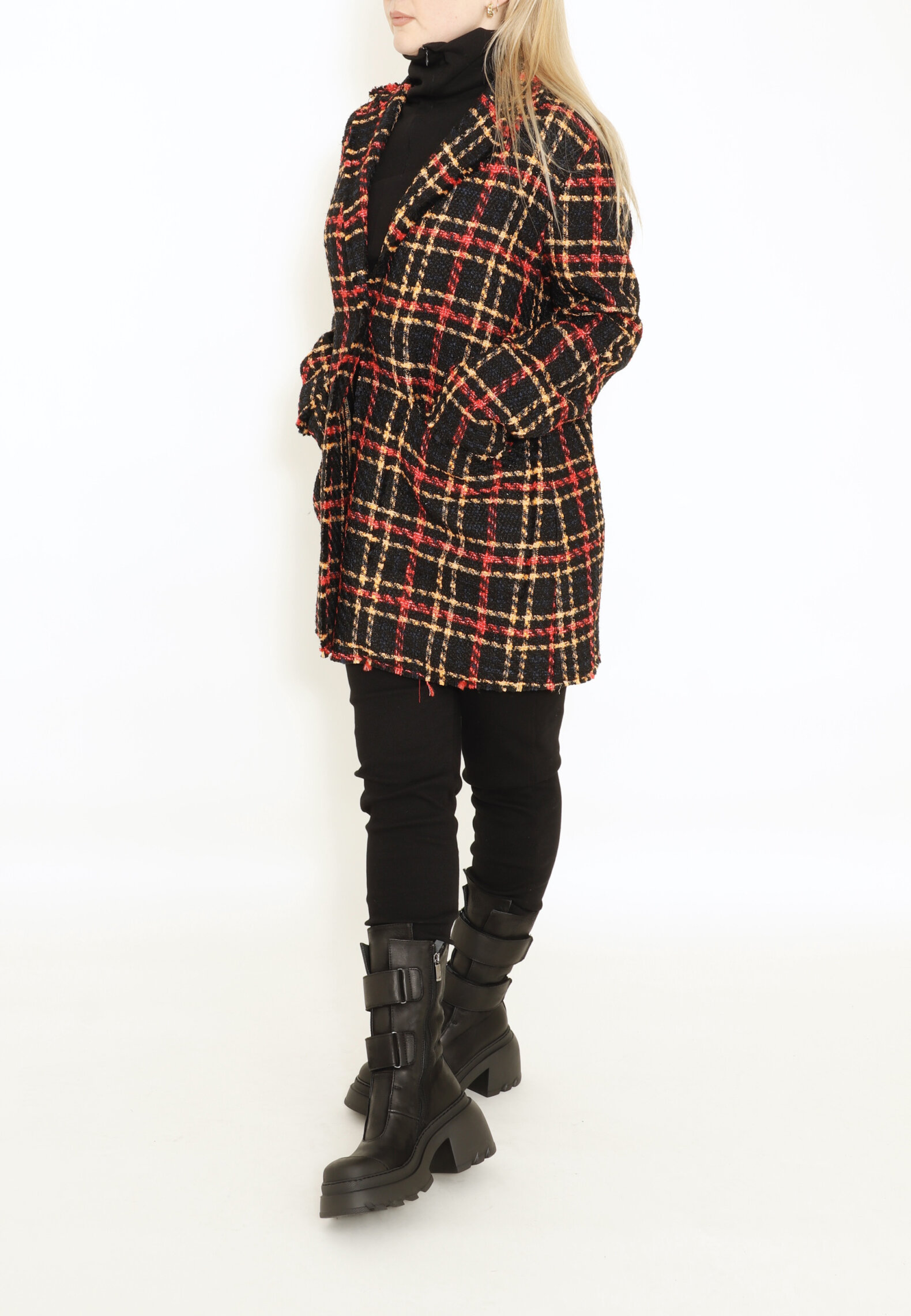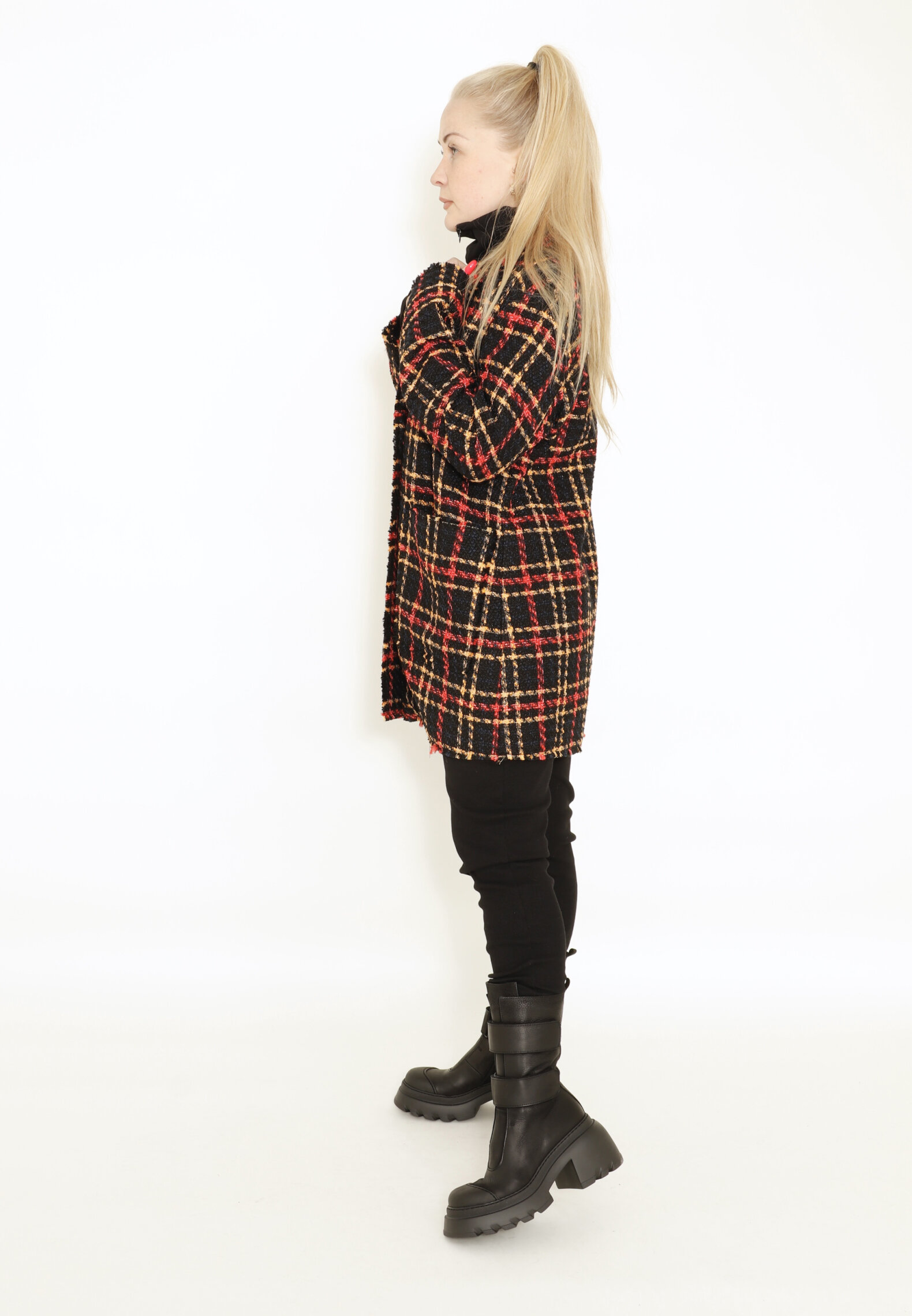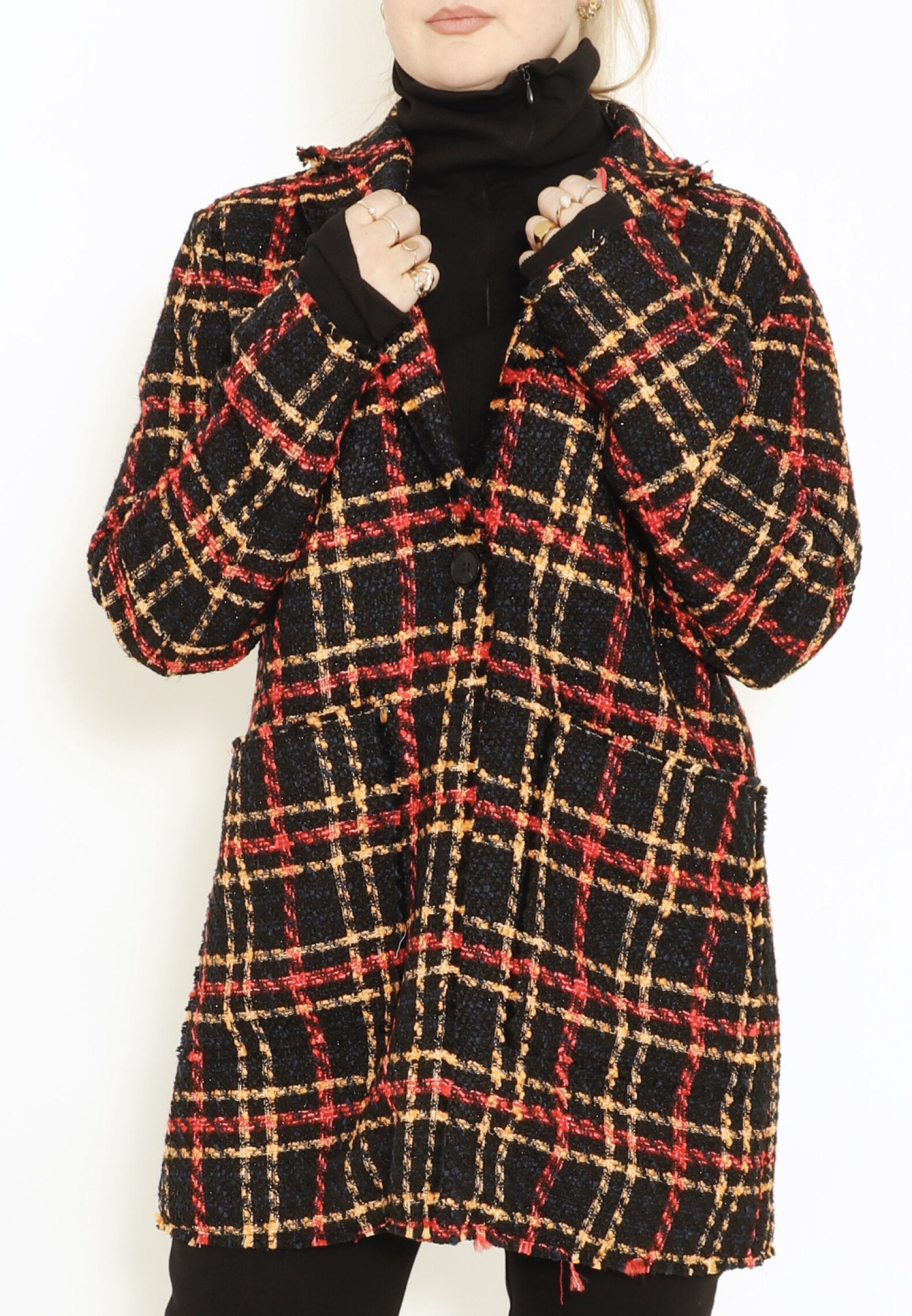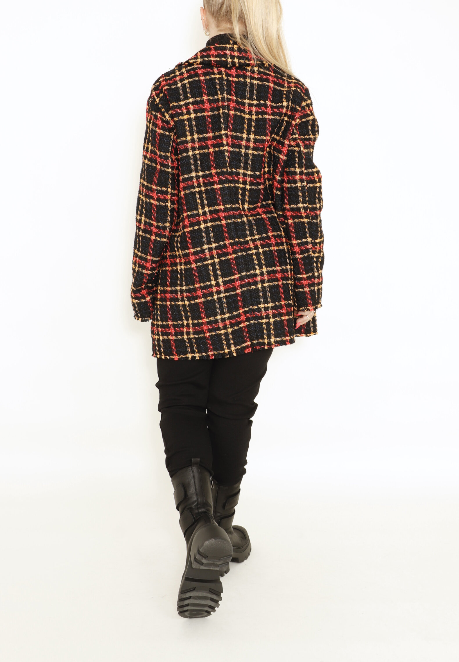 This blazer is a sample. Oversized blazer in check bouclé. The blazer features front pockets and a button closure.