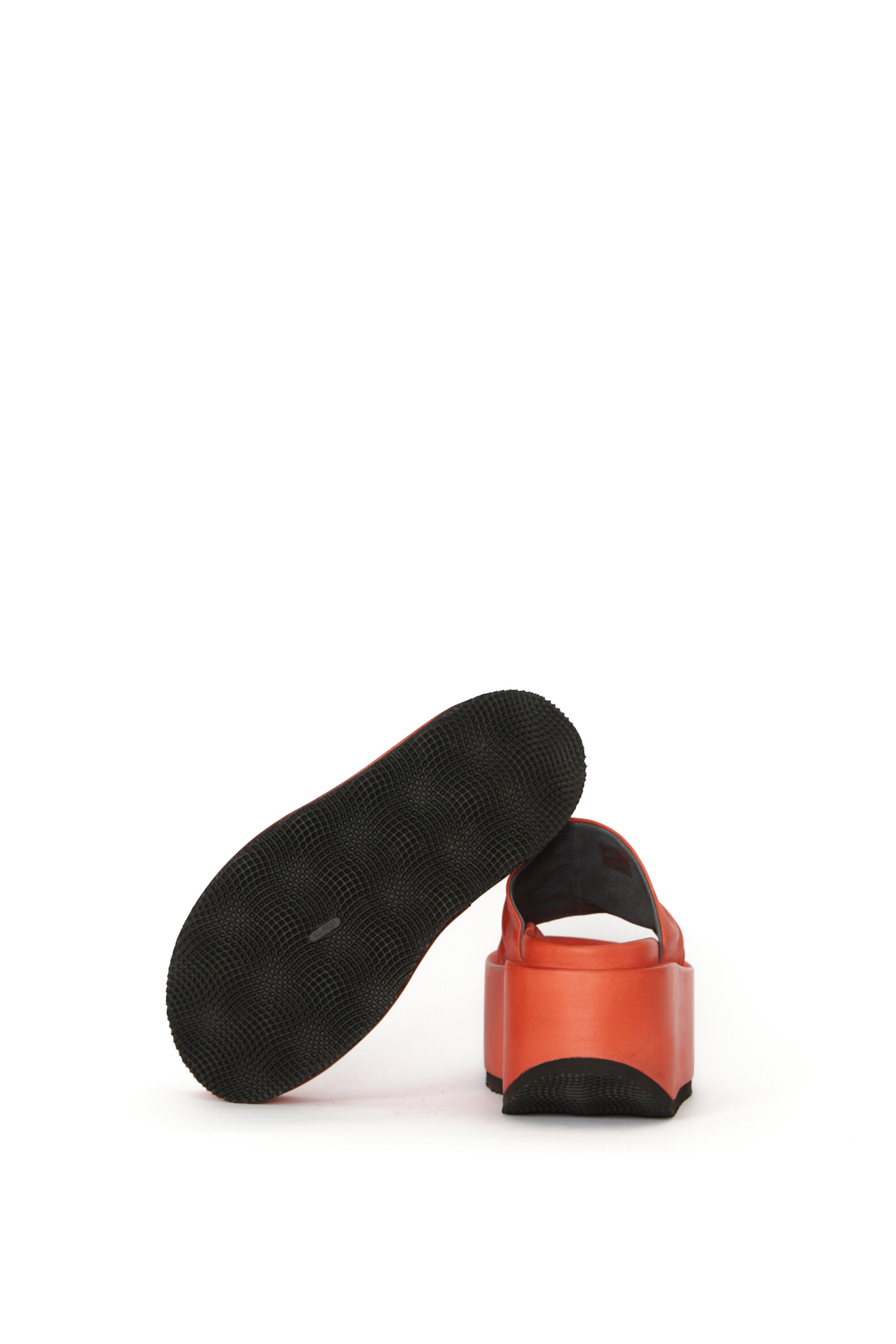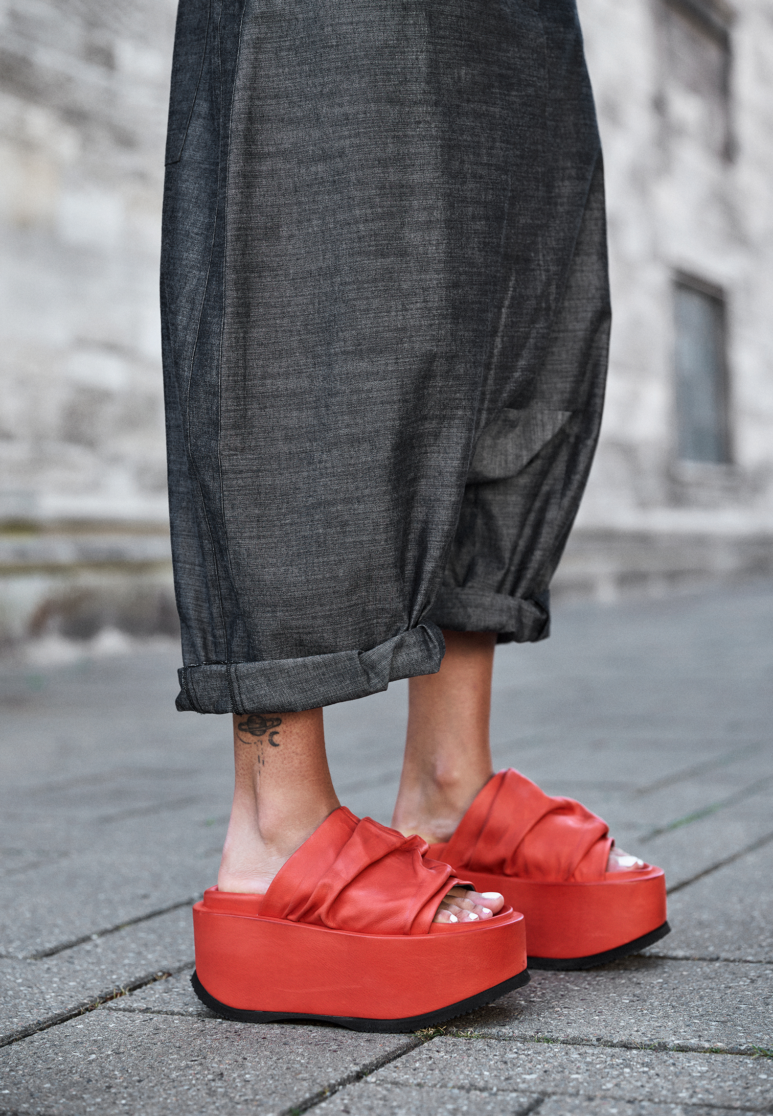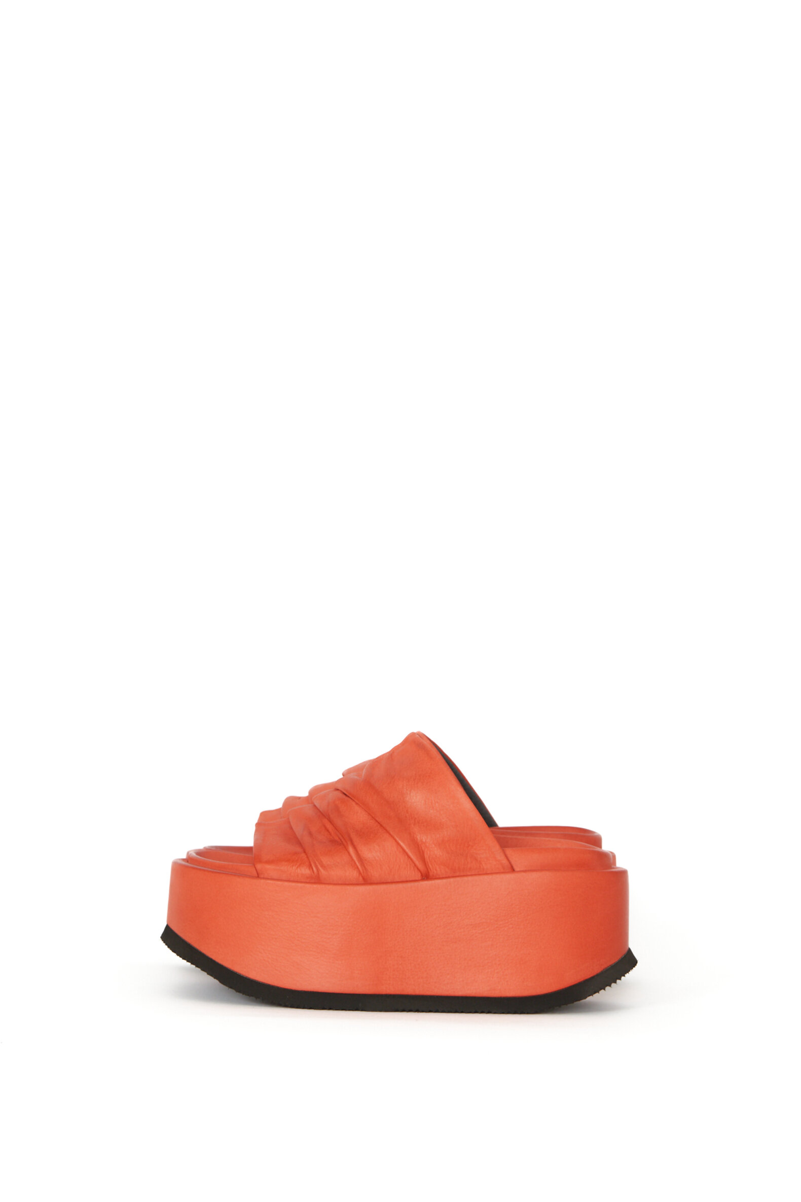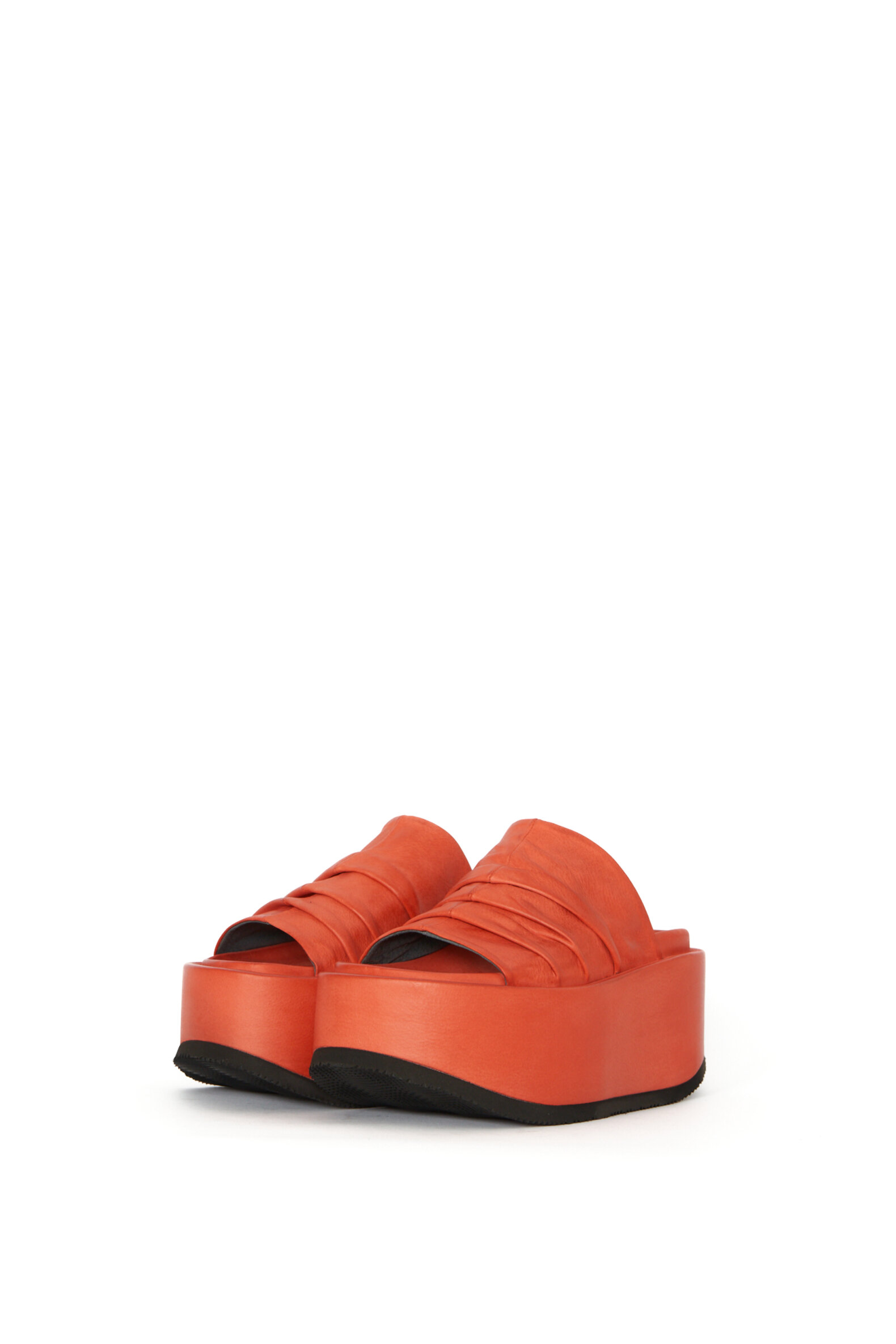 Plateau sandal håndlavet i kalveskind som er foret med svineskind for god åndbarhed og komfort. Sandalen har en blød fodsenggsål indeni som giver ekstra komfort og støtte. Skil dig ud med dette farverige statement piece af en sandal. Sålen er 8 cm høj.