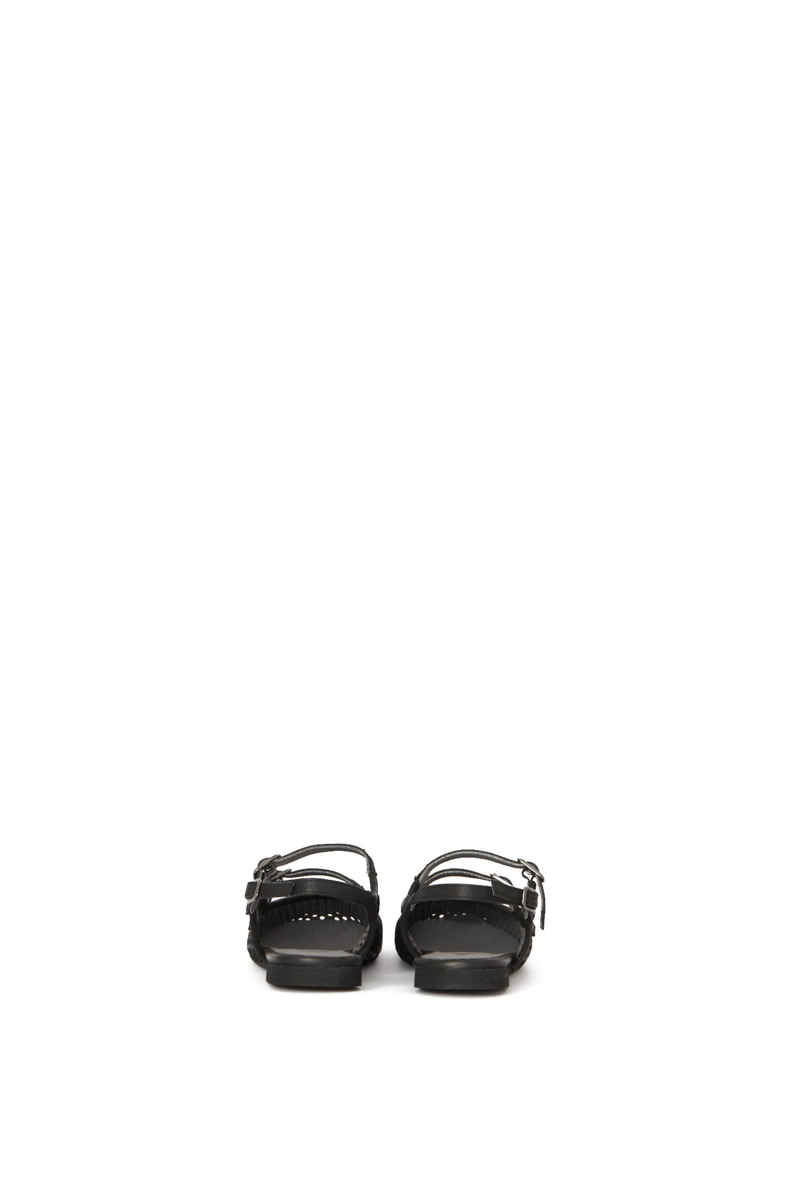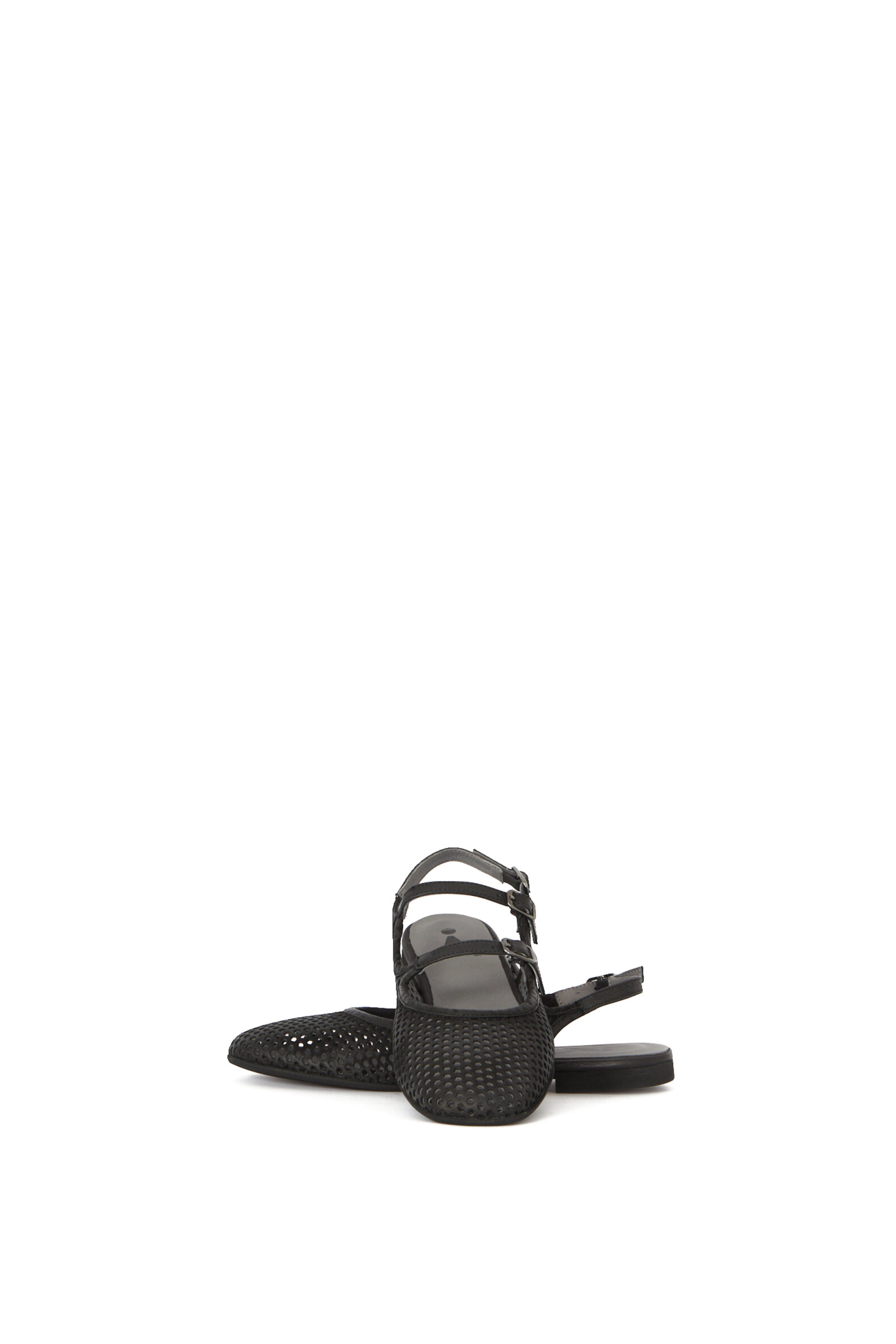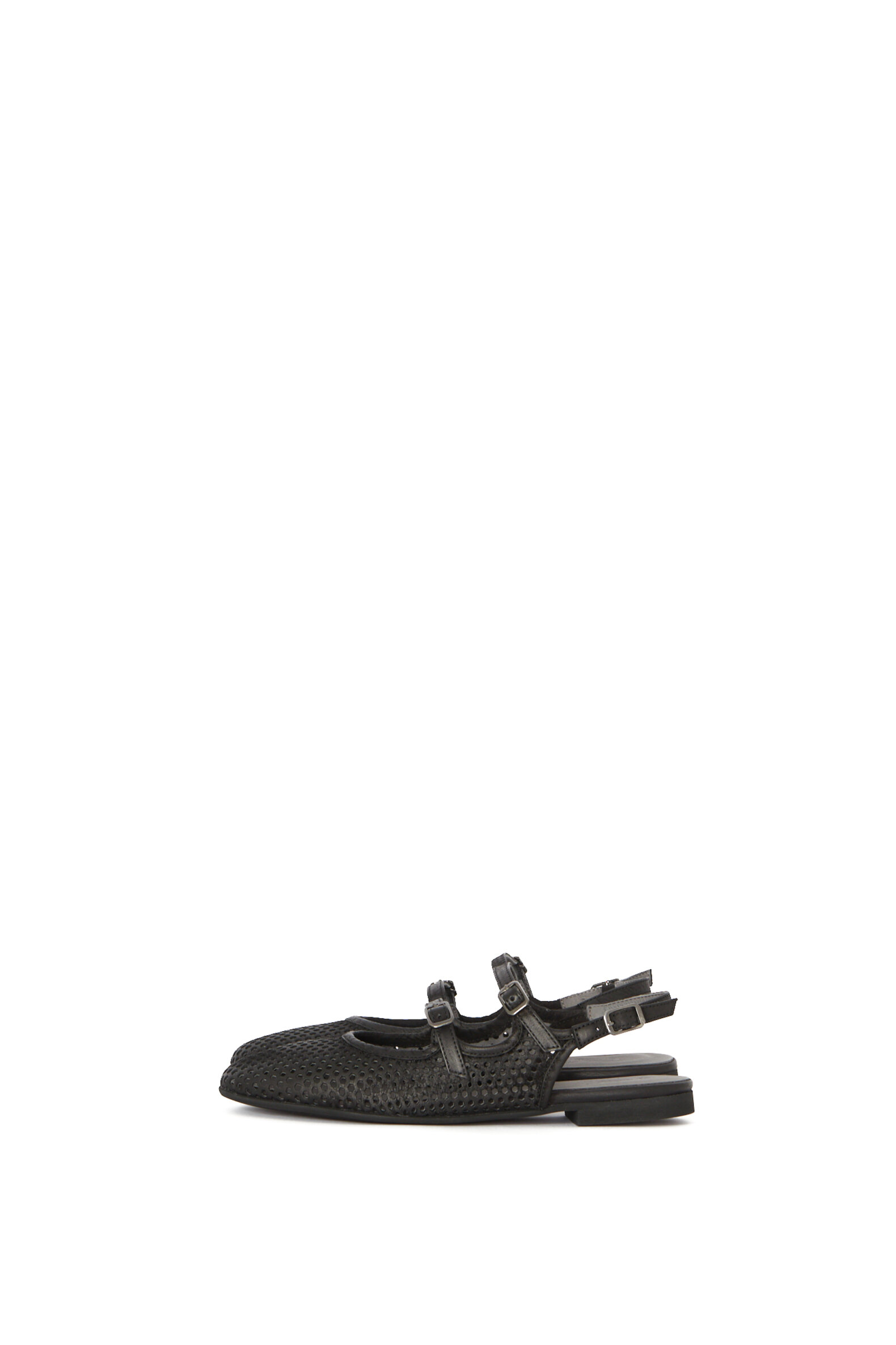 Håndlavet sko fra Sort Aarhus i blødt kalveskind. Det perforerede læder giver et grafisk og sofistikeret udtryk, mens de tre remme tilfører et statement-look. Den åbne hæl gør modellen luftig og komfortabel, perfekt til både hverdagsbrug og særlige begivenheder. Et minimalistisk, men markant design — et valg for den, der tør skille sig ud med kvalitet og attitude. Sålen er fast og let.