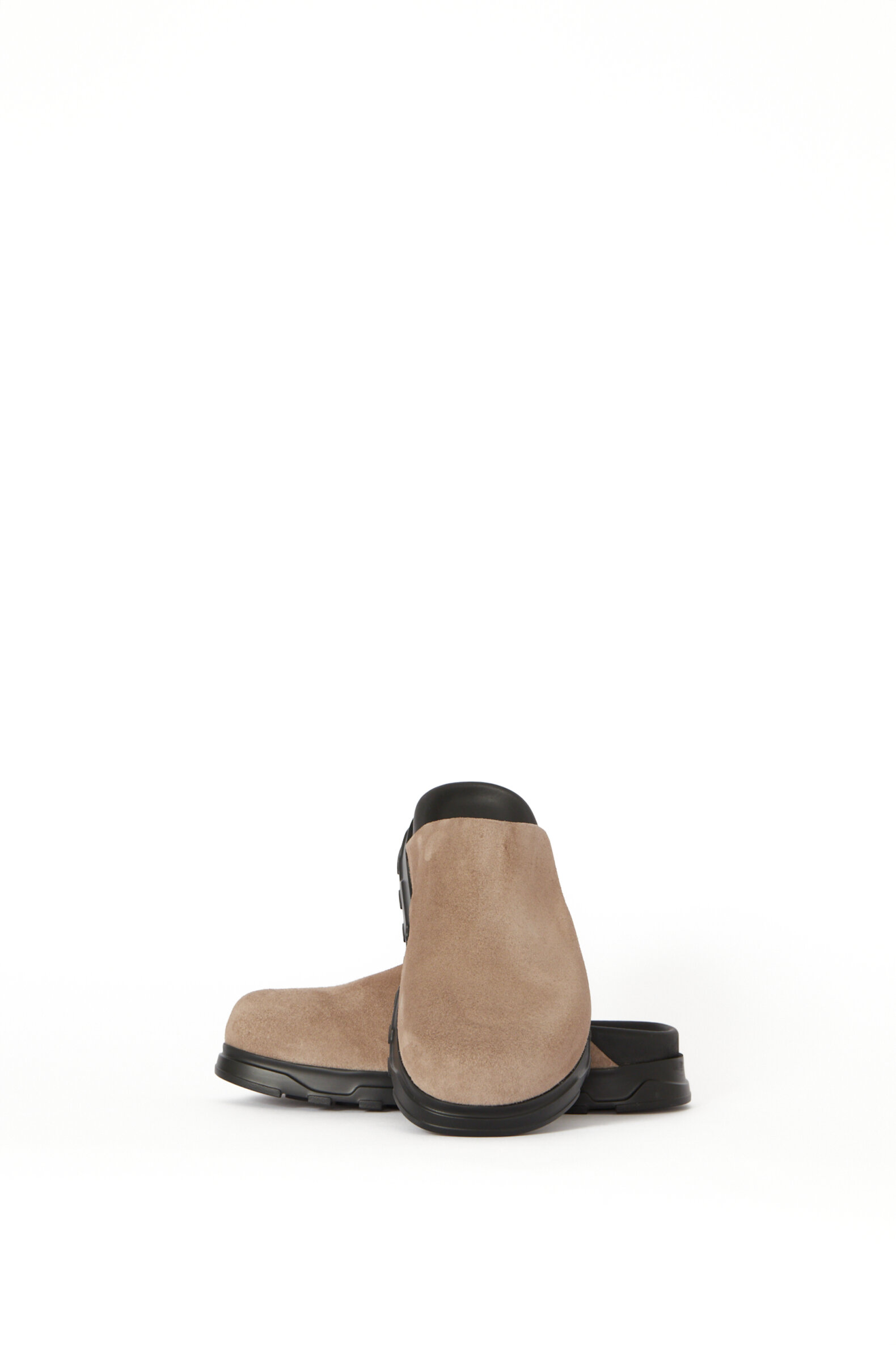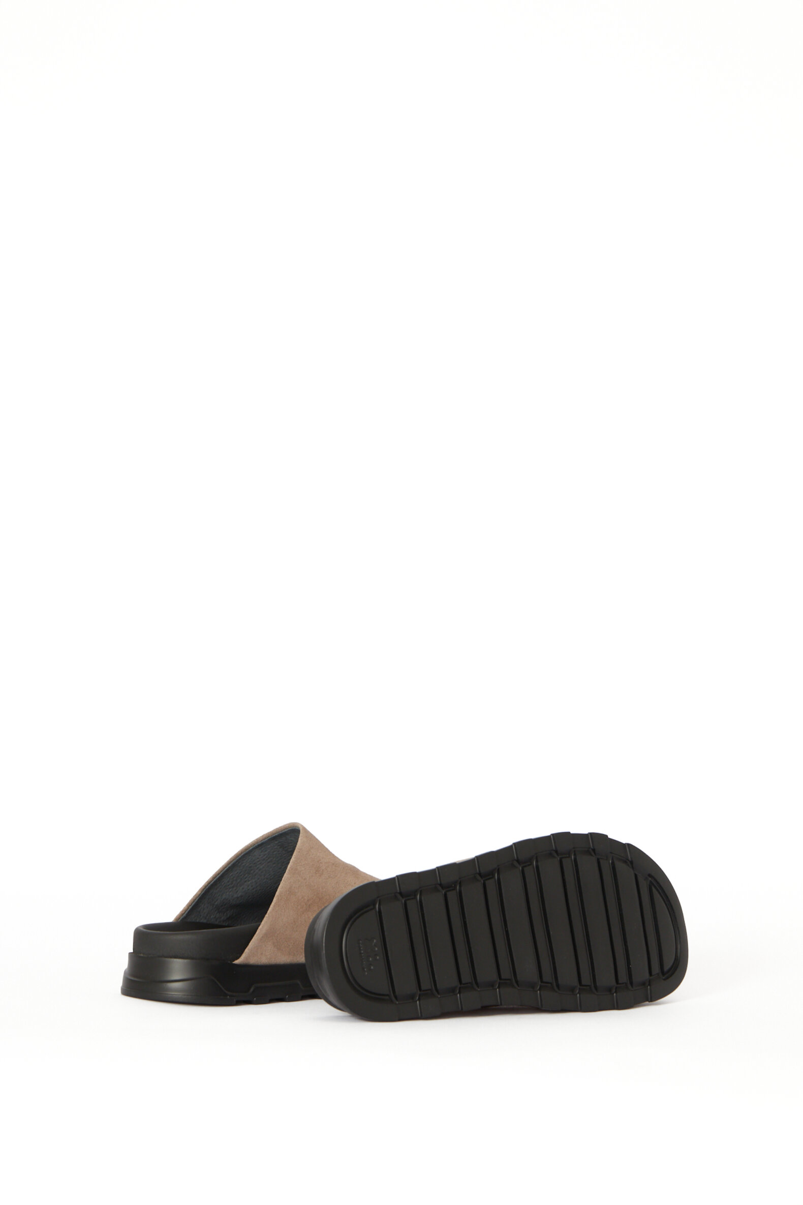 Slippers sandal in brown suede with a soft footbed sole for extra comfort. The sandal is lined with pigskin for good breathability. The sole is one of our absolute best-selling sandal soles (the same as our classic 1E-240). Available in several colors — some in suede, others in calf leather.