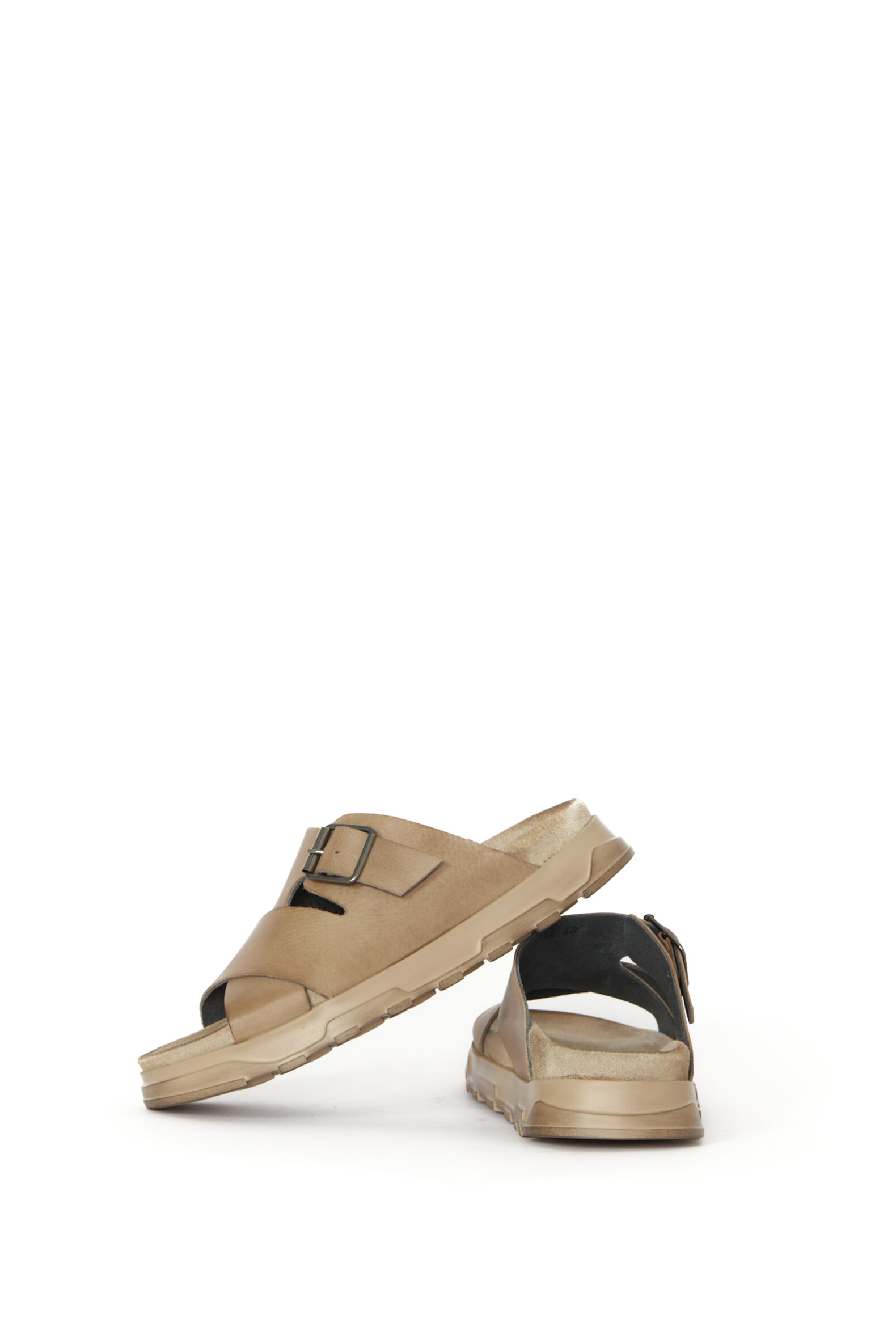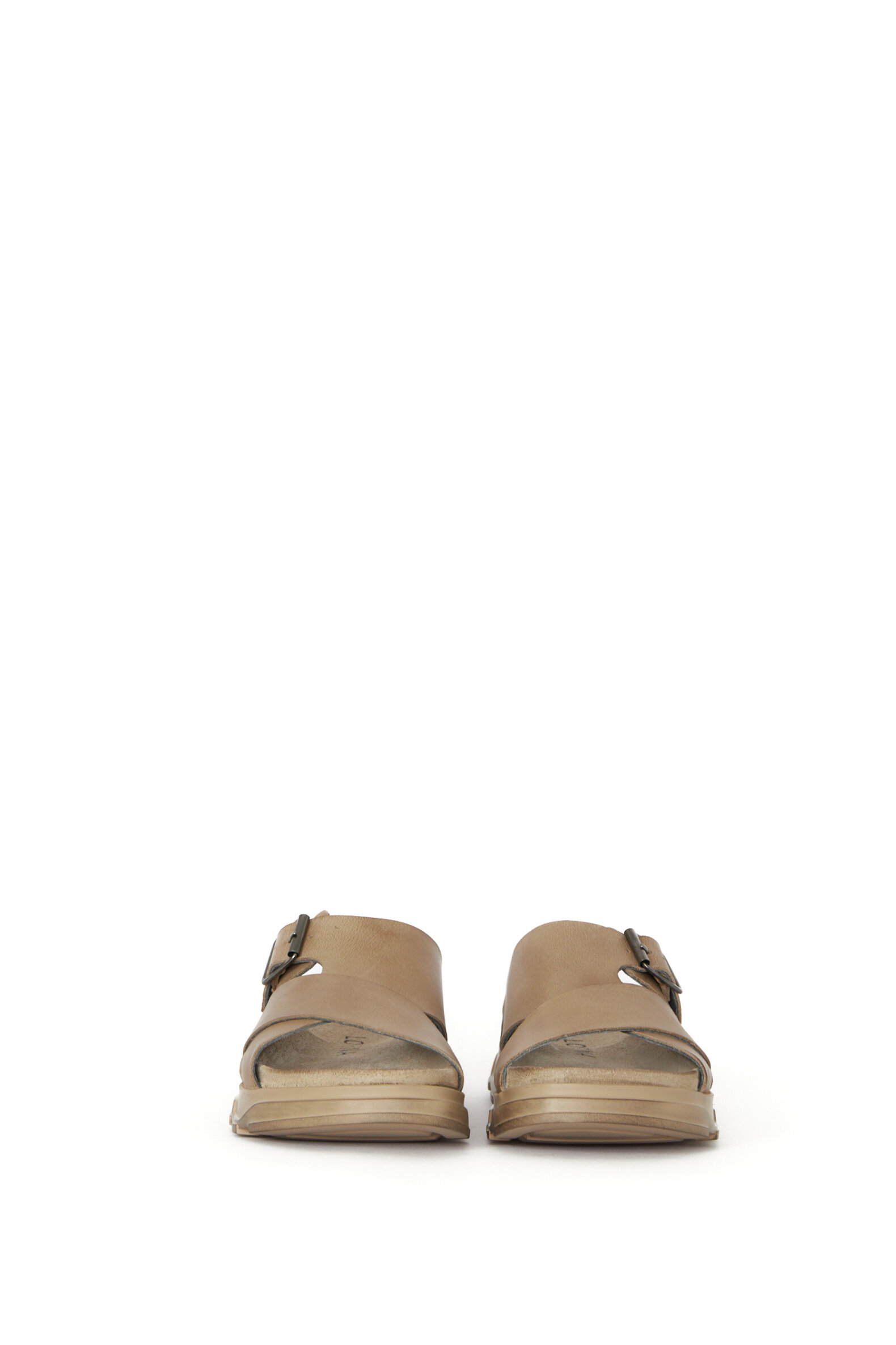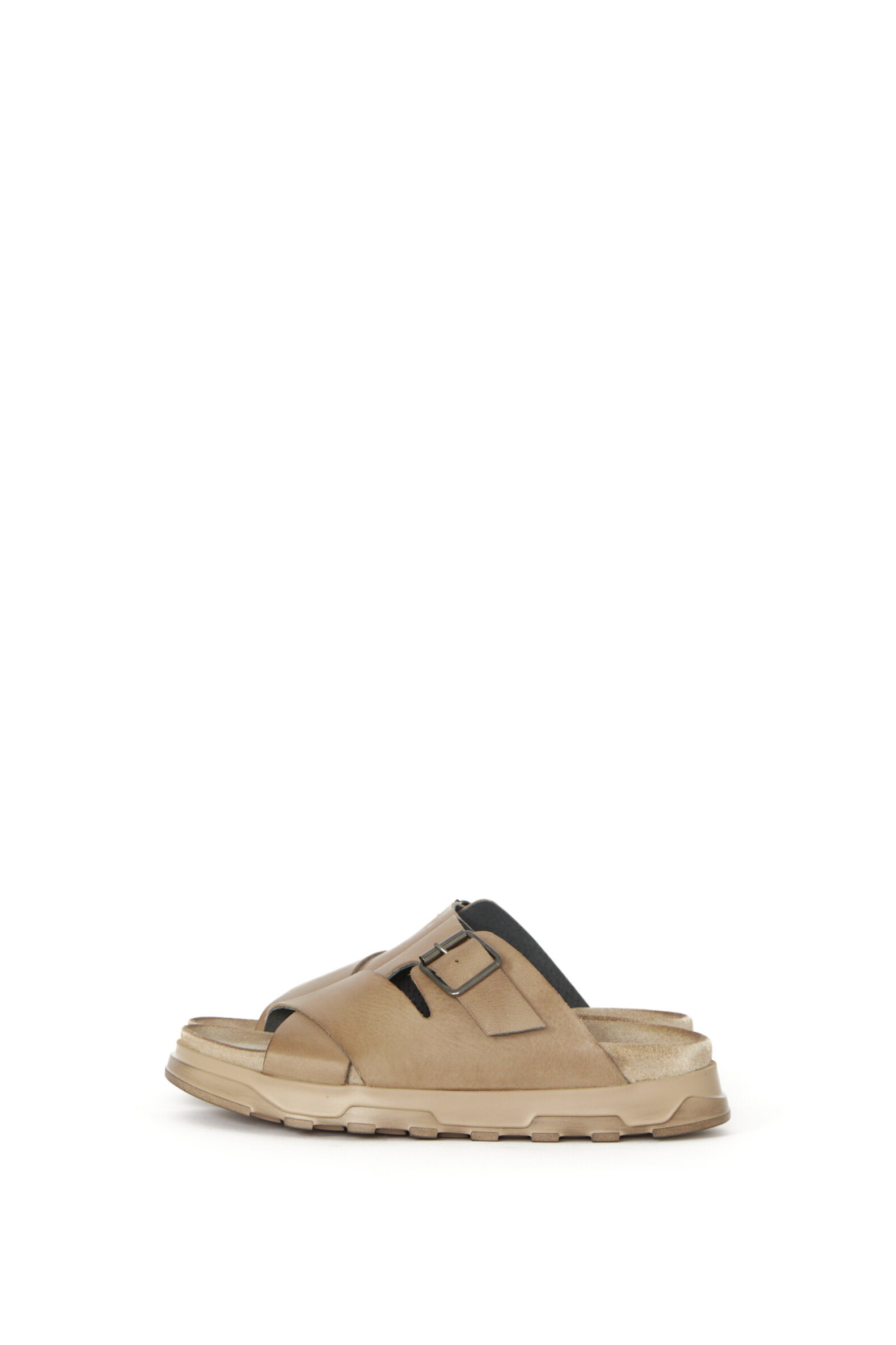 Slippers sandal i glat lysebrunt kalveskind med en blød fodsengssål for ekstra god komfort. Sandalen er foret med svineskind for god åndbarhed. Denne model er med et enkelt spænde over vristen. Sålen er en af vores absolutte bedstsolgte sandal-såler (den samme som vores klassiker 1E-240).